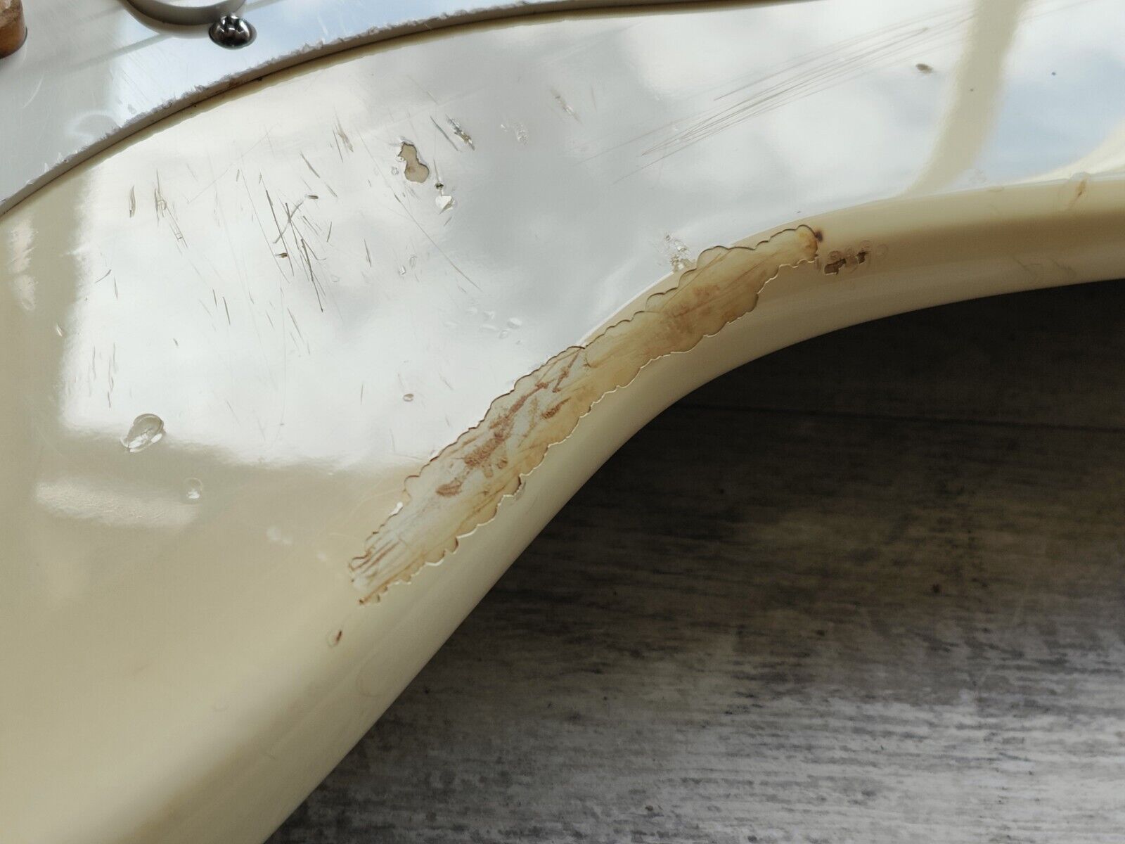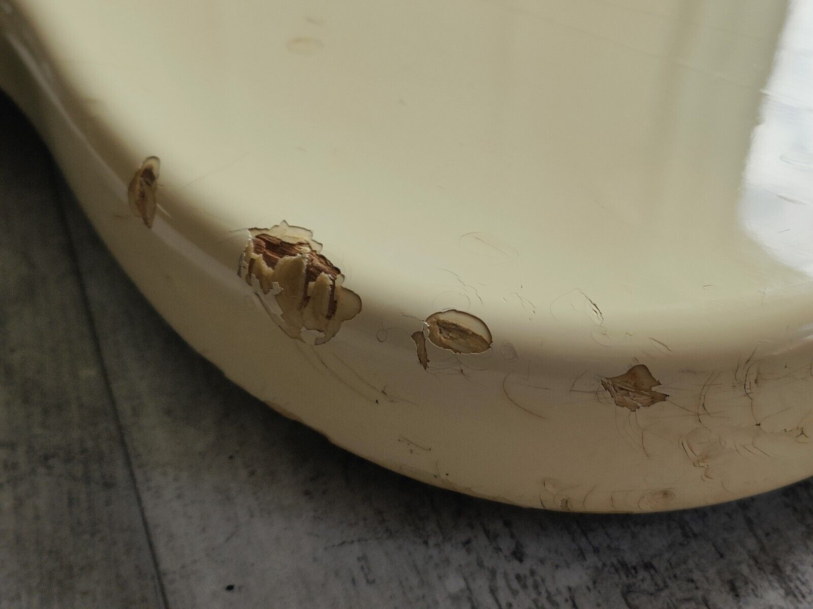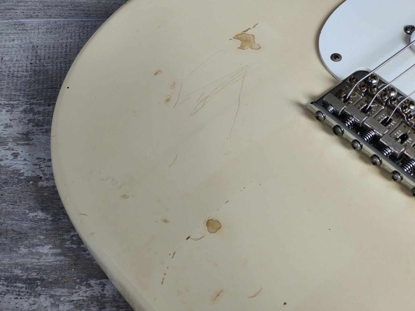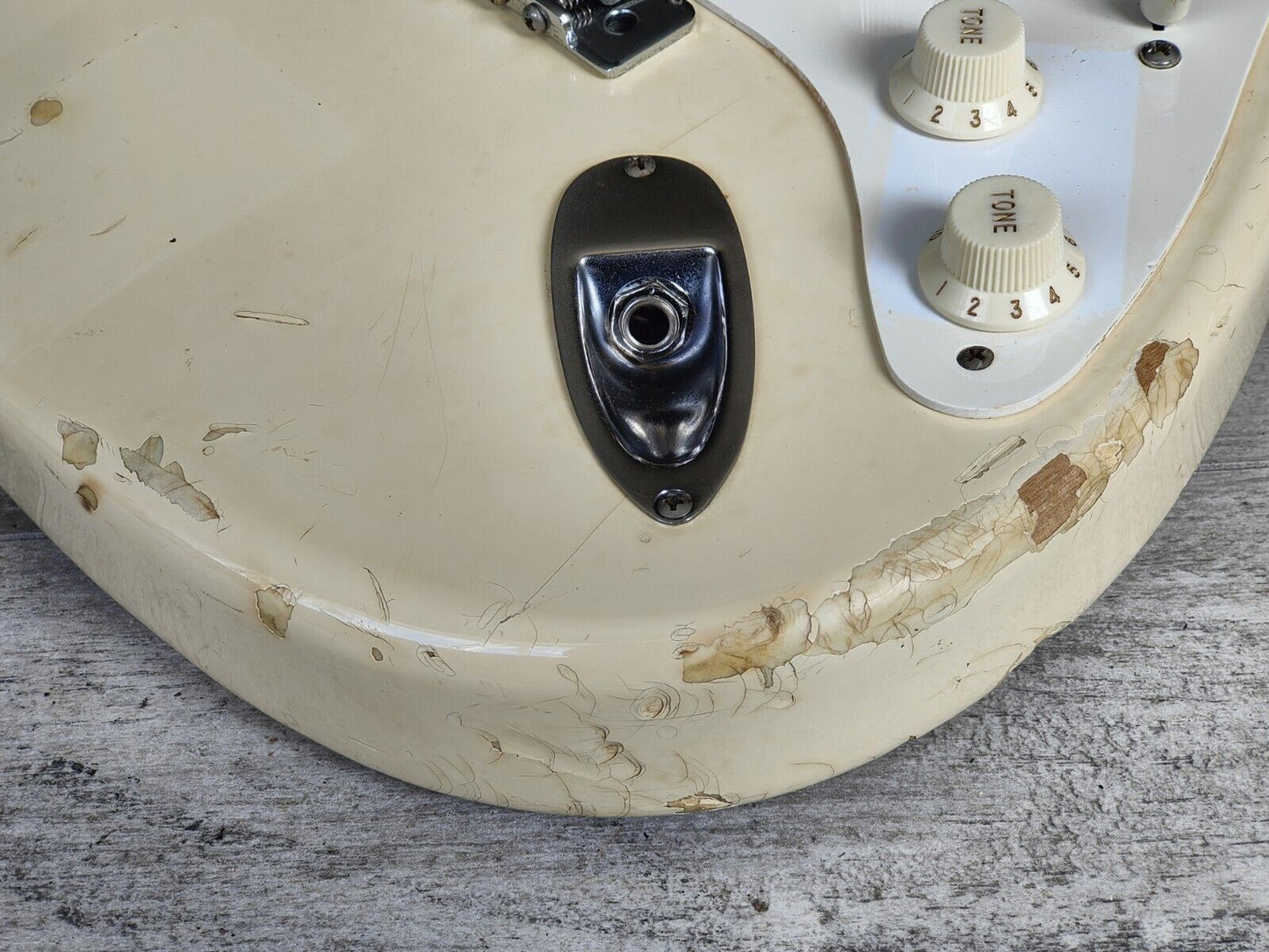 Heavy cosmetic wear as pictured but no breaks or structural damage/repairs. Given a full setup and service prior to listing including a fret polish and truss adjustment, the frets have some light pitting but still play well as it sits.