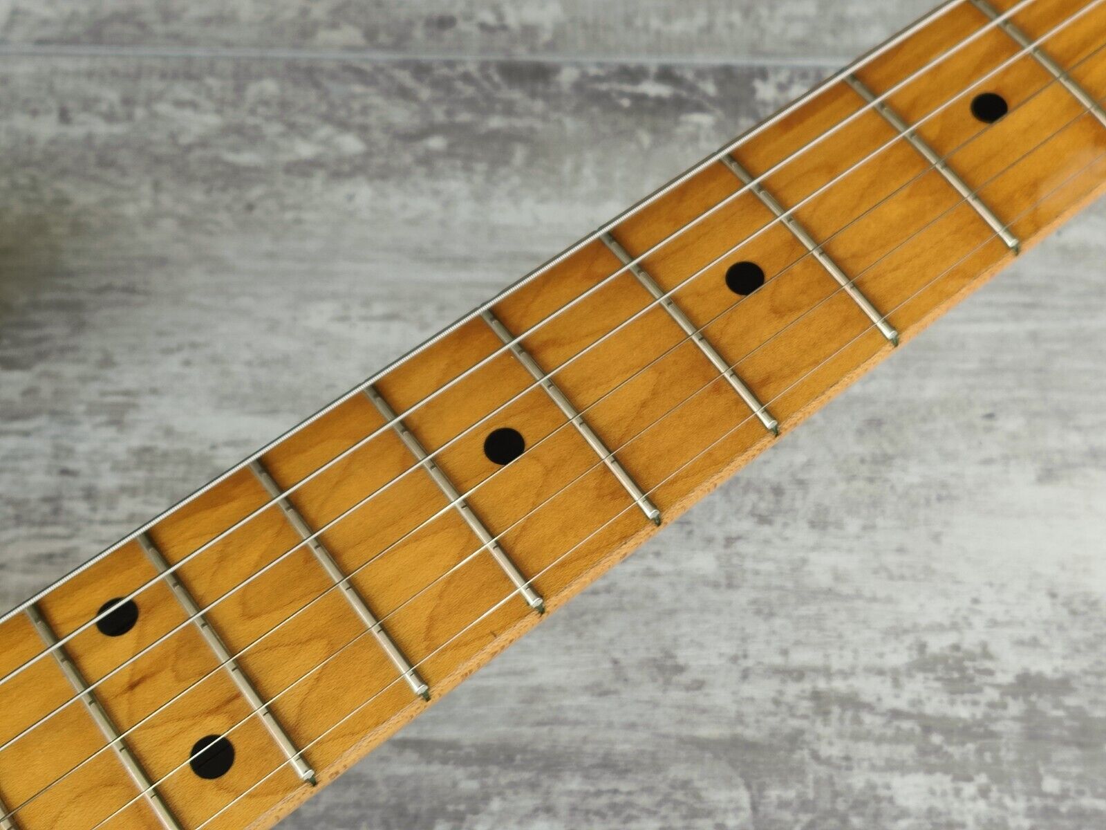 Made by the Tokai factory in 1997, the ST57-53 features a basswood body with a maple neck (slim C profile, 7.25" radius) and factory fitted Fender ST-Vintage Japanese single coils, it weighs 3.6kg's.