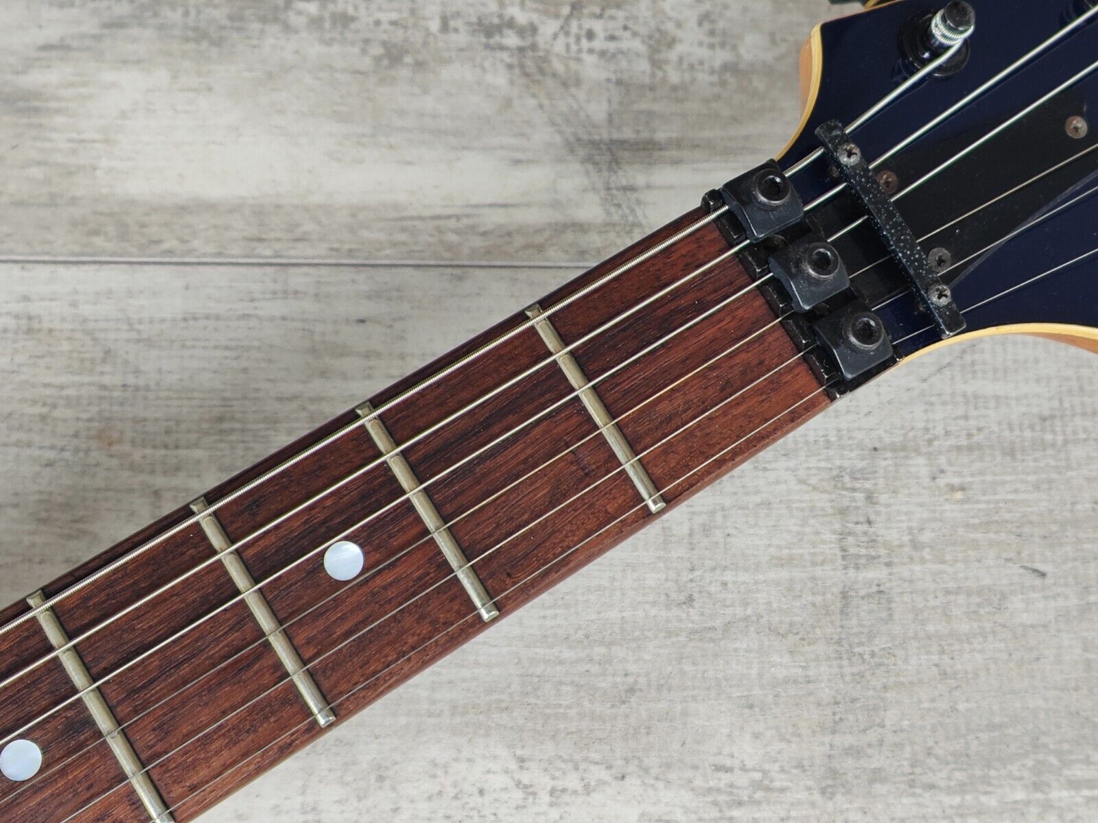 This one's been played plenty over the years and has cosmetic blemishes and playwear as pictured. The frets are pitted but still play as they sit, the neck is straight and the truss works as it should. Given a full Floyd setup and service prior to listing.