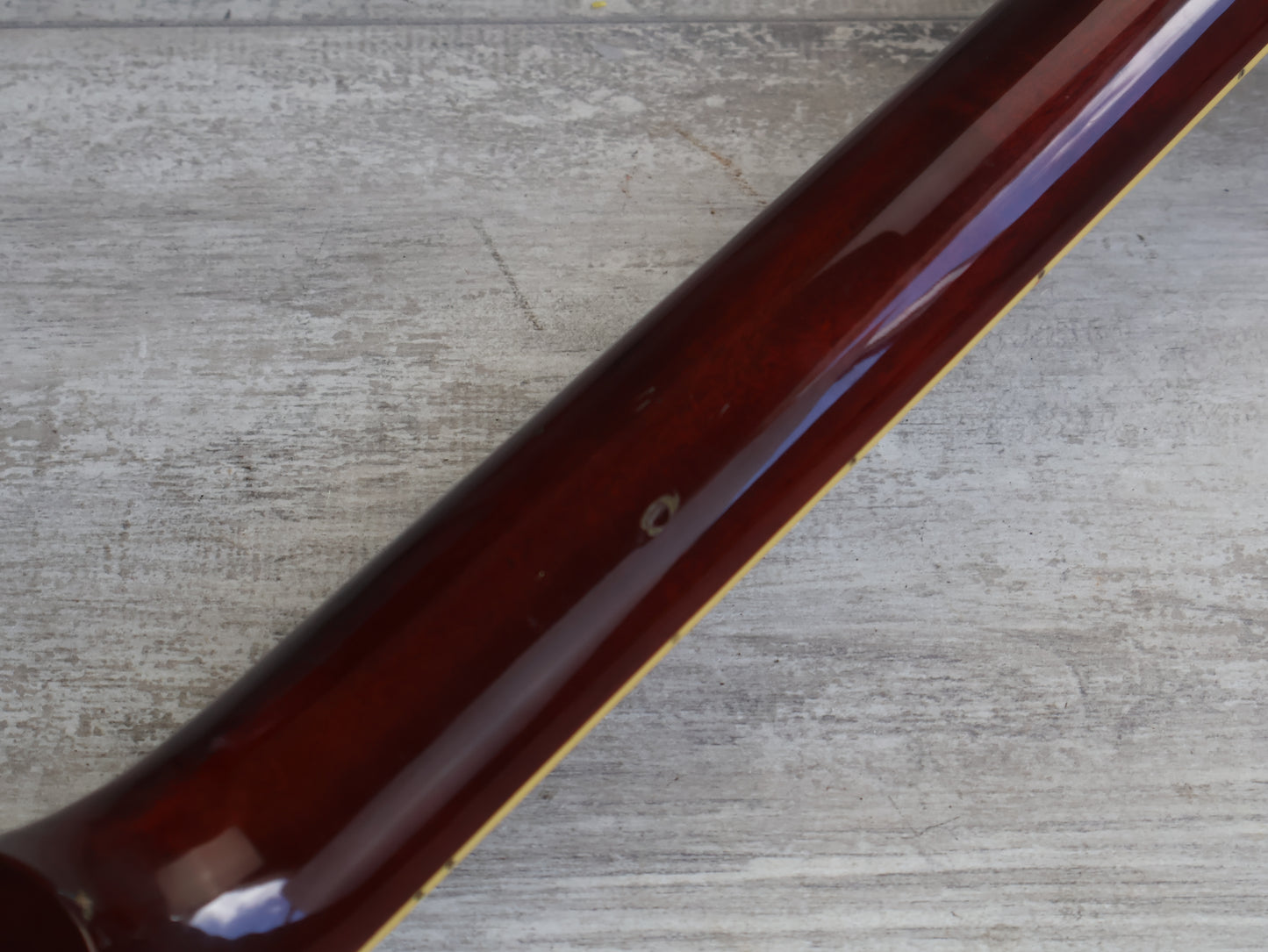 Restrung and given a basic setup/service prior to listing, it's in good used condition with plenty of cosmetic bumps and dings as pictured. The frets are shiny and play smoothly with some light pitting, the neck is straight and the truss works perfectly.