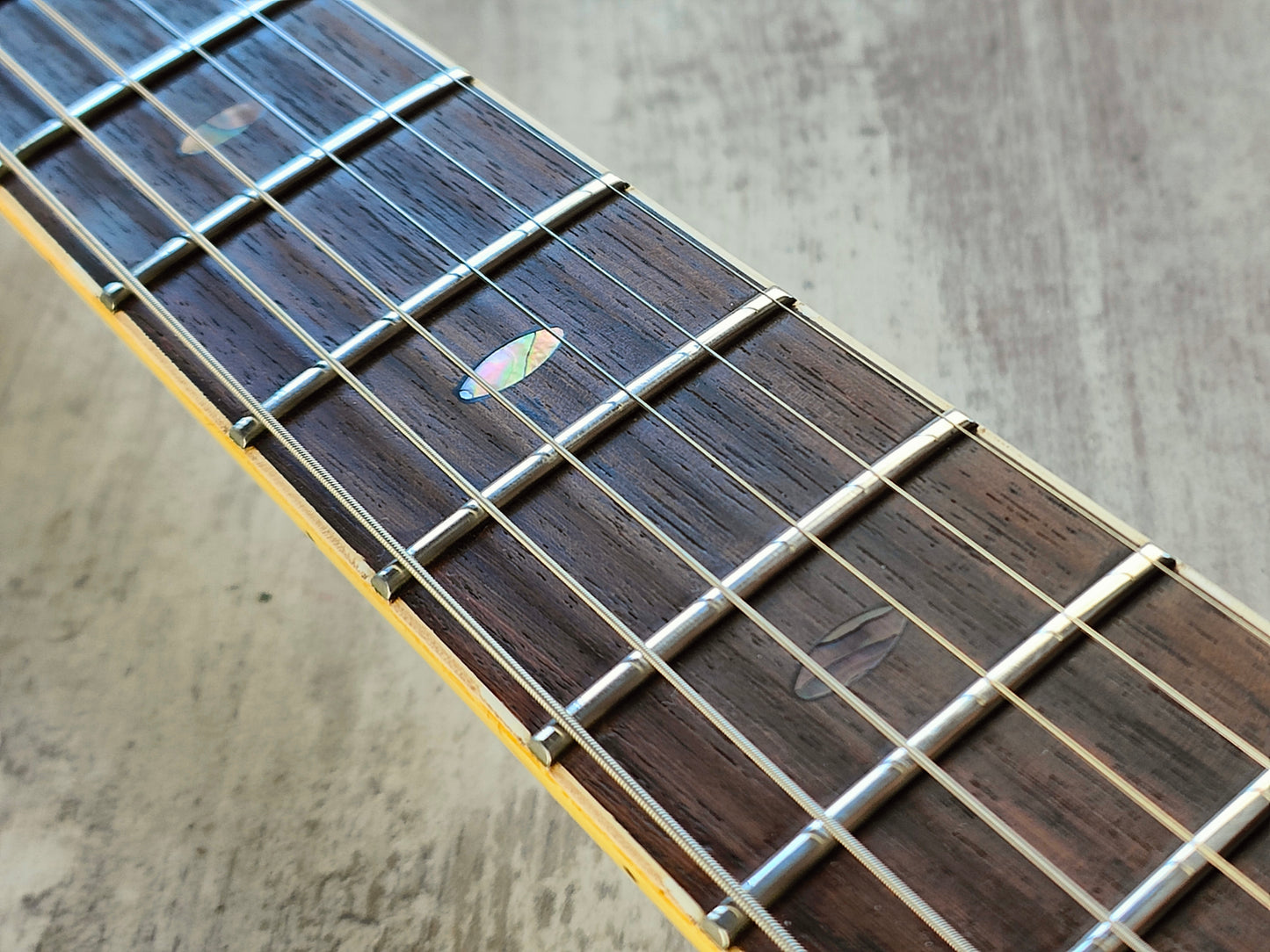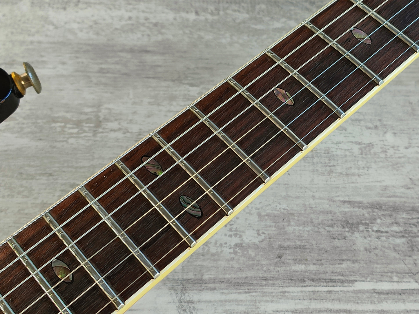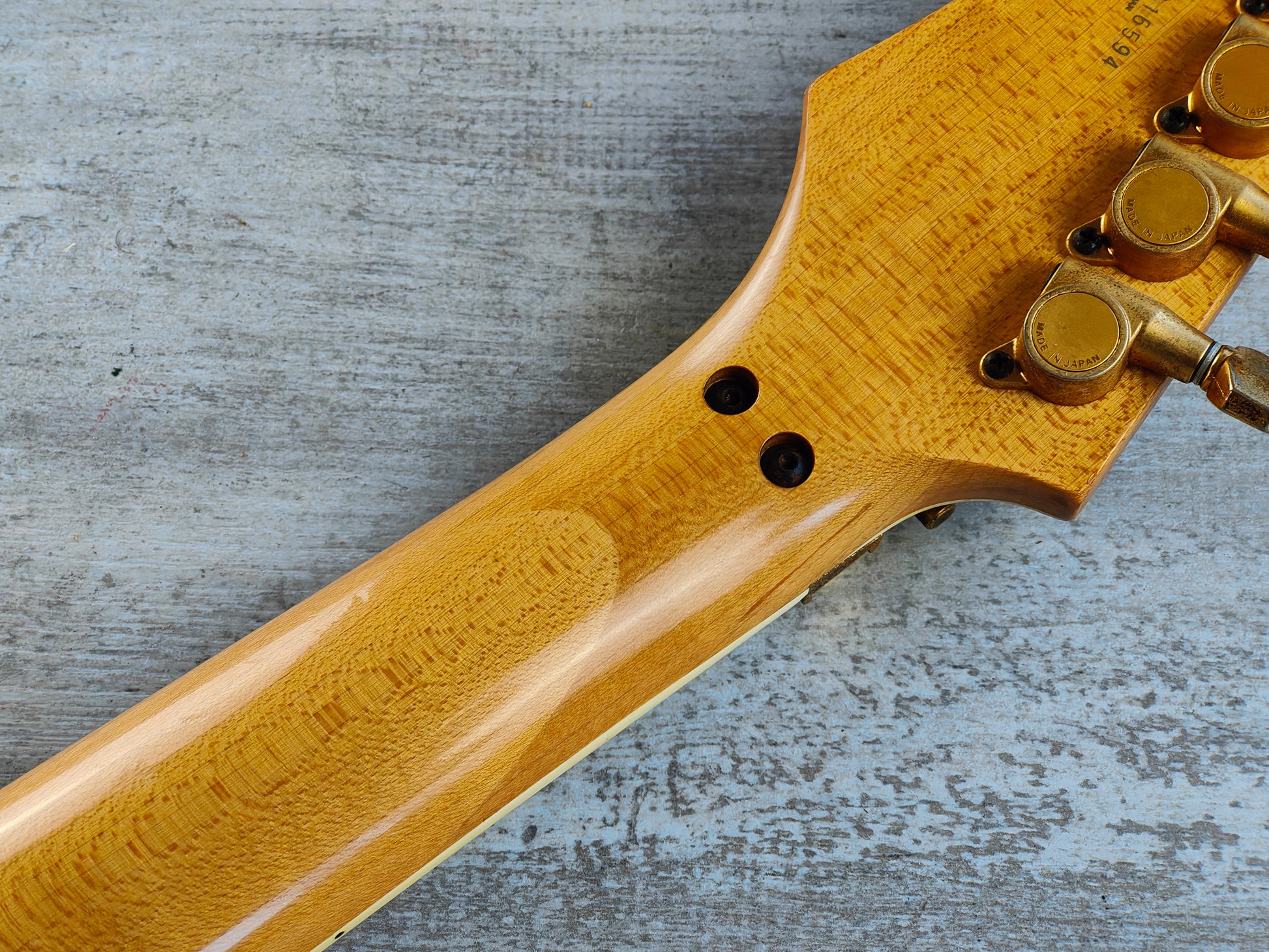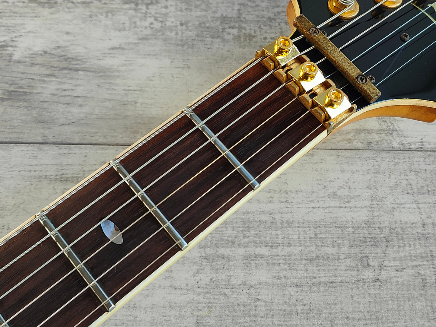 Great used condition as pictured with only basic signs of wear and tear from general use. The frets are shiny and play well with plenty of life left and the neck is straight with a fully functional truss. It appears all original except for the missing tremolo arm and some brand new locks on the locking nut.