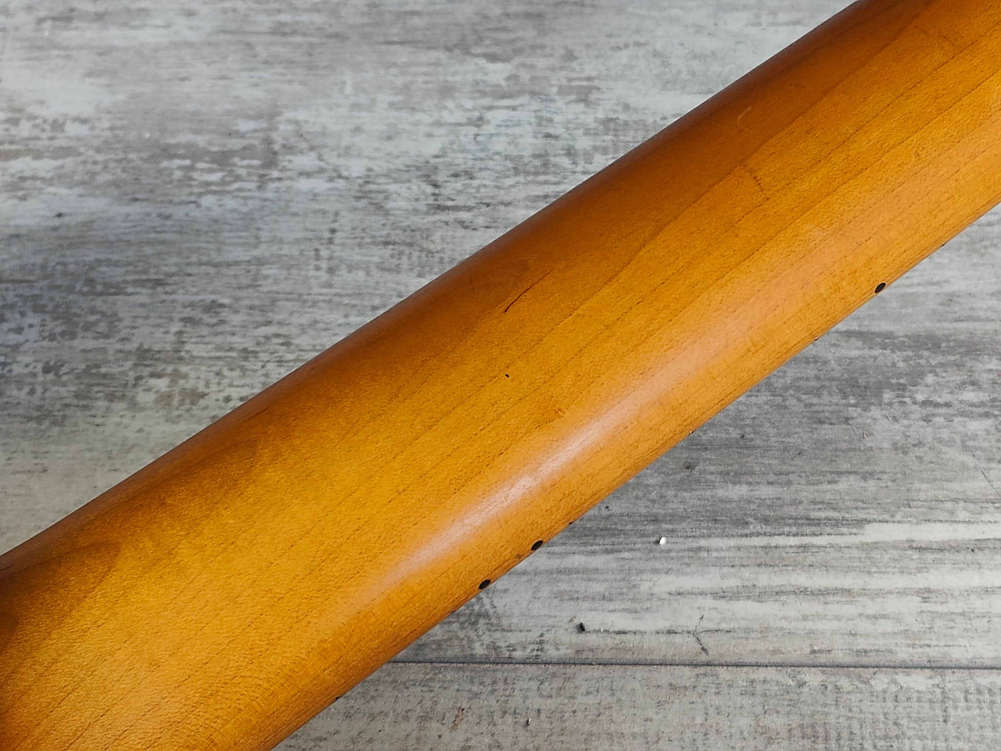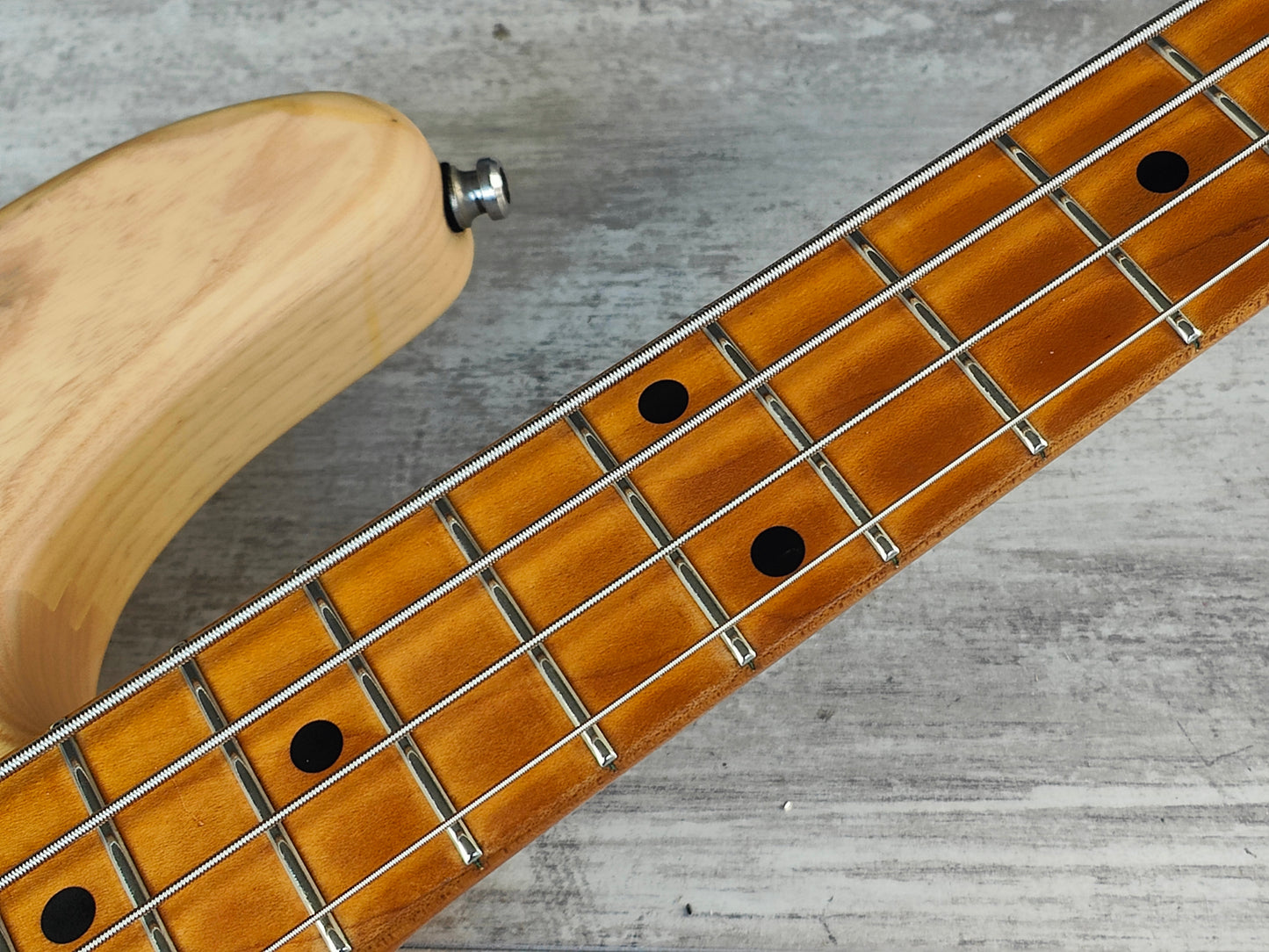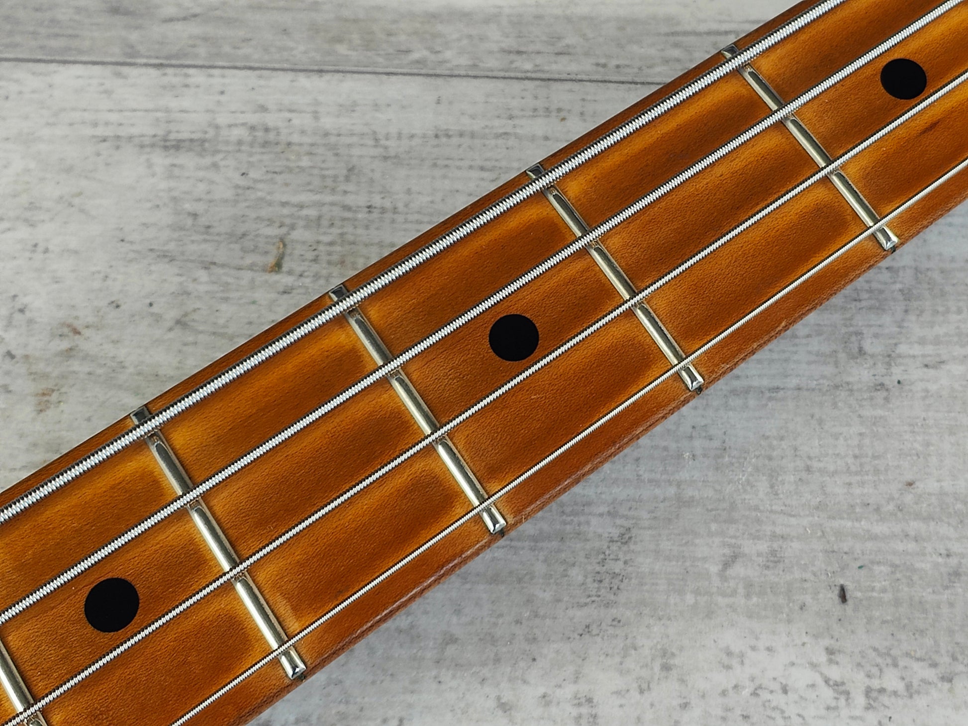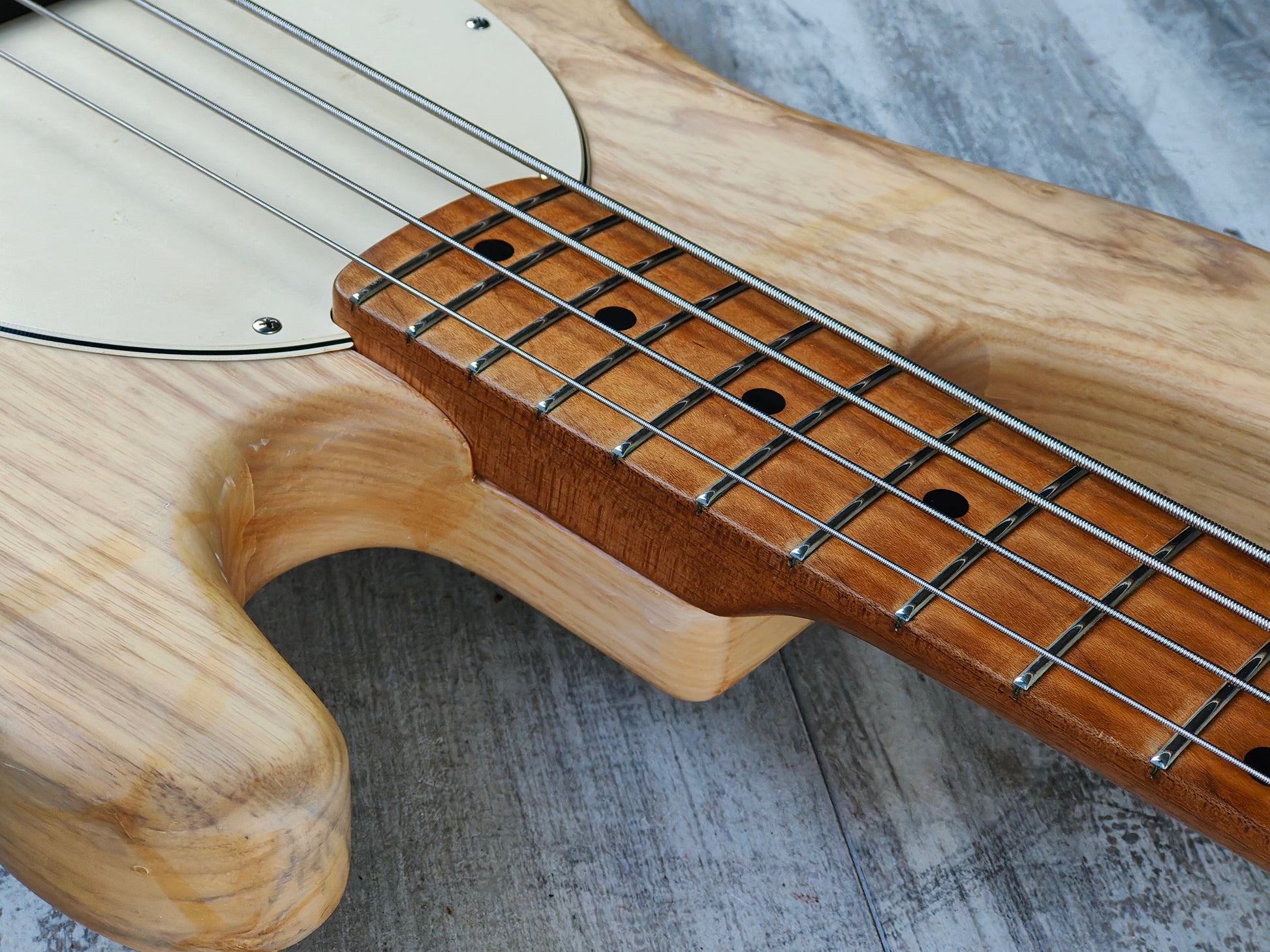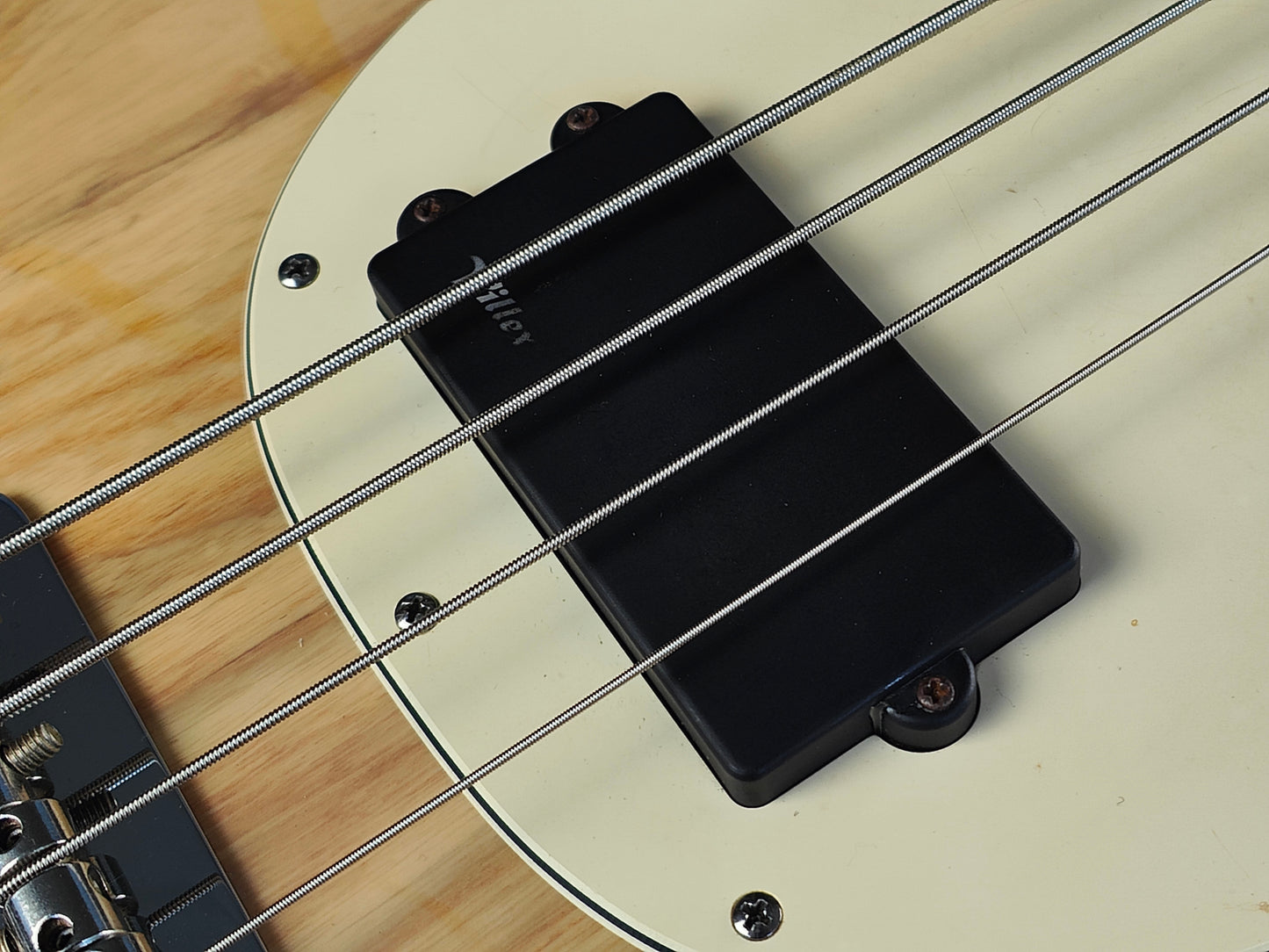 This one's been modified with a Villex (a brand favoured by Flea) pickup, an AGUILAR OBP-2 two-band active EQ, a master volume and a bypass toggle for the OBP-2. The finish on this one was also previously stripped back and buffed smooth for a soft feel. The neck also seems to have been lightly sanded at some point for a satin feel and the whole guitar feels super comfortable in the hand.