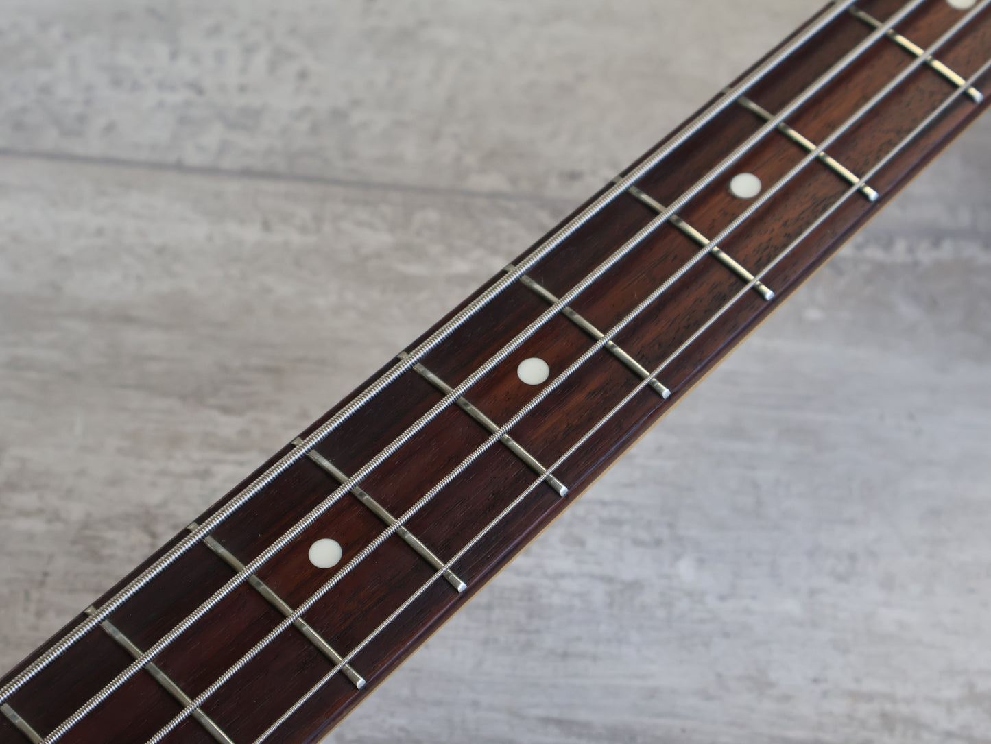 Made in Japan in 1999, the MB98-70SD was the first Japanese iteration of the Mustang Bass and features a period correct Seymour Duncan Designed MB single coil pickup instead of the PJ system on more recent models. Compact alder body bolted to a maple neck with a rosewood fingerboard (770mm scale length, 39mm nut width), it weighs 3.7kg's.