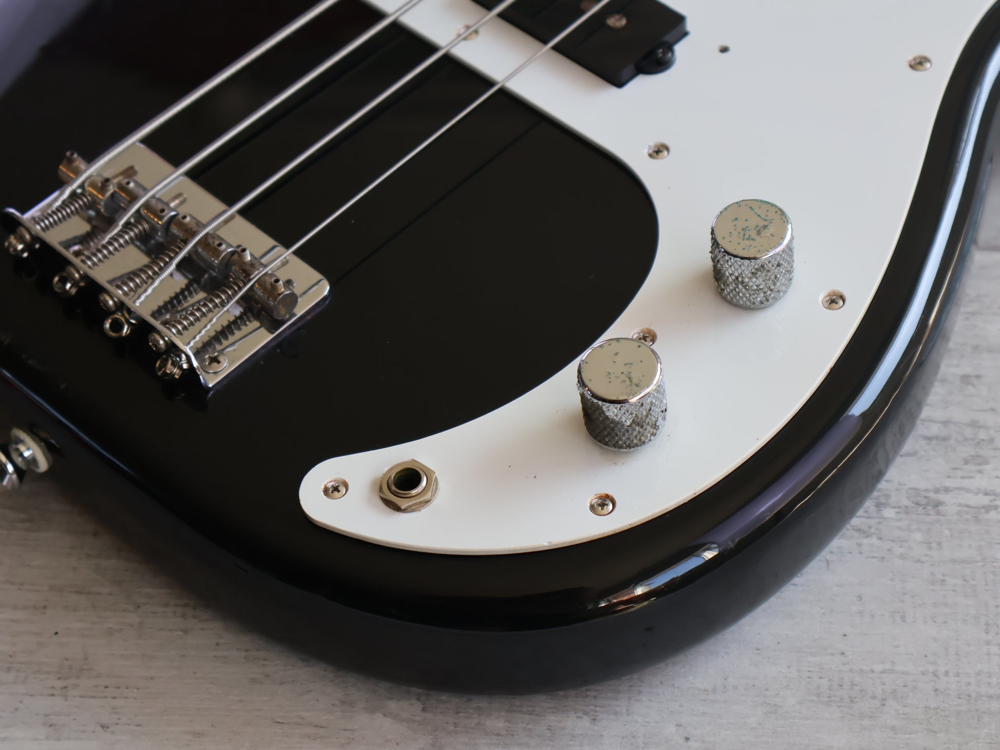 Made in Japan in 1994, the PB-STD model was Fender Japan's version of the American Standard series. Basswood body with a glossy black finish, maple neck (43mm nut width) with a 20 fret rosewood fingerboard, it weighs just over 4kg's. Seems to be all original except for some new screws.
