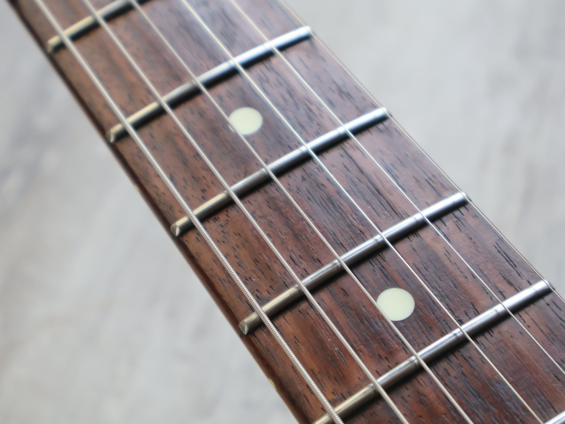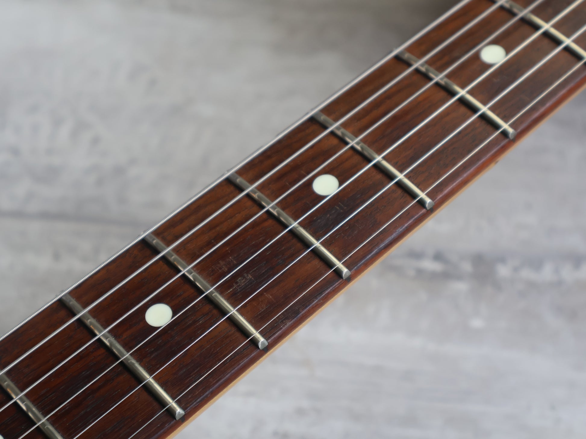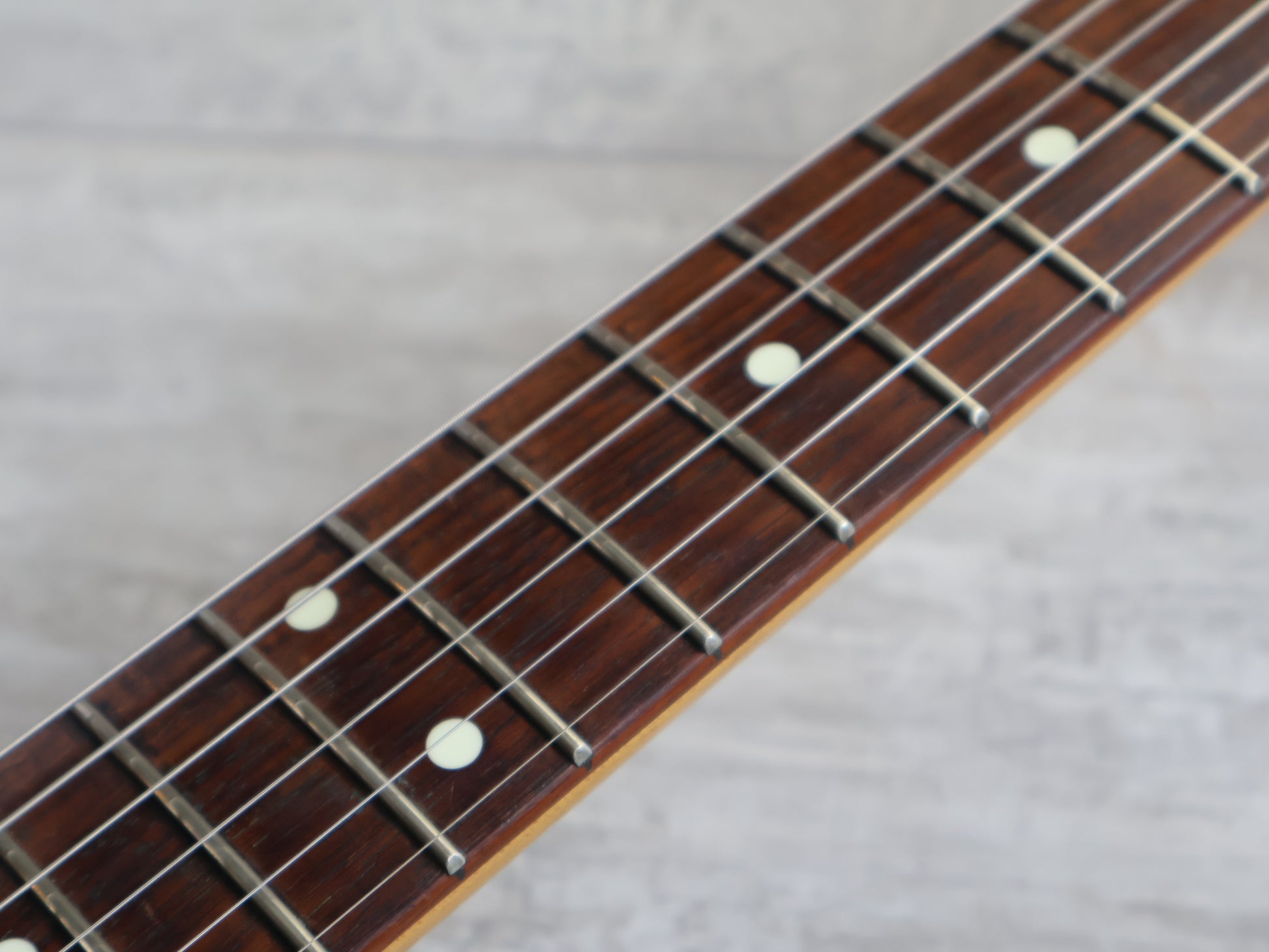 Restrung prior to listing and plays well with a fully adjustable truss rod, straight neck and plenty of life in the replacement frets.