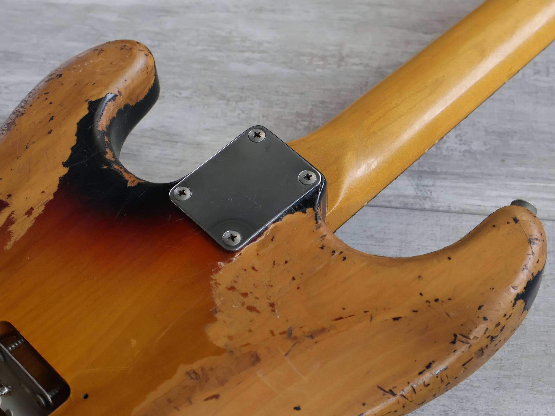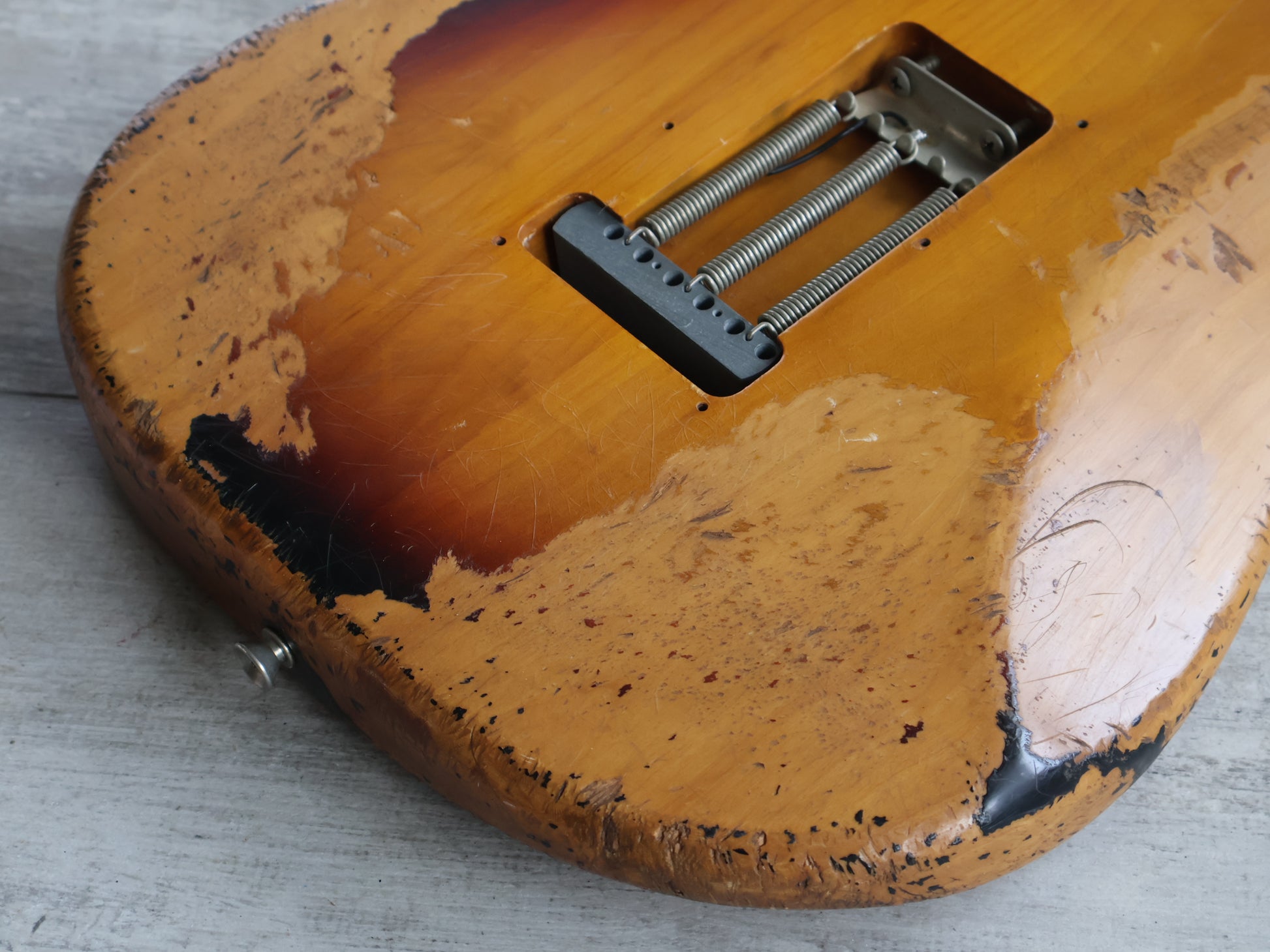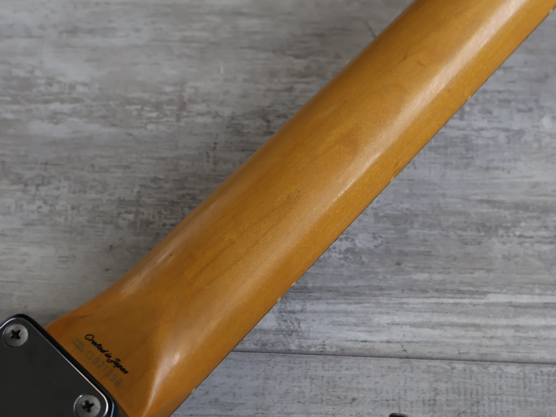 Made by the Tokai Gakki factory in 1999, the ST62-70TX model was a higher end Japanese reissue of the '62 model Fender Stratocaster. Weighs 3.5kg’s and wears a heavily relic'd sunburst finish on an alder body, satin feel maple neck and 21 fret rosewood fingerboard. Factory loaded with Fender Texas Special single coil pickups on a replacement pickguard, the previous owner refretted it with jumbo frets and had it re-radiused to 12" for a more modern feel.