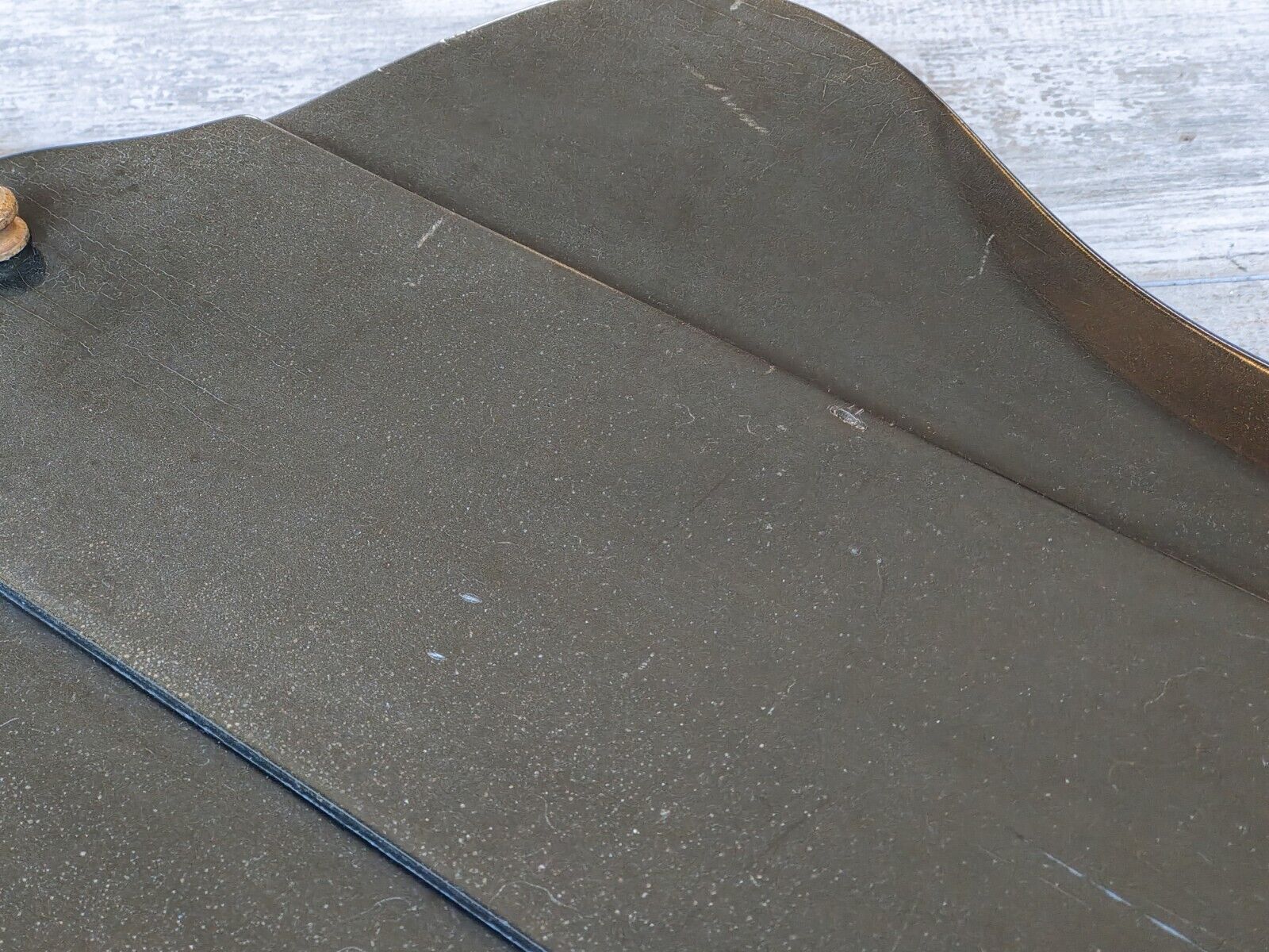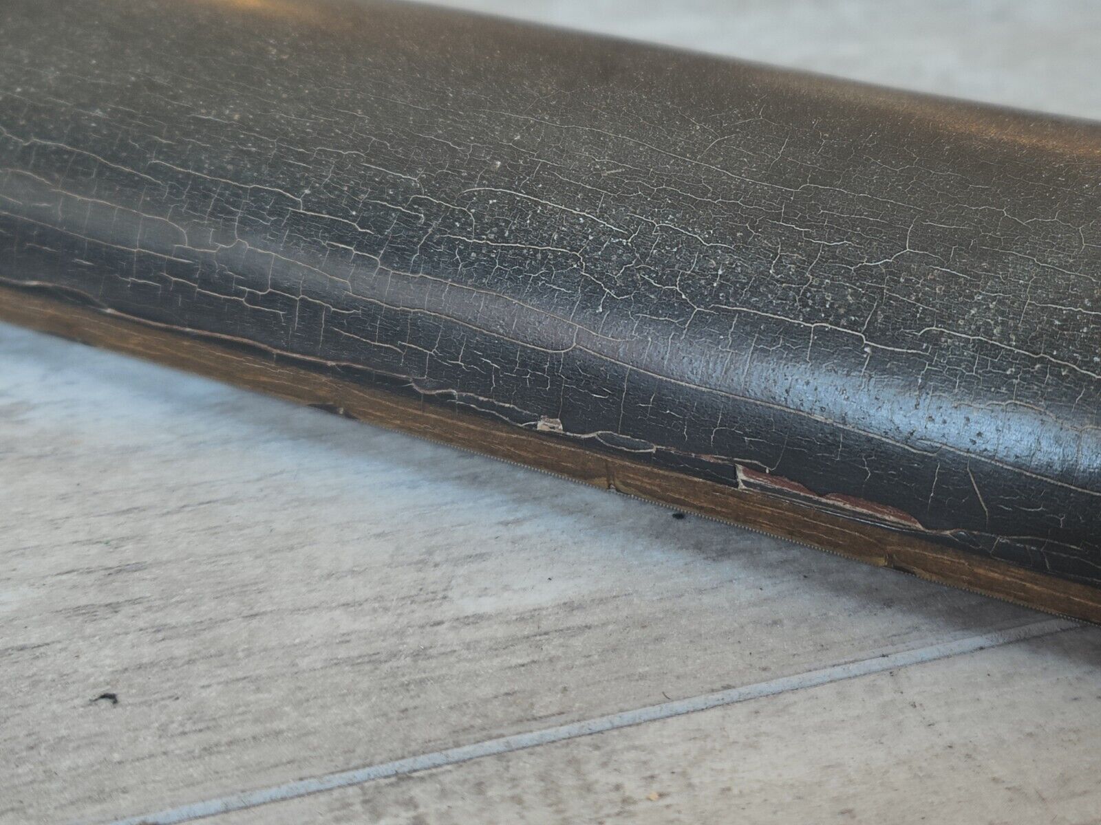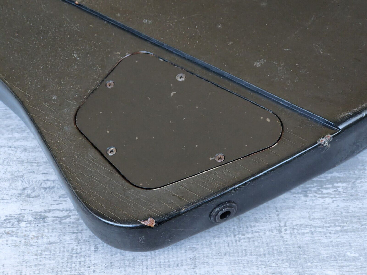 This one came to us with a pretty hefty amount of grime on the finish. We had it buffed and polished back so it's now nice and smooth with plenty of checking and cracking to the finish. There's also some even separation along the fingerboard as pictured, it's been buffed back so it's smooth to play and is purely cosmetic. The neck is straight, the frets are shiny and the truss works as it should.