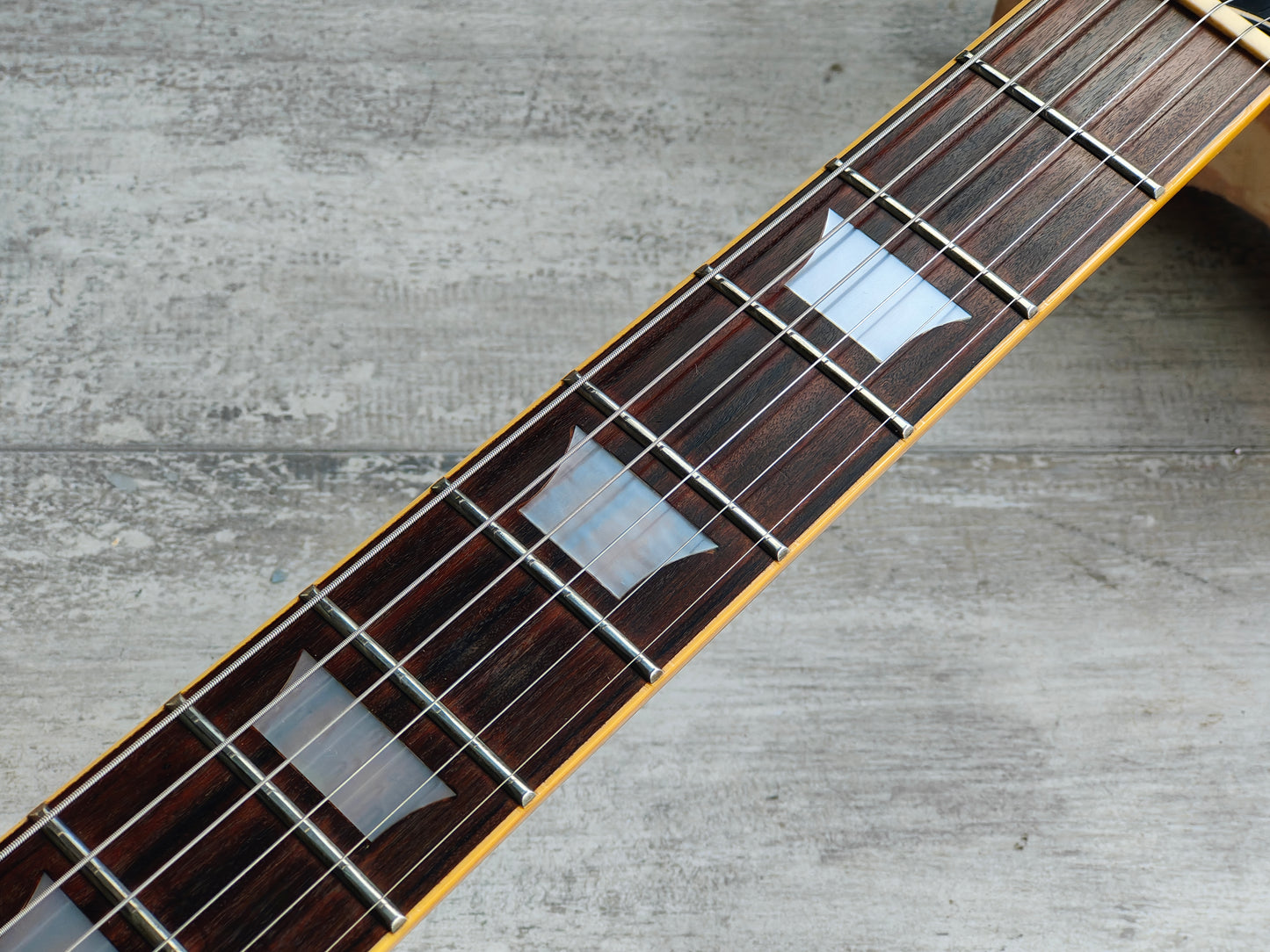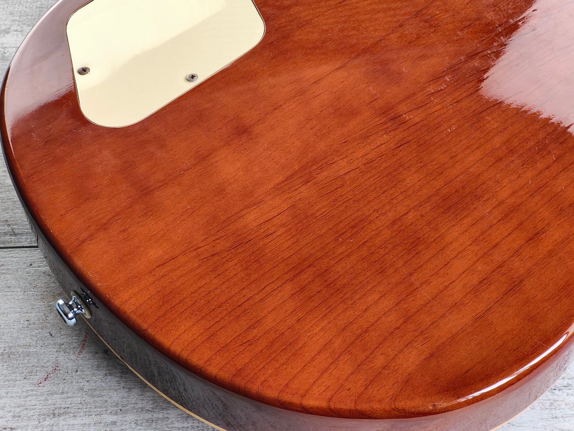 Made in Korea in 1999, the ALS42F was a budget friendly offering from Tokai that features a bolt-on maple neck, an alder body with a laminate flamed maple top, a 22 fret rosewood fingerboard and weighs 4.1kg's. Loaded with a pair of Tokai PAF style humbuckers and vintage-style tuners, this one appears to be all original.