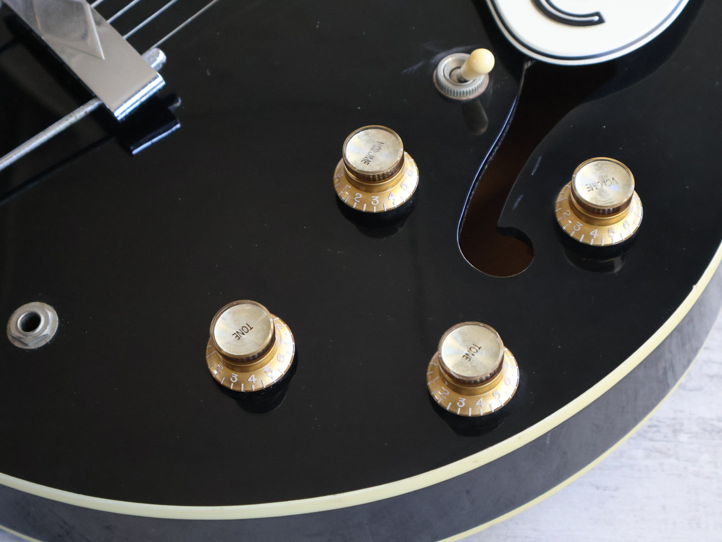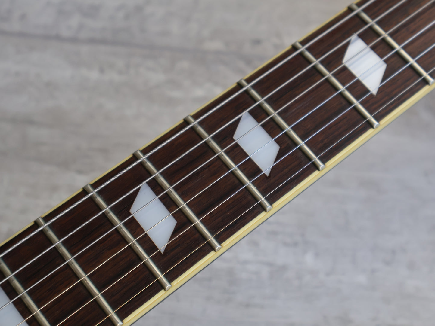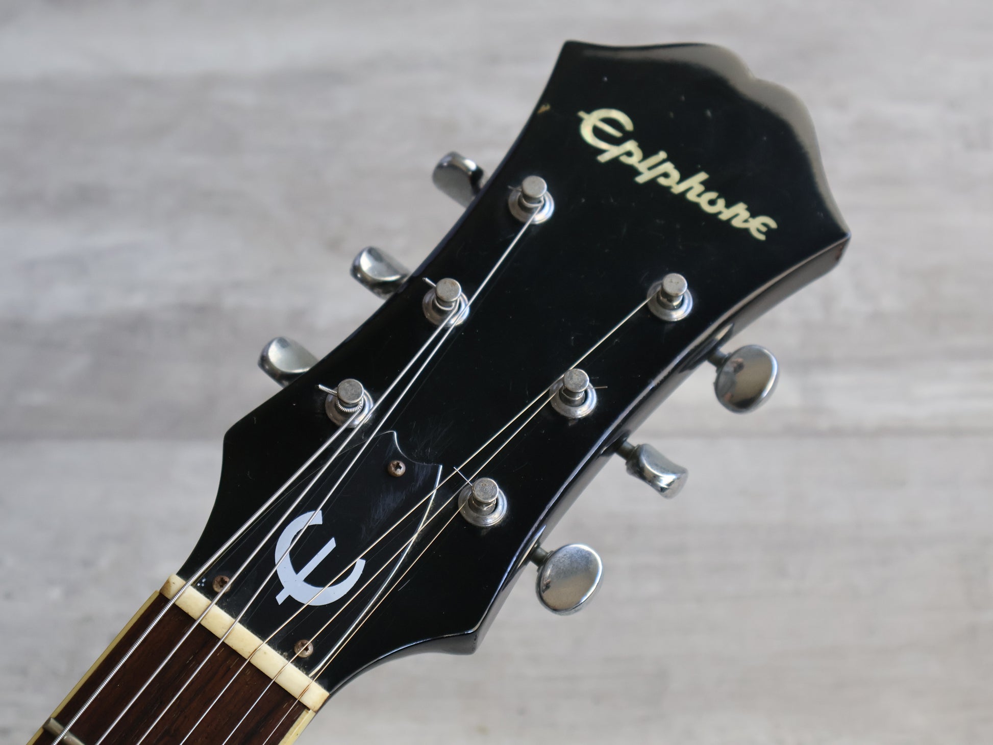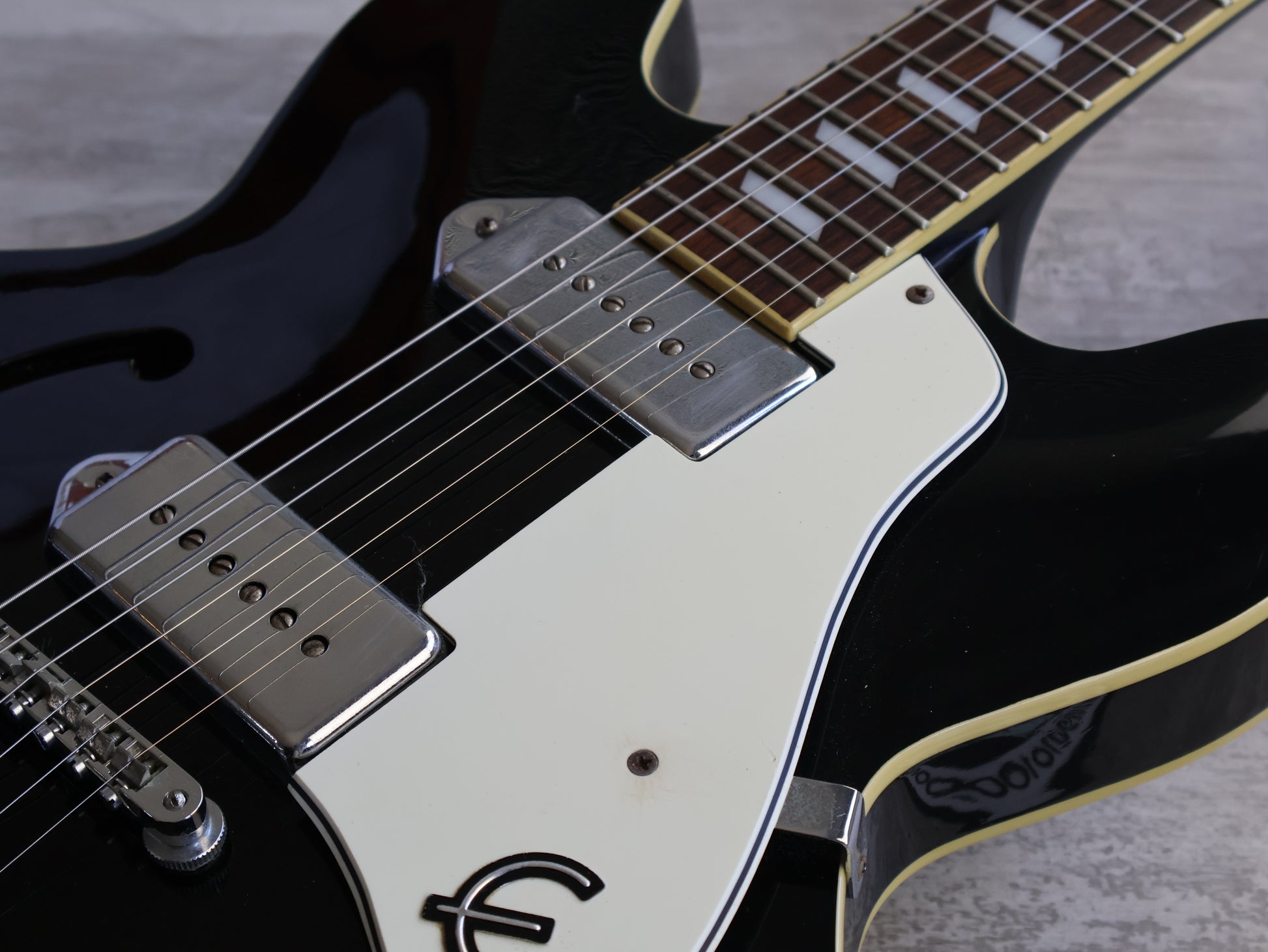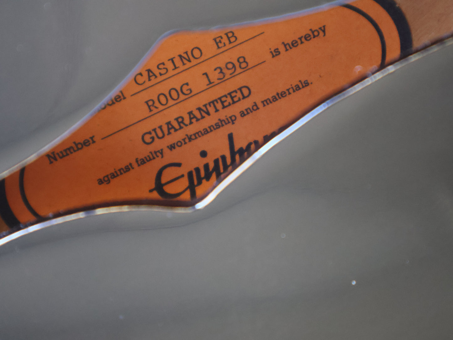 Apparently made famous and beloved by Paul McCartney (not John Lennon) in the 60's, this is one of the desirable Epiphone Casino Reissue's made by the Peerless factory in Korea. Manufactured from 1995 - 2004, they feature a slim taper "D" profile neck, P-90T / P-90R pickups and an elongated headstock with no inlay. The neck joins at the 17th fret which differs from the later 2005 - 2019 run which has a neck joint at the 16th fret.