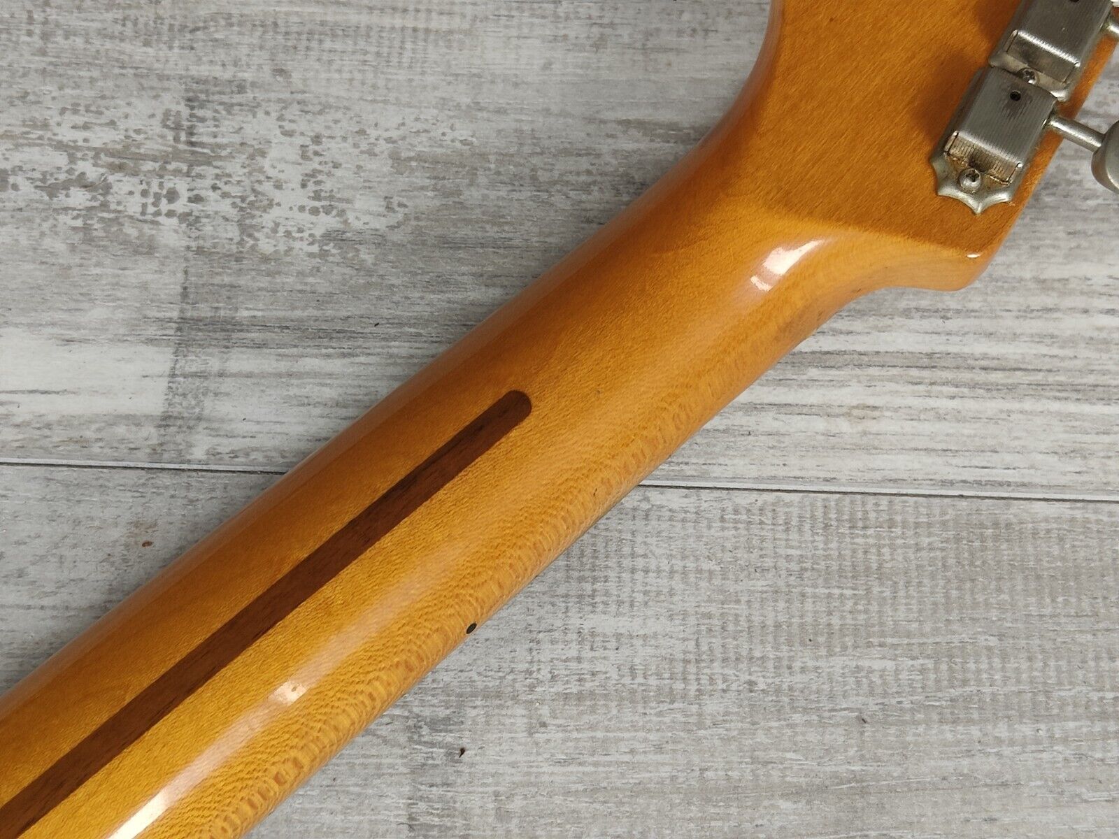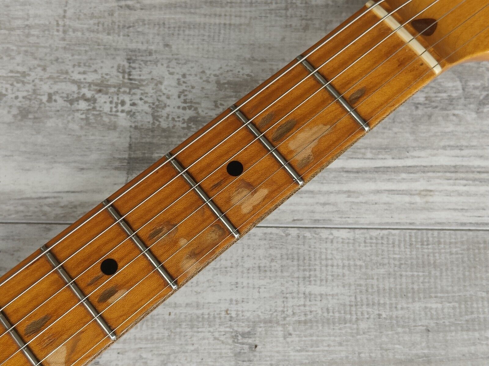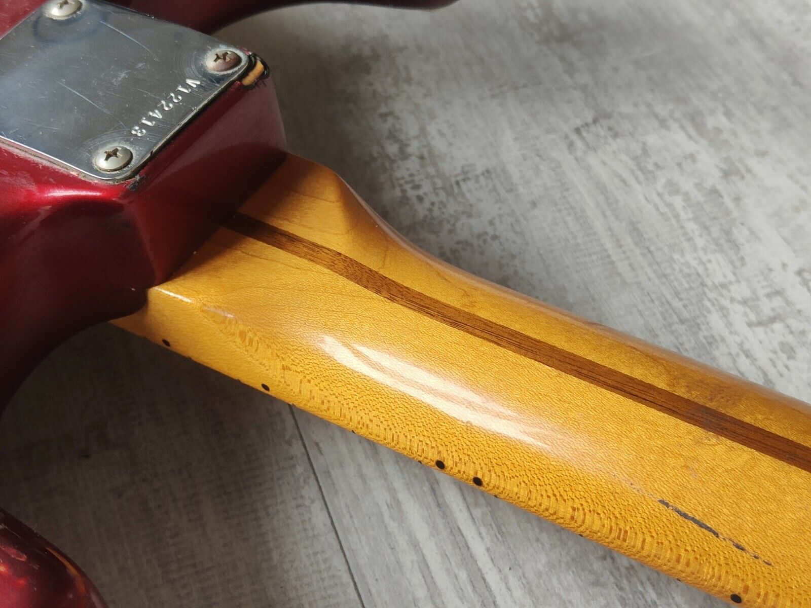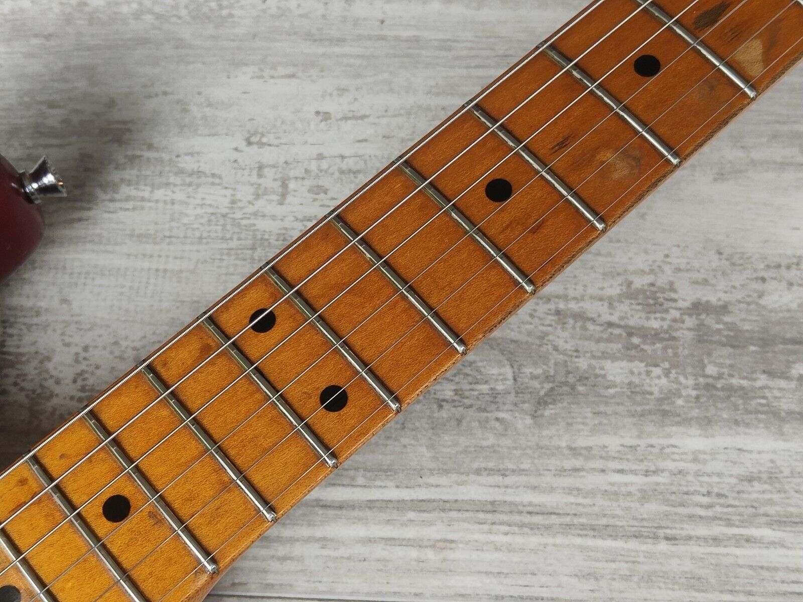 Road worn and relic'd condition as pictured, this guitar has been heavily played over it's life. The neck is straight with an adjustable truss, the frets have some pitting but were polished and play as they sit. Includes the original case and paperwork from the original purchase (from Yamano music in Japan).