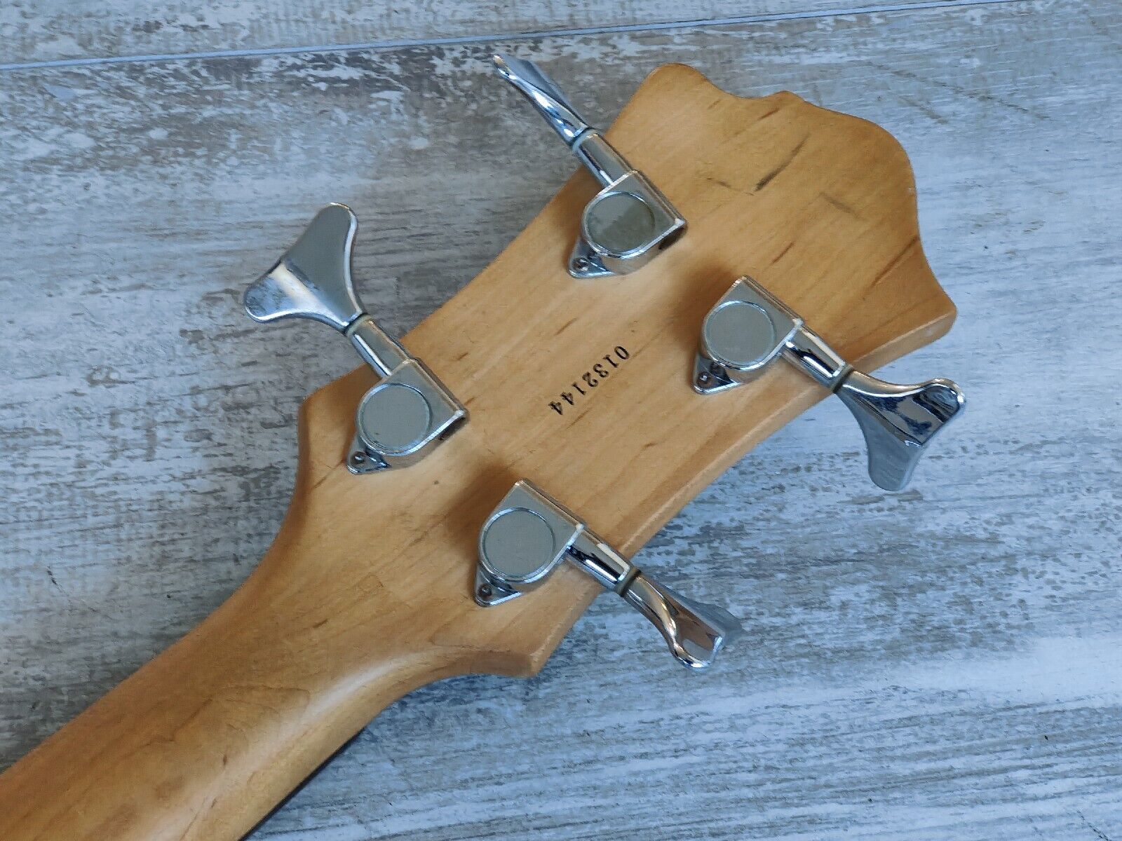 Seems to be a Korean made model from the early 2000's (serial on the back of the headstock). Maple body with a maple neck and rosewood fingerboard, it weighs 3.6kg's. Loaded with a pair of P style pickups controlled by two volume knobs and a master tone along with a three-way selector.