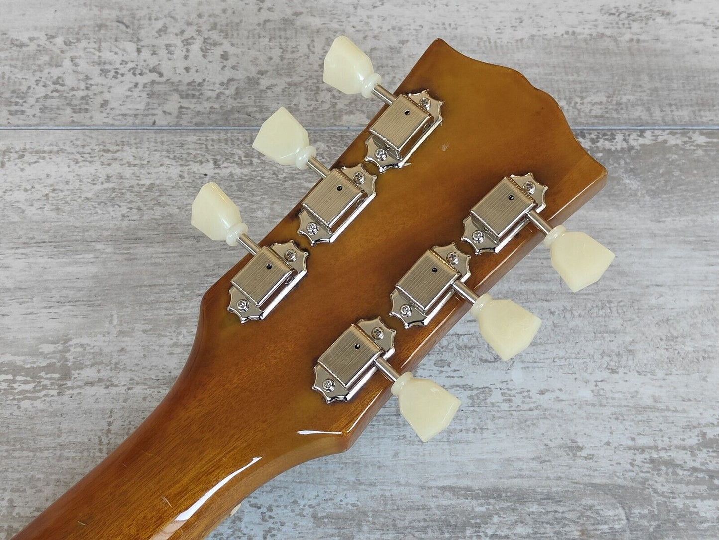 This one came to us in need of some love, so we gave it a full teardown and rebuild with a deep clean and full professional setup/service. It still shows signs of natural play with some cosmetic blemishes here and there, small paint crack in the finish around the neck is purely aesthetic. Plays and sounds great with shiny frets that show some light signs of wear, the truss works perfectly and the neck is straight and smooth.