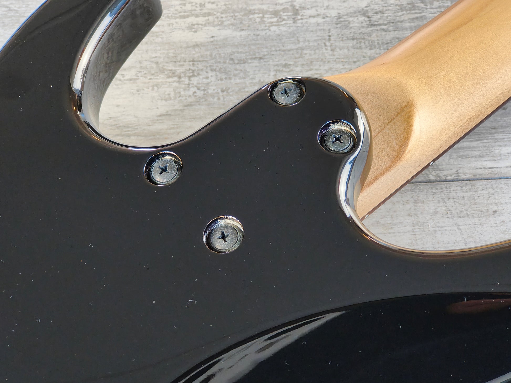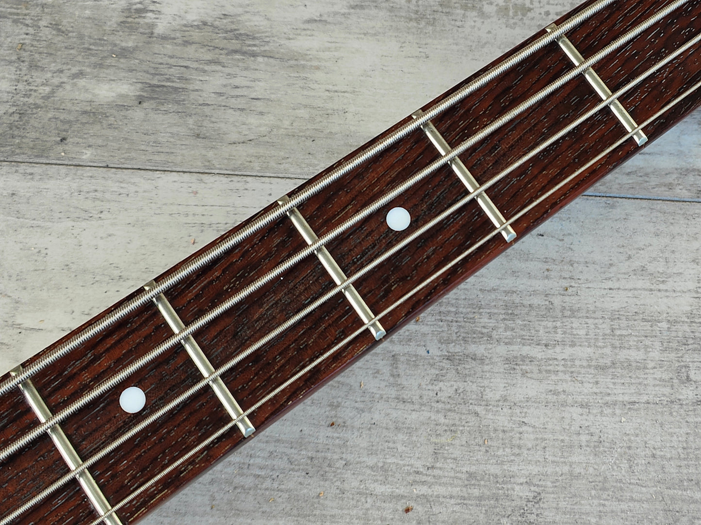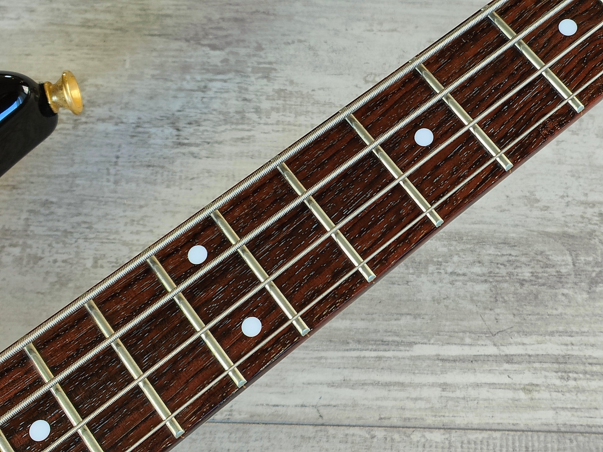 Japanese made in the 2000's. Contoured "Dinky" style body, maple neck and 22 fret rosewood fingerboard (820mm scale length), weighs 3.2kg's. Passive PJ pickups with volume, tone and balance knobs.