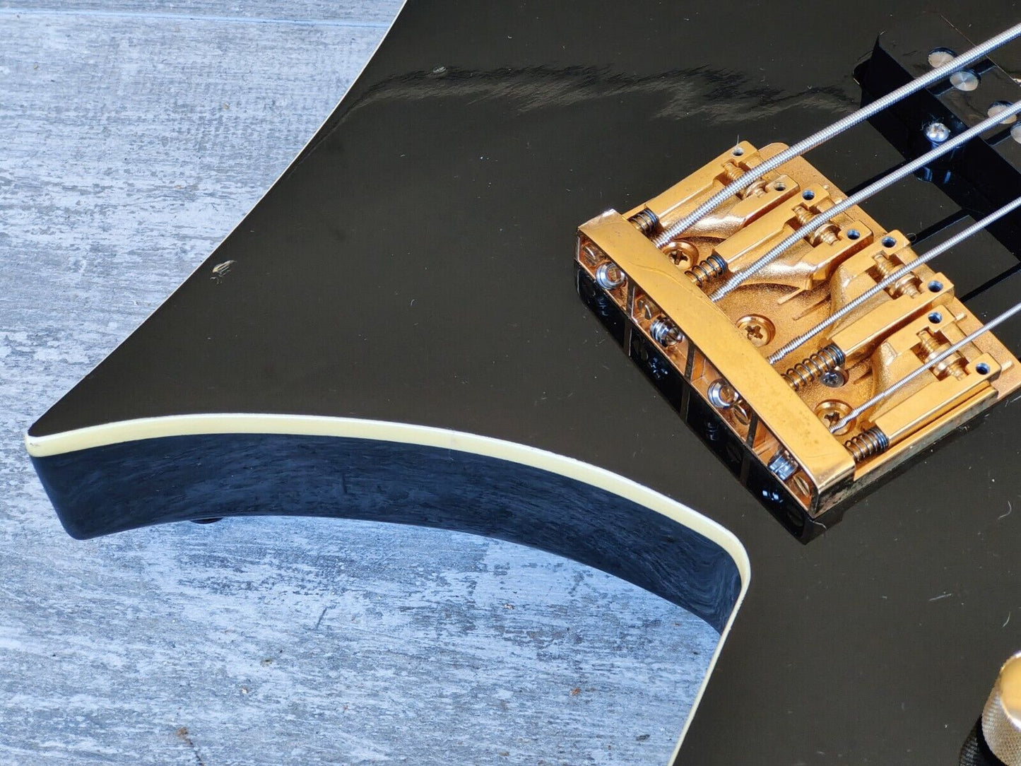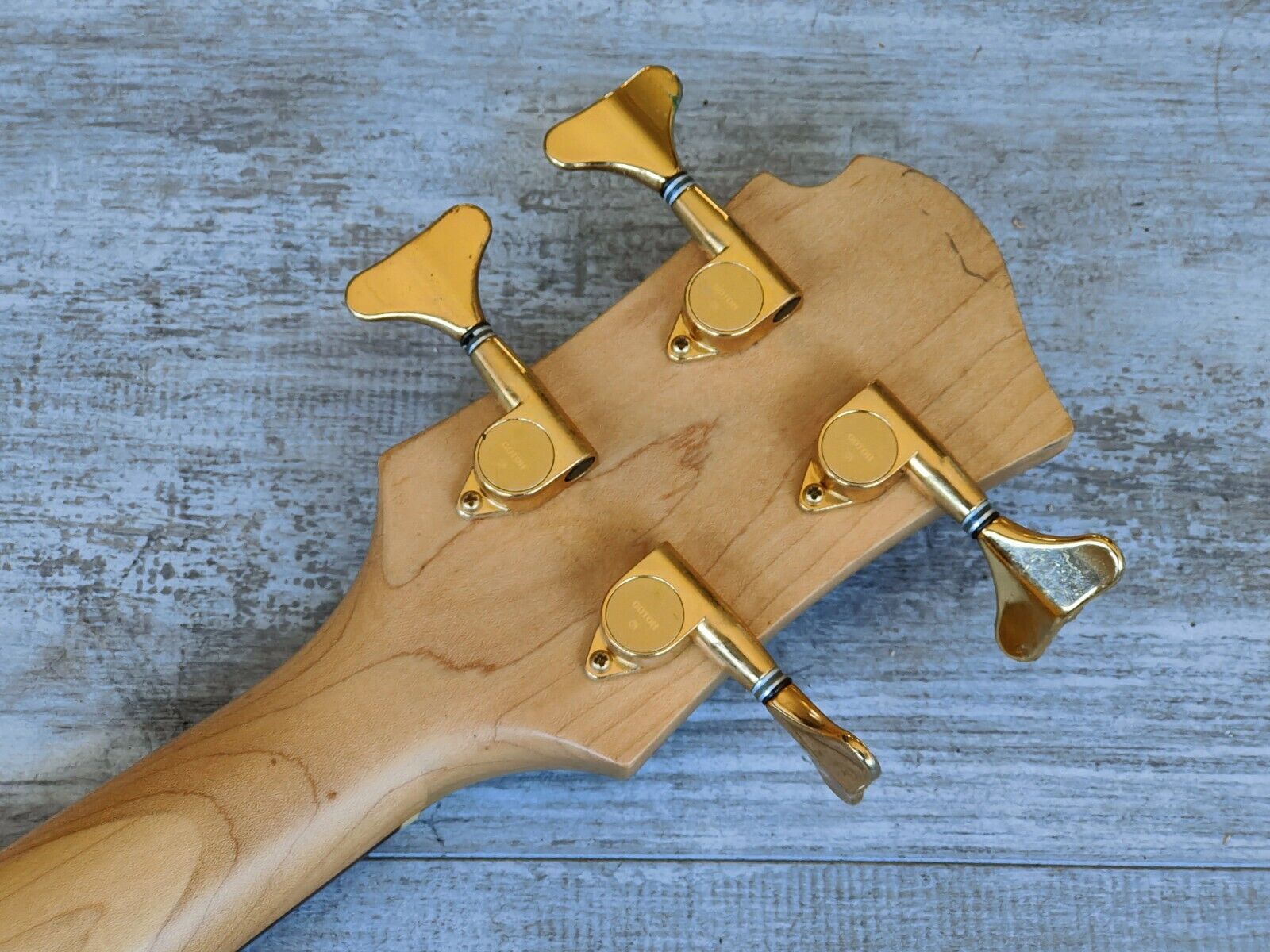 Made by Fernandes in the 2000's, this is one of the earlier Target models that was made in Japan. Seemingly designed to be close to the signature model Warlock style bass for Heath of X Japan, they're made with a solid basswood body bolted to a maple neck with a 24 fret rosewood fingerboard (32" scale length, 40mm nut width), it weighs 3.4kg's.