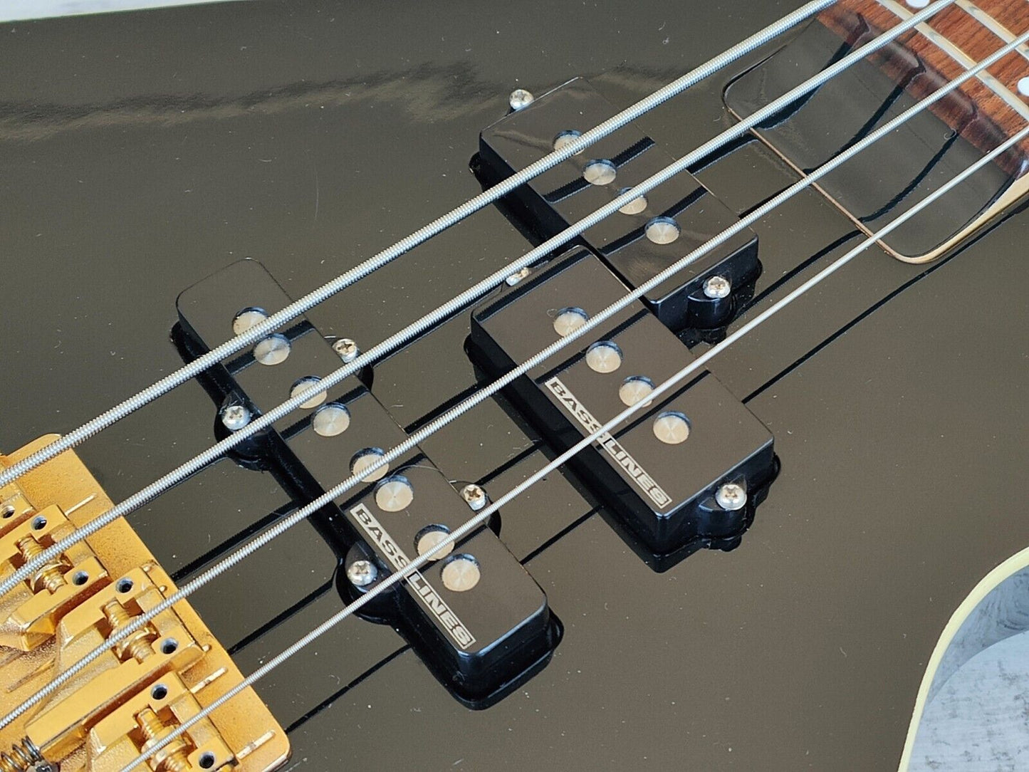 Loaded with a pair of passive Basslines PJ pickups controlled by master volume and tone knobs along with a push/pull pot activating a 9v boost circuit and three-way pickup selector. The original Gotoh tuners and Fernandes branded bridge keep it tuned and stable.