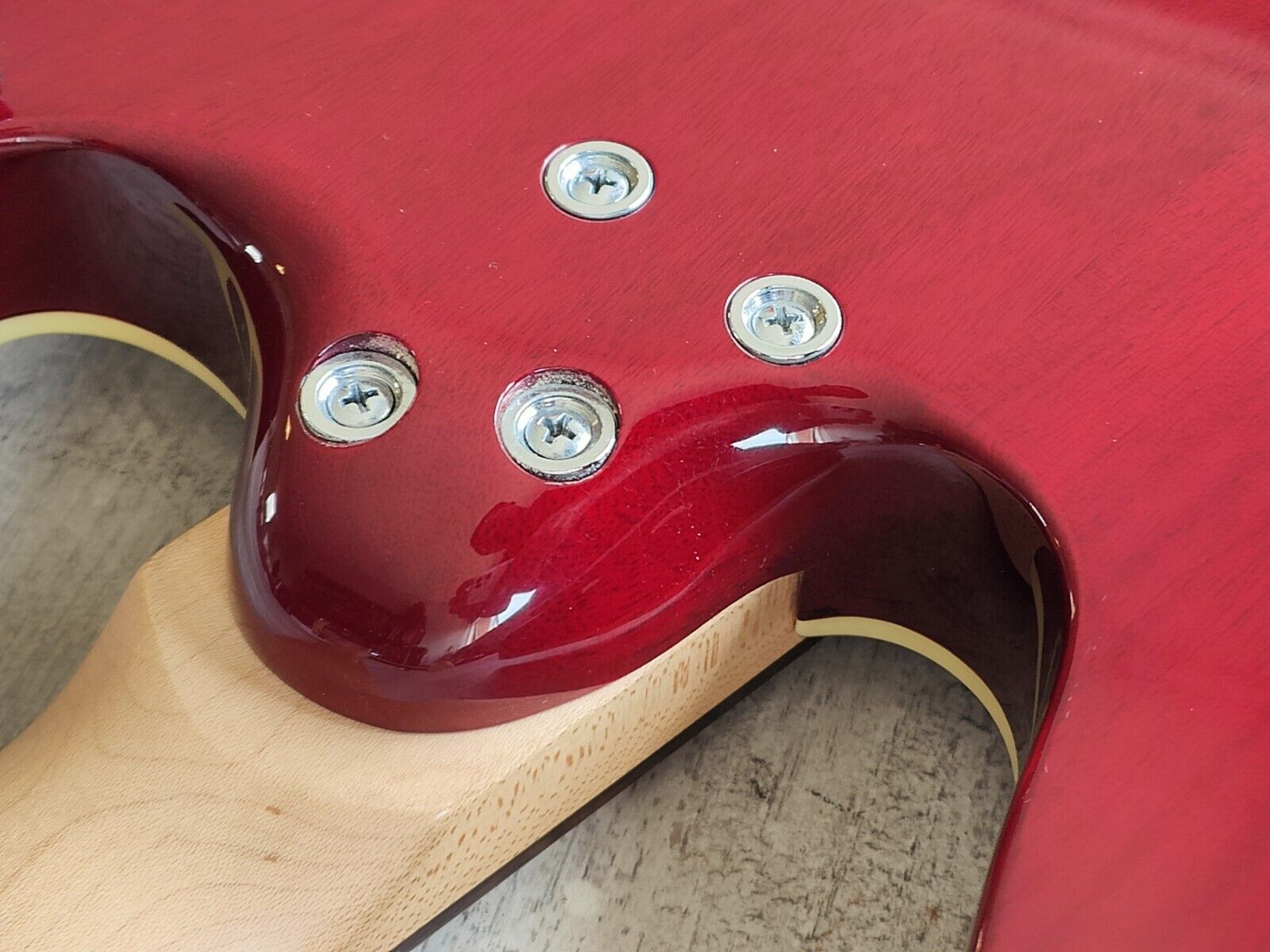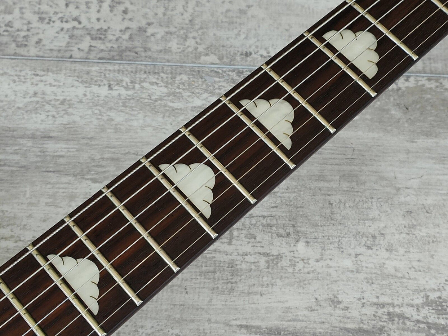 Good used condition with some light wear and corrosion to the hardware as pictured, given a basic service and a truss adjustment prior to listing. Frets are shiny and smooth with plenty of life left.