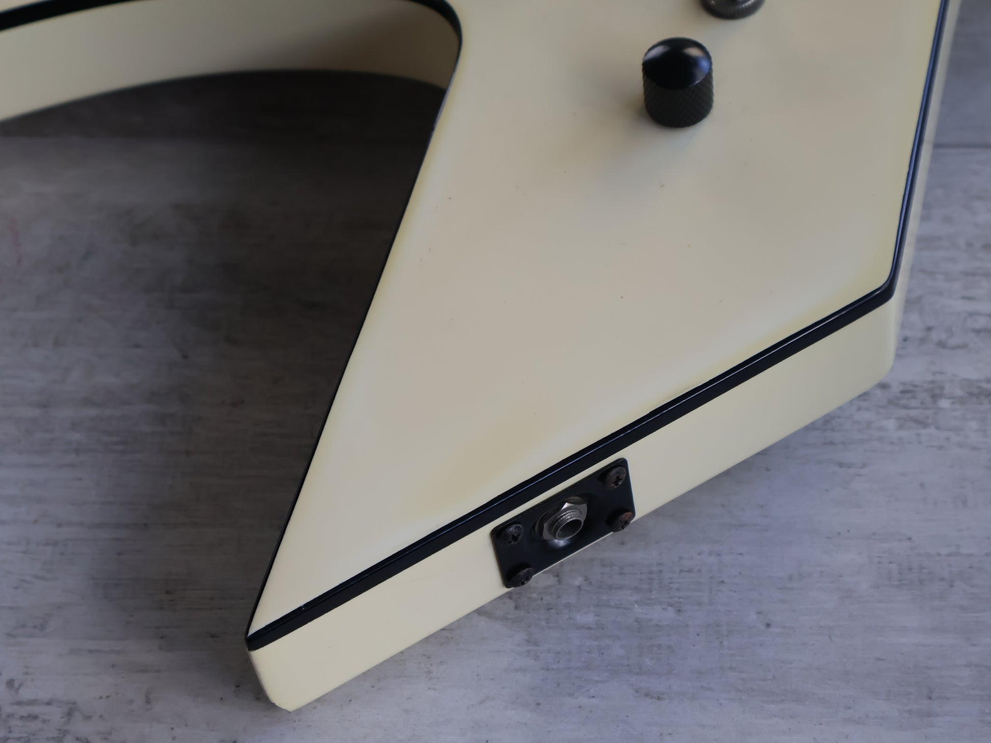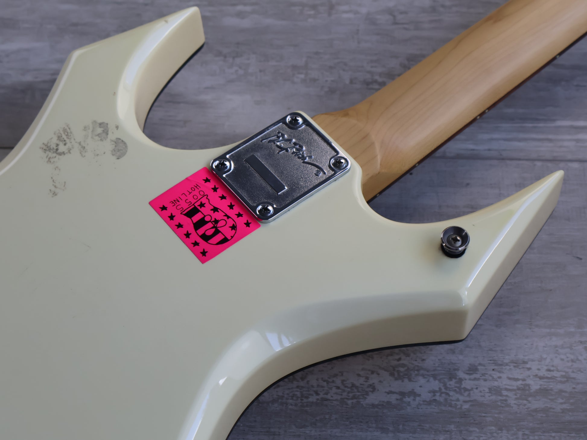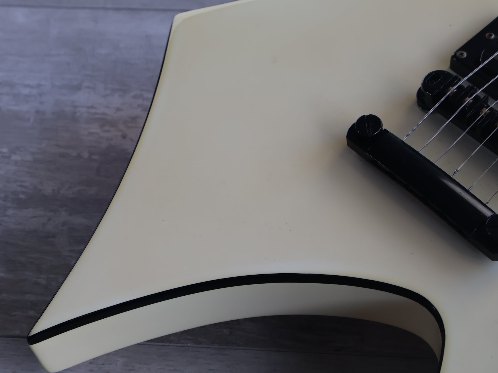 A Chinese made model from 2001 (based on the serial on the back of the headstock). Solid body with a maple neck and 24 fret rosewood fingerboard, it weighs 3.8kg's. Loaded with a pair of BC Rich humbuckers and tuners plus an aftermarket bridge and tailpiece.