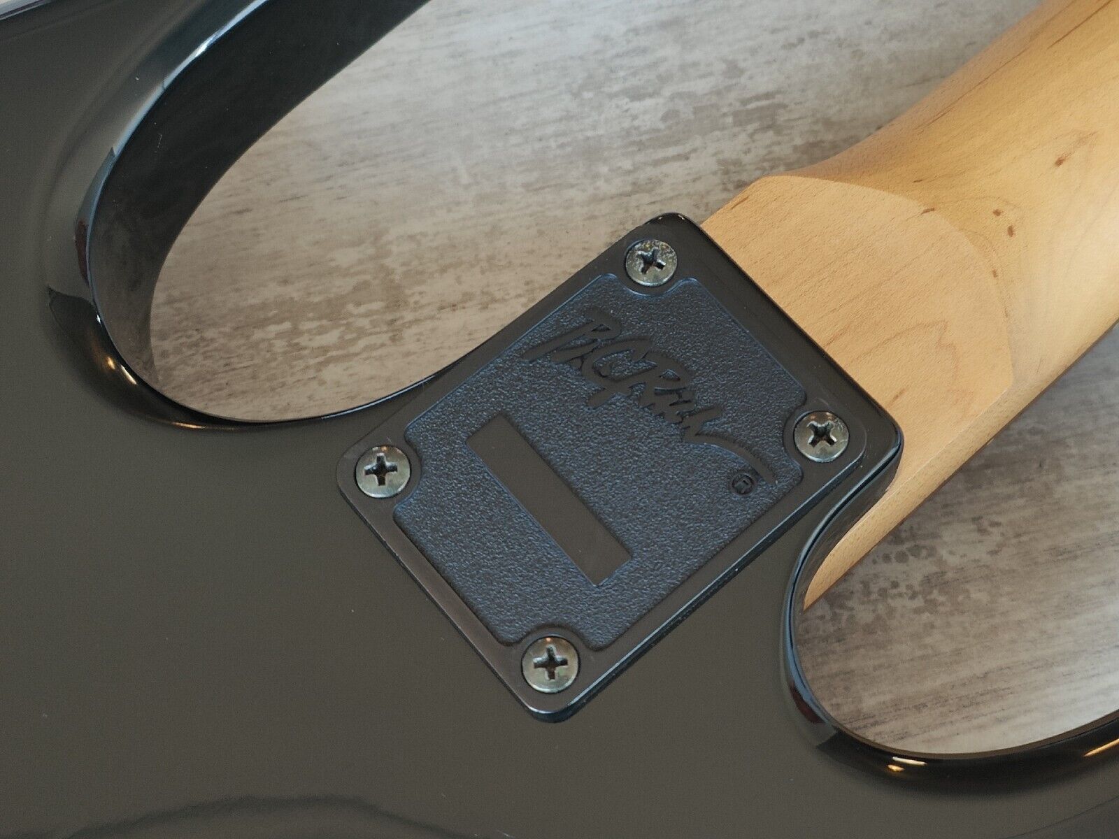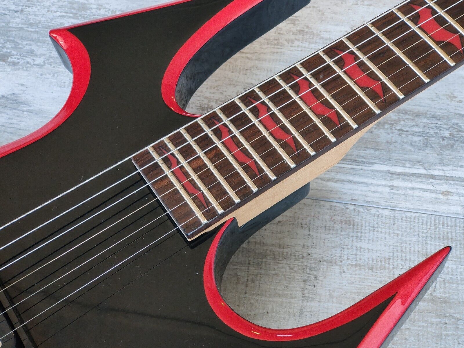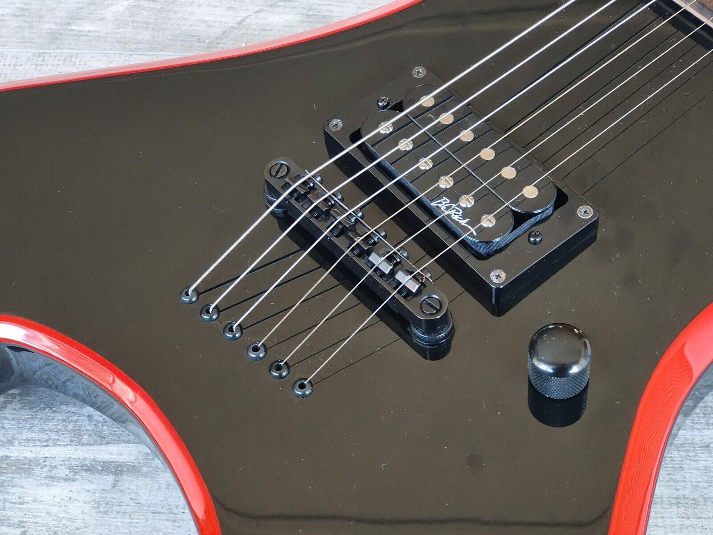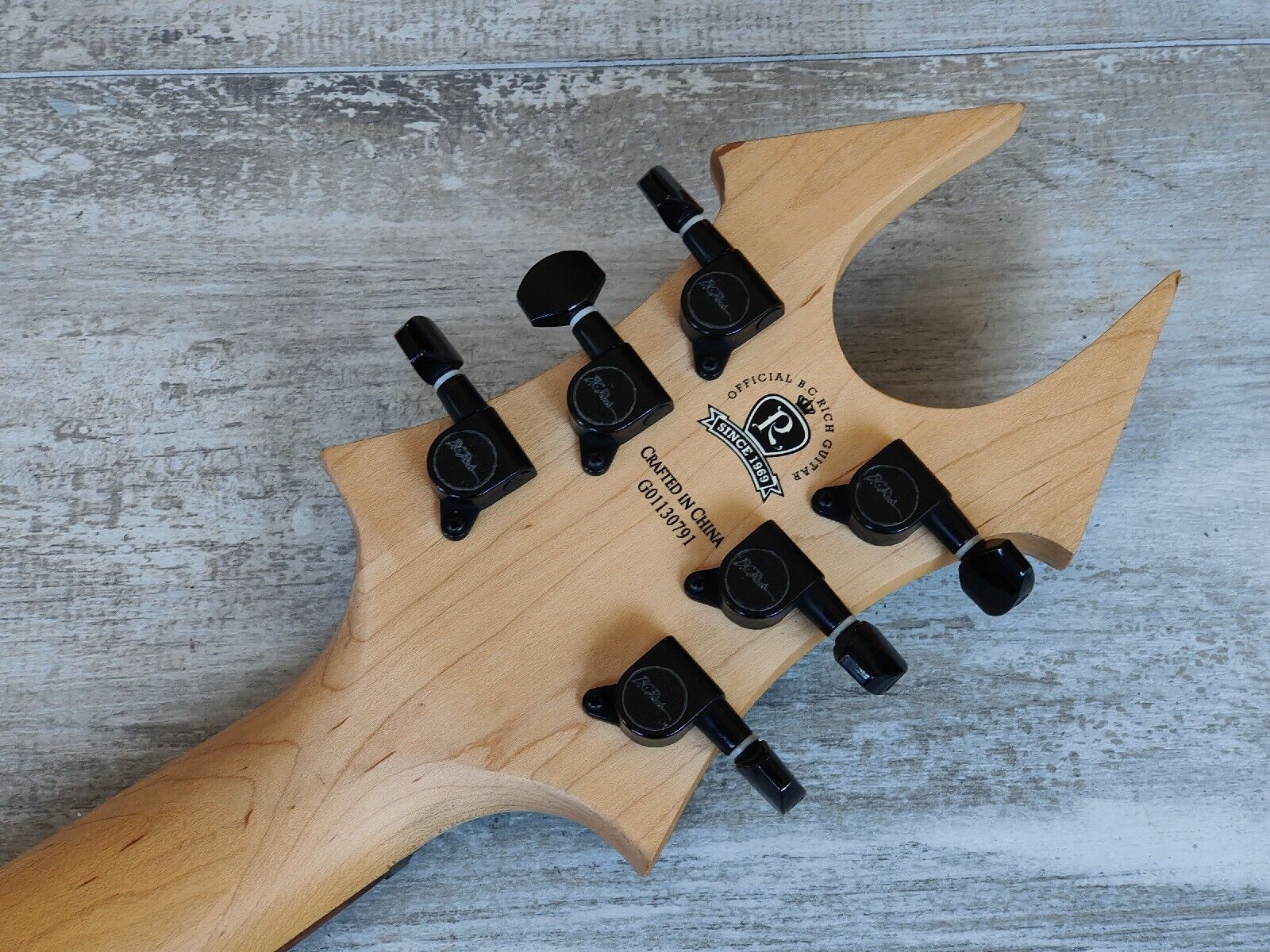 Chinese made in 2001, here's a compact weapon that also doubles as a guitar. 24 frets on a rosewood fingerboard with red inlays (648mm scale length), slim satin feel maple neck, it weighs 3kg's. Loaded with a single BC Rich branded humbucker controlled by a simple volume knob.