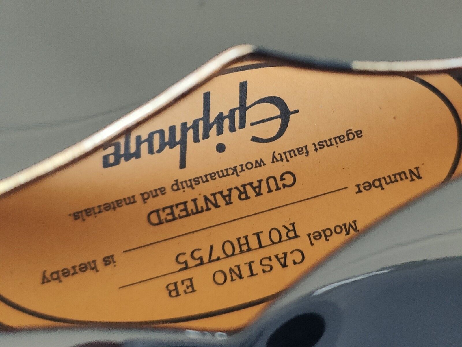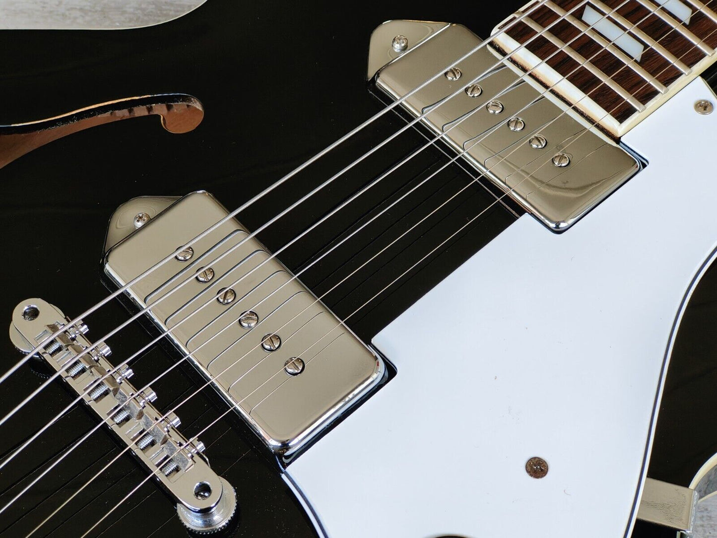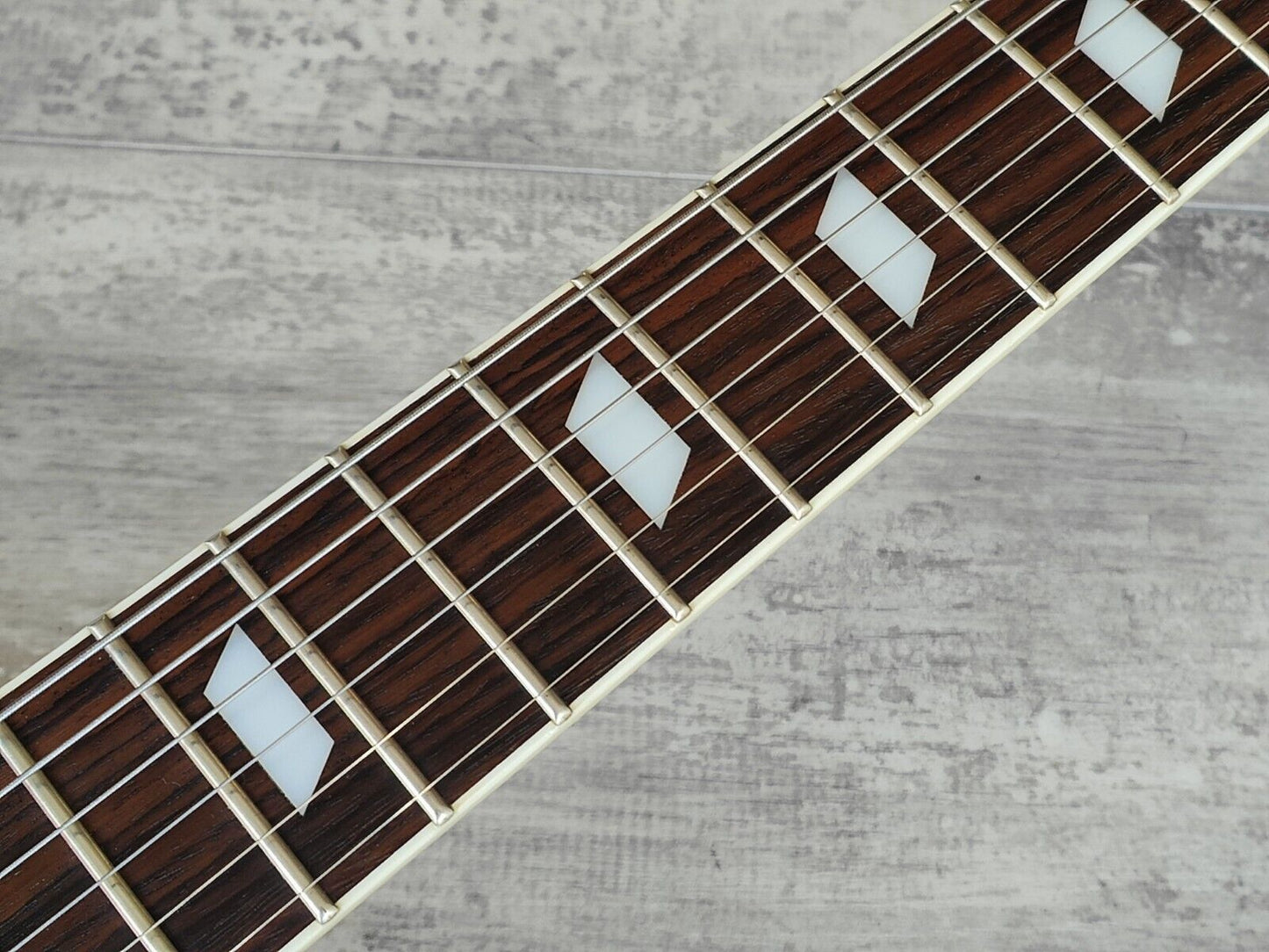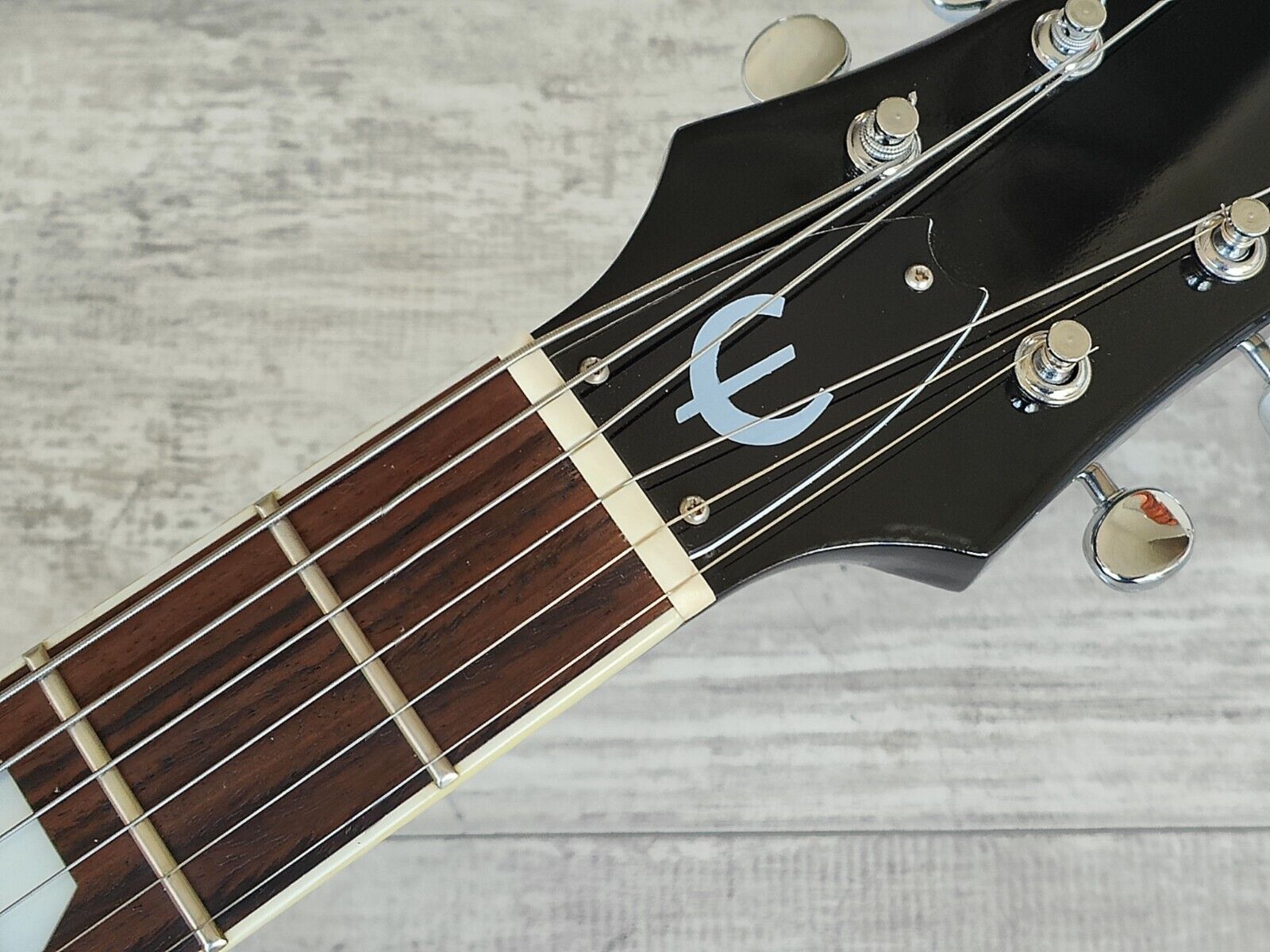 Apparently made famous and beloved by Paul McCartney (not John Lennon) in the 60's, this is one of the desirable Epiphone Casino Reissue's made by the Peerless factory in Korea. Manufactured from 1995 - 2004, they feature a slim taper "D" profile neck, P-90T / P-90R pickups and an elongated headstock with no inlay. The neck joins at the 17th fret which differs from the later 2005 - 2019 run which has a neck joint at the 16th fret.
