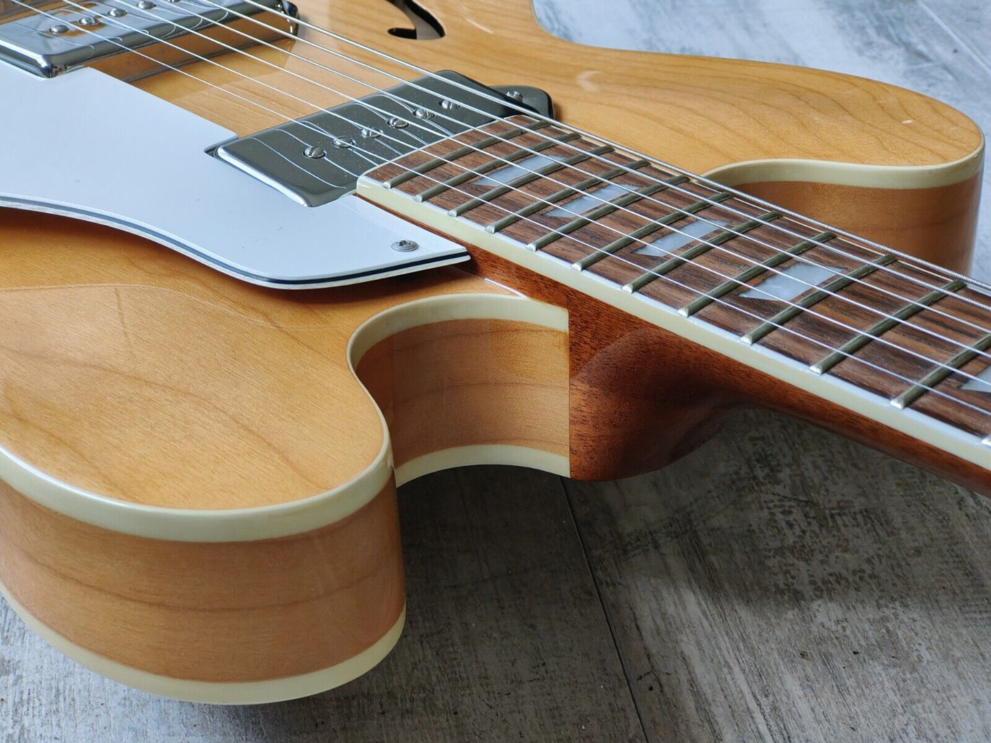 Made famous by Paul McCartney in the 60's, this is one of the desirable Epiphone Casino Reissue's made by the Peerless factory in Korea. Manufactured from 1995 - 2004, they feature a slim taper "D" profile neck, P-90T / P-90R pickups and an elongated headstock with no inlay. The neck joins at the 17th fret which differs from the later 2005 - 2019 run which has a neck joint at the 16th fret.