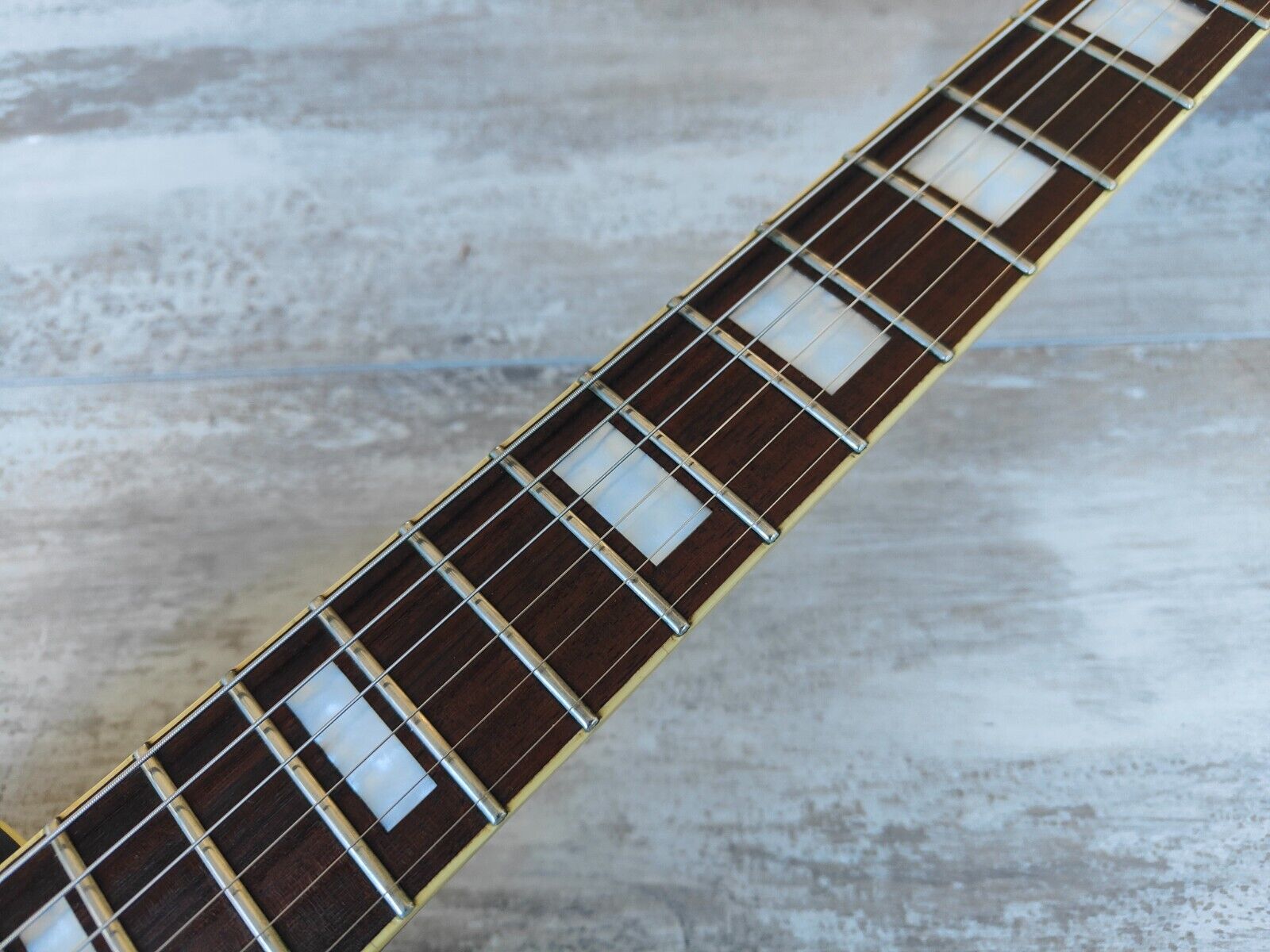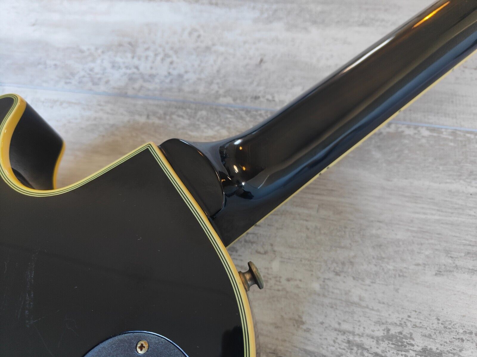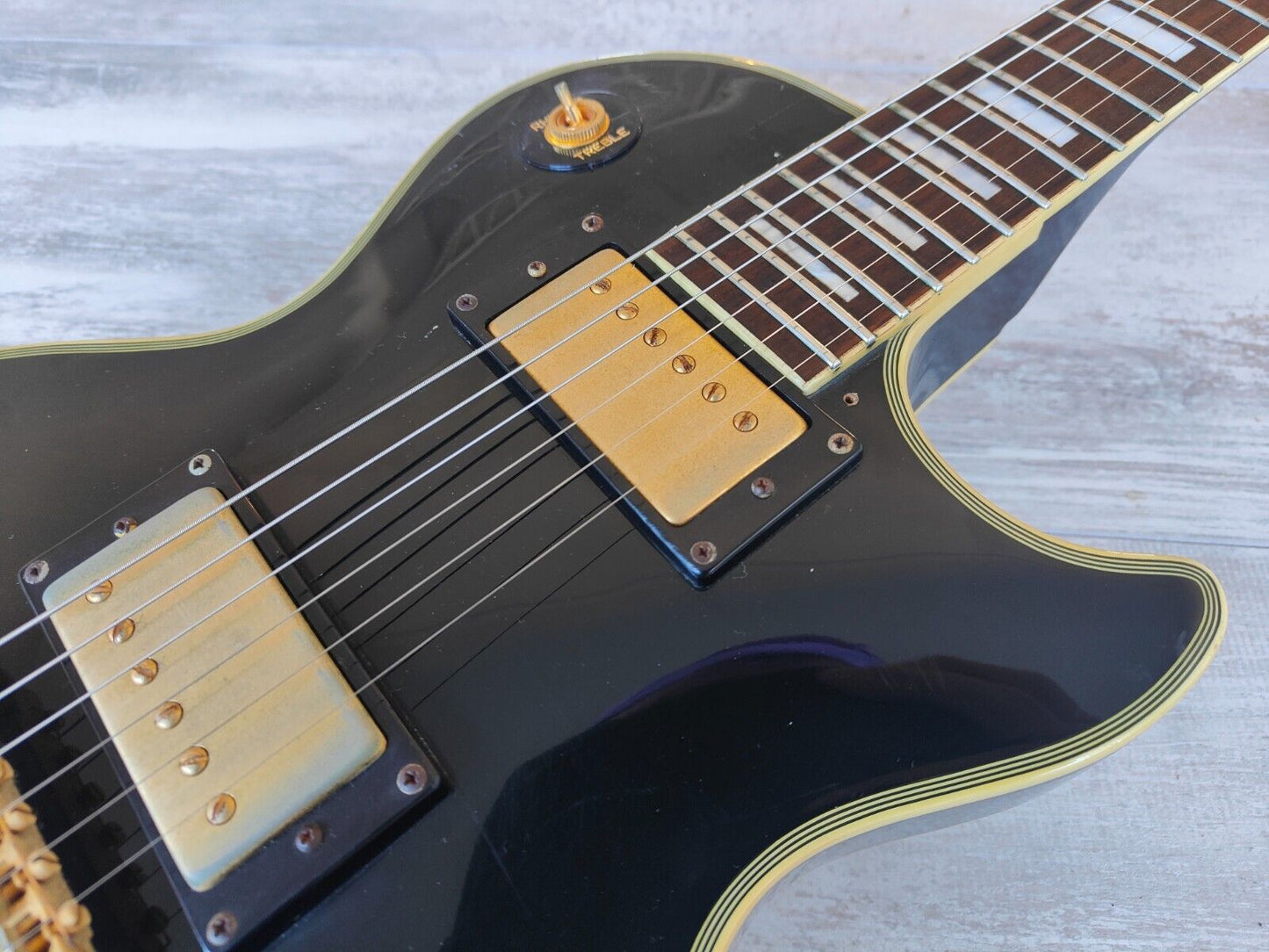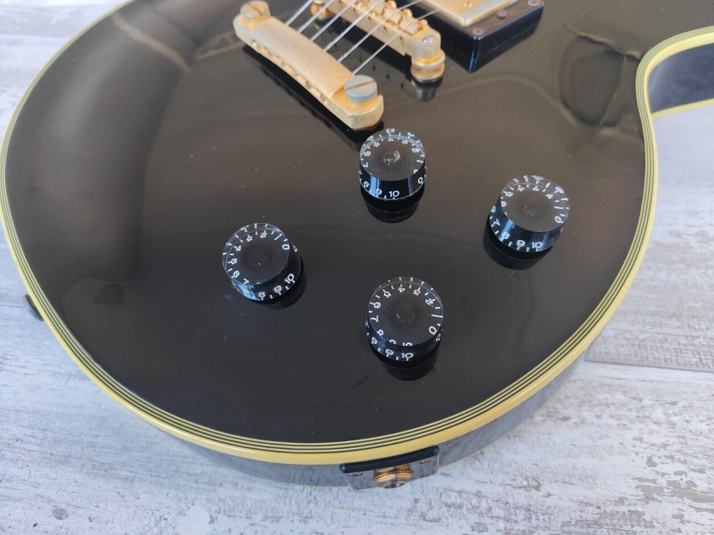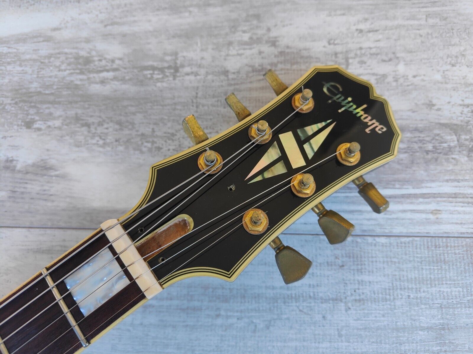 Korean made in 2001 (a very good period for Epiphone quality), this is your classic Les Paul Custom with a mahogany body, slim 60's maple neck and a classic rosewood fingerboard with block inlays, weighs 3.9kg's. Looks to be all original as pictured with aged gold hardware and the original Epiphone pickups.