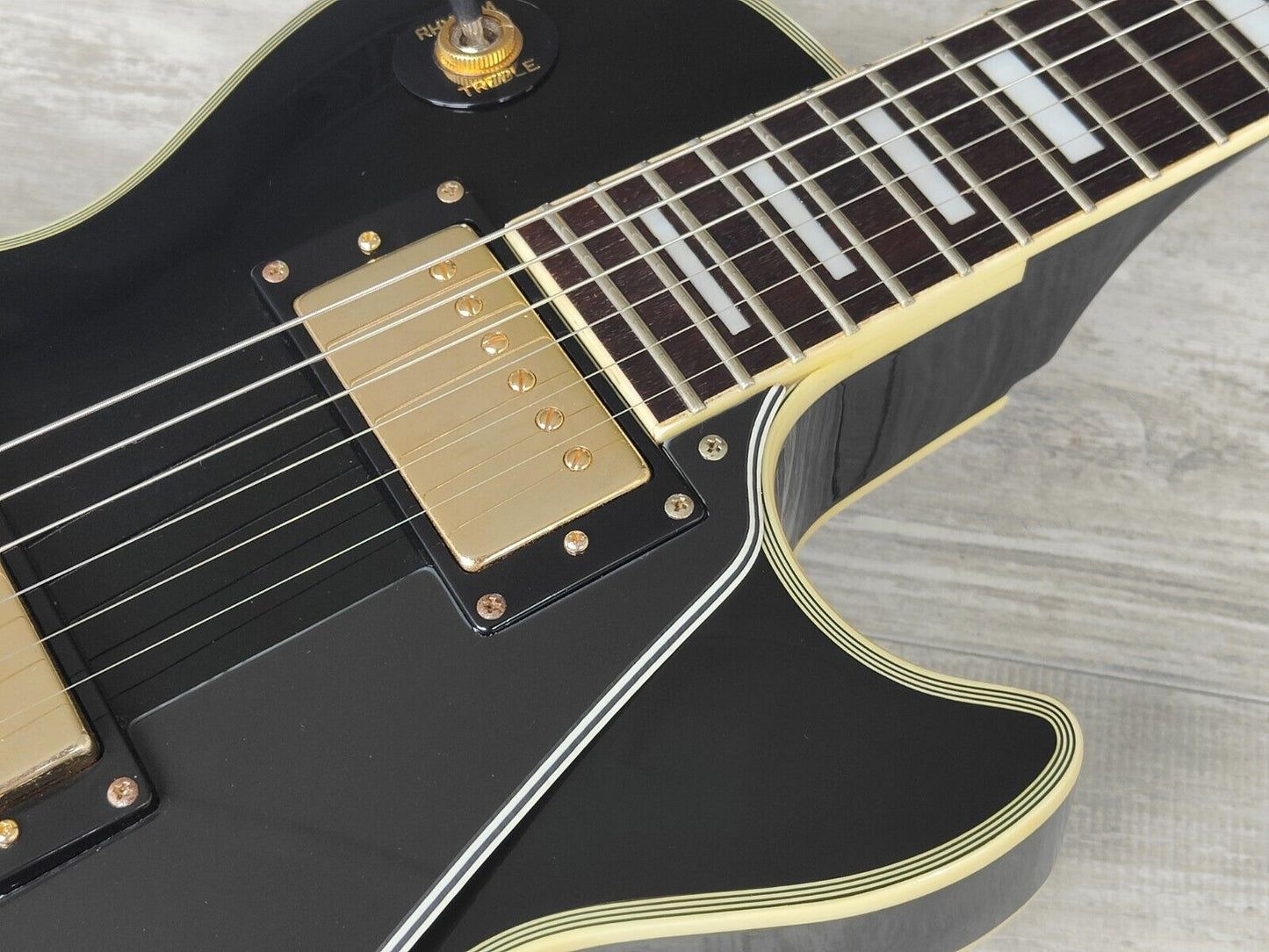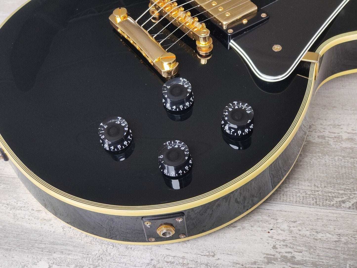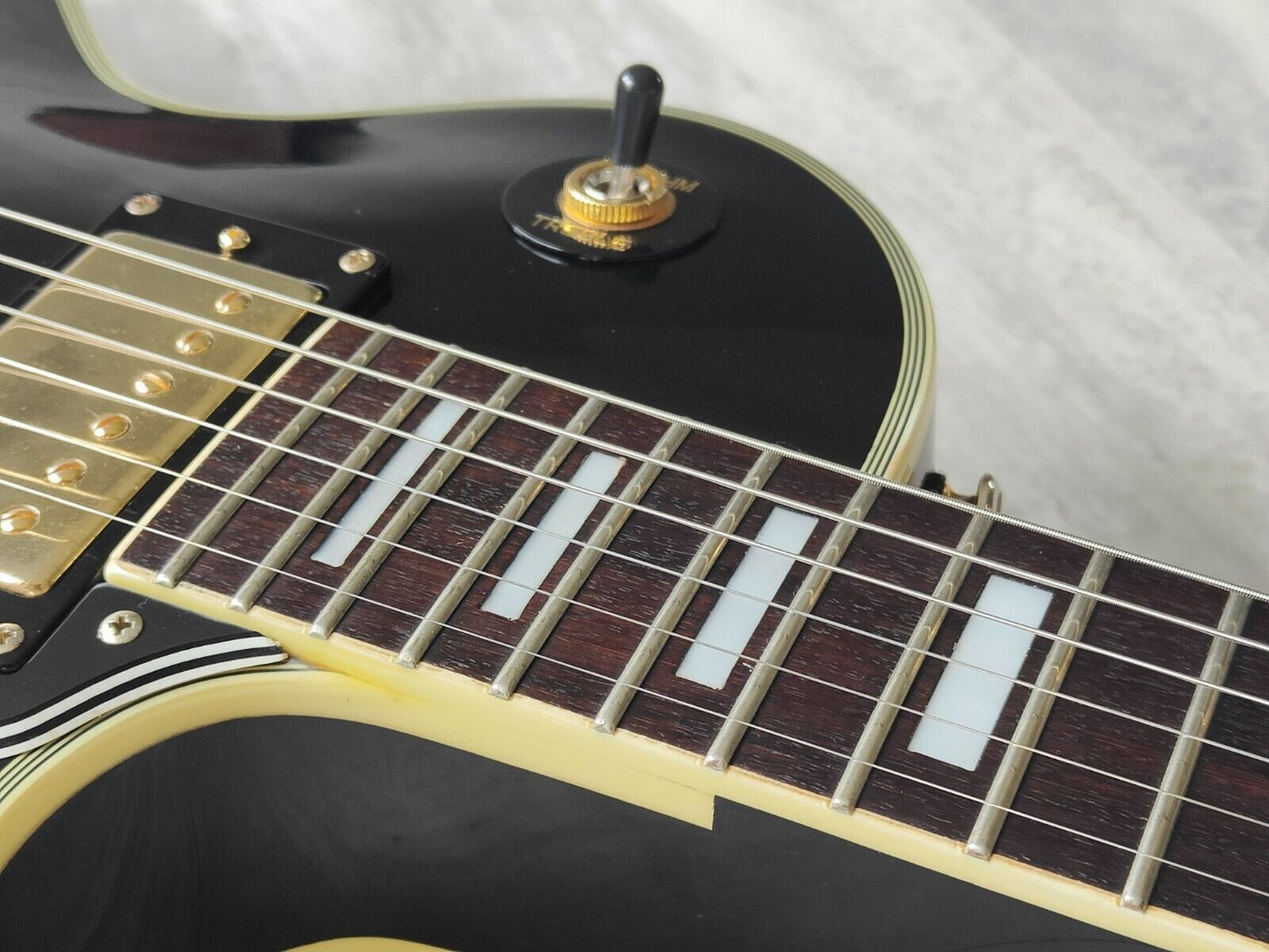 Korean made in 2001 (a very good period for Epiphone quality), this is your classic Les Paul Custom with a mahogany body, slim 60's maple neck and a classic rosewood fingerboard with block inlays, weighs just under 4kg's.