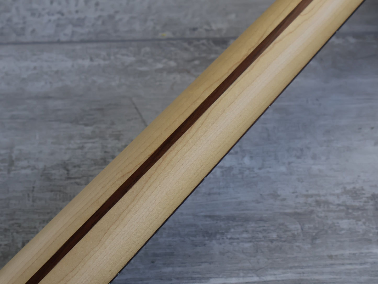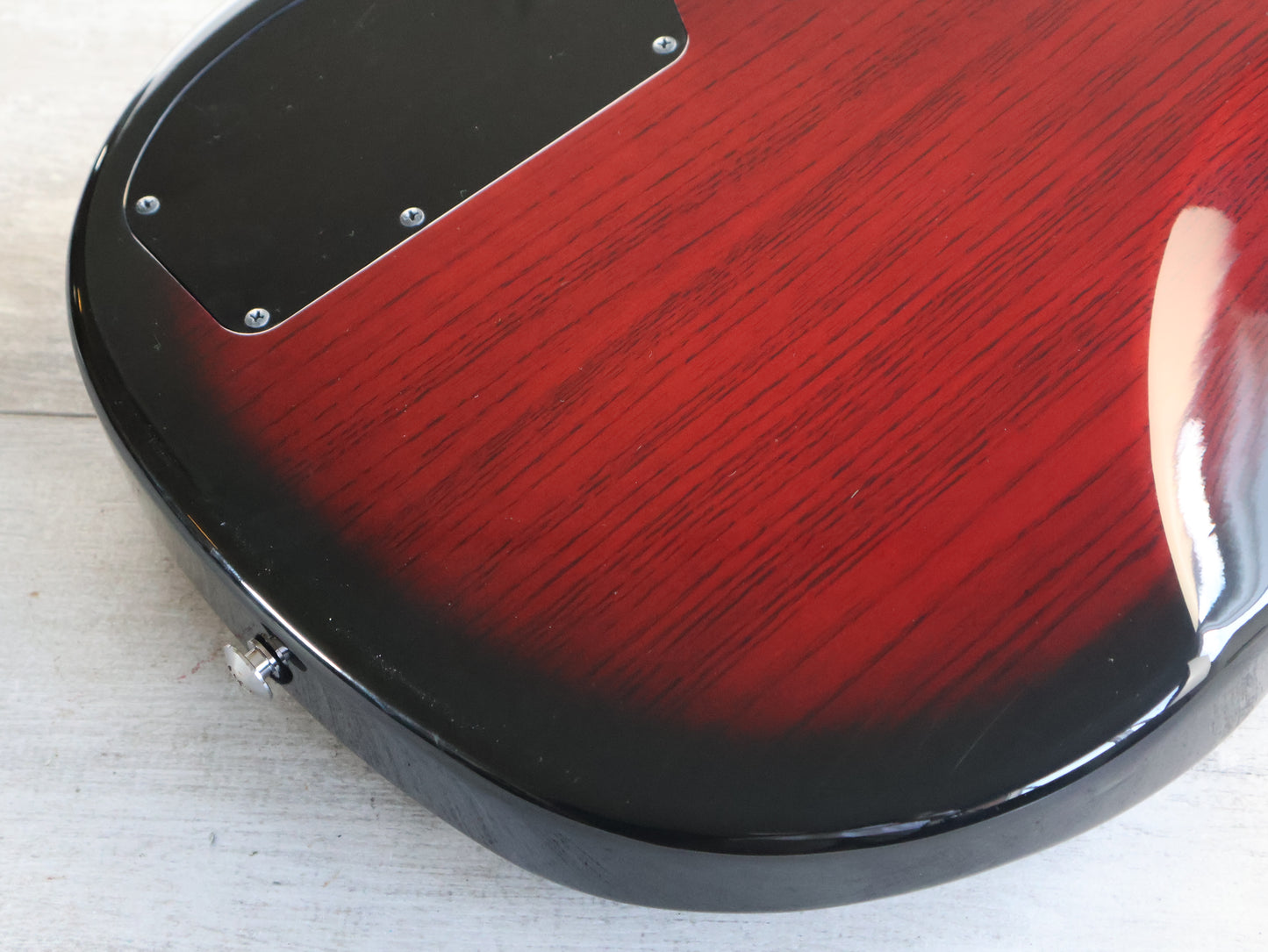 Glossy red/black sunburst finish on a solid ash body, maple neck with a 21 fret rosewood fingerboard (40mm nut width with a 34" scale length), it weighs 4.3kg's.