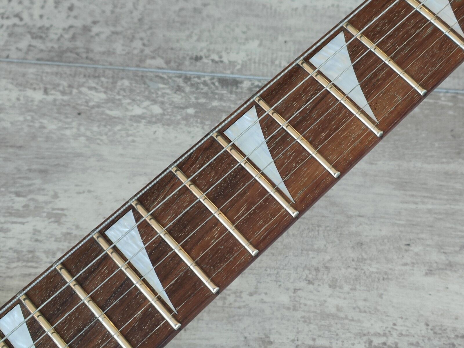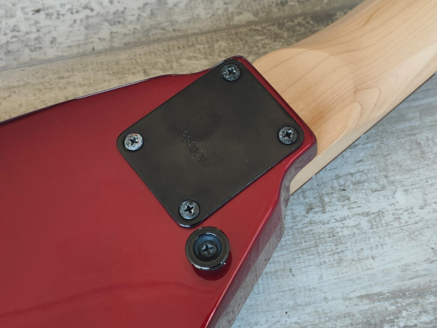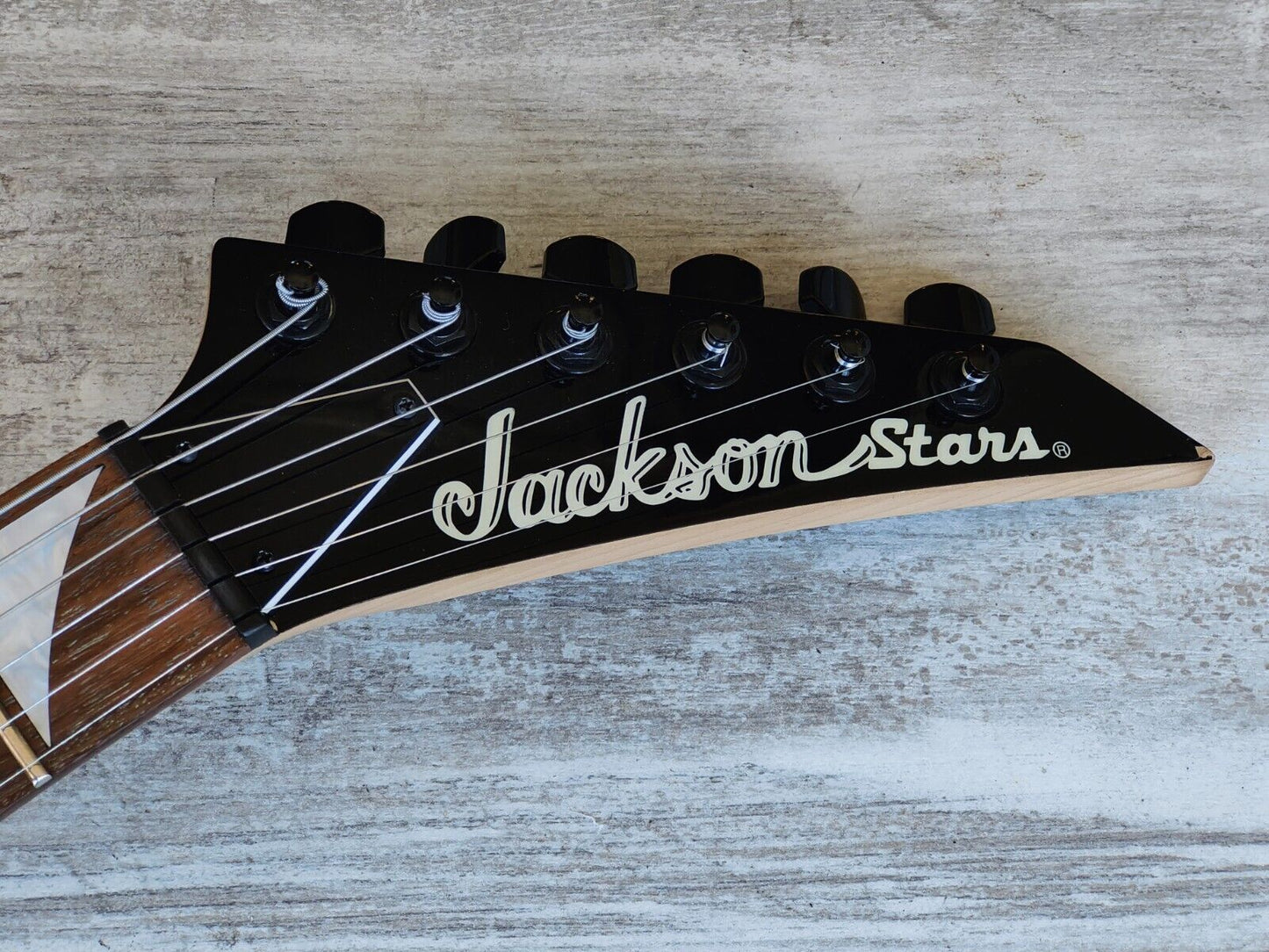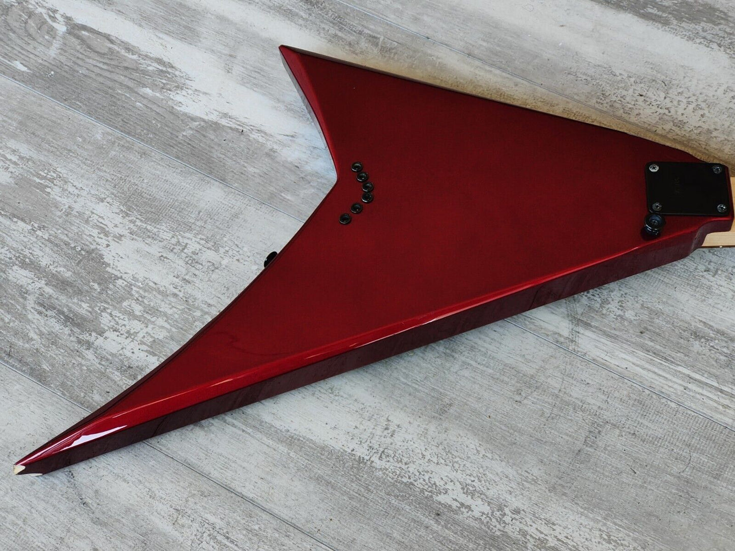 Made in Japan by Jackson in 2001, this is a Japanese market Rhoads model flying V. Poplar body with a gloss CAR finish, maple bolt on neck with a 22 fret unbound rosewood fingerboard (648mm scale length), it weighs just over 3kg's.