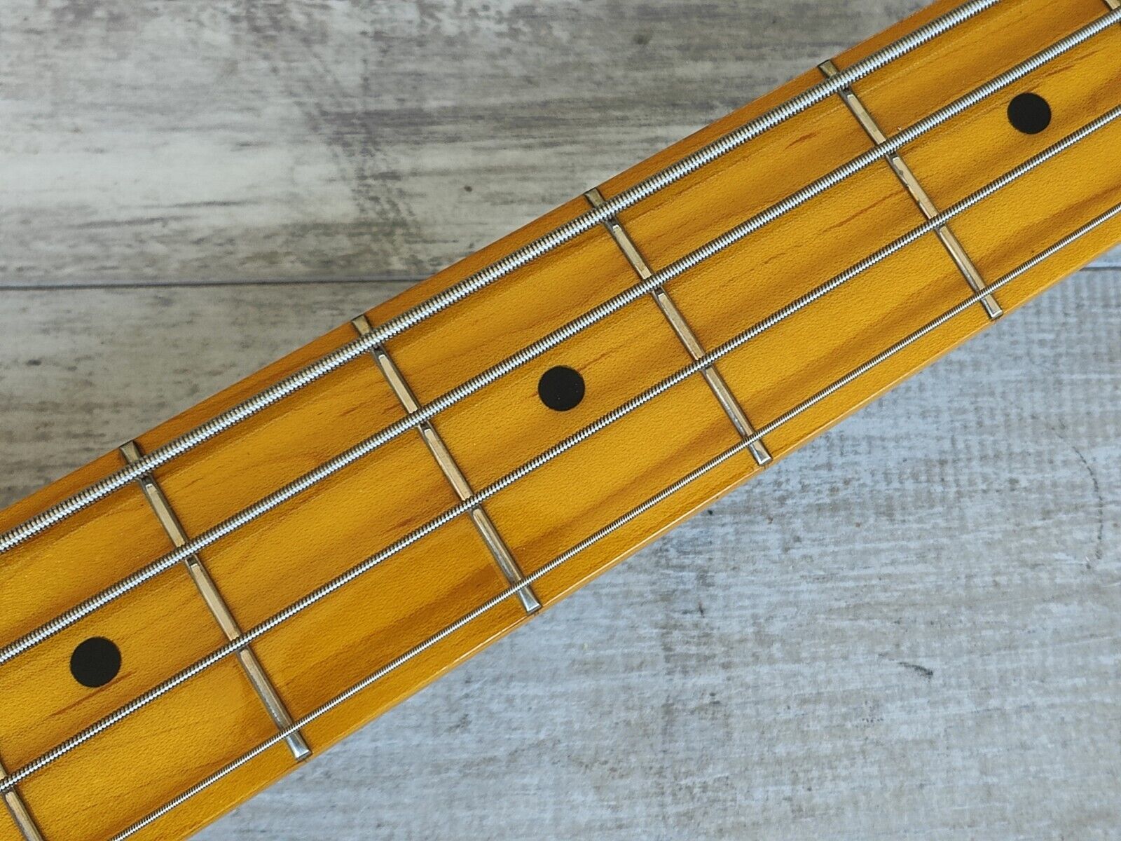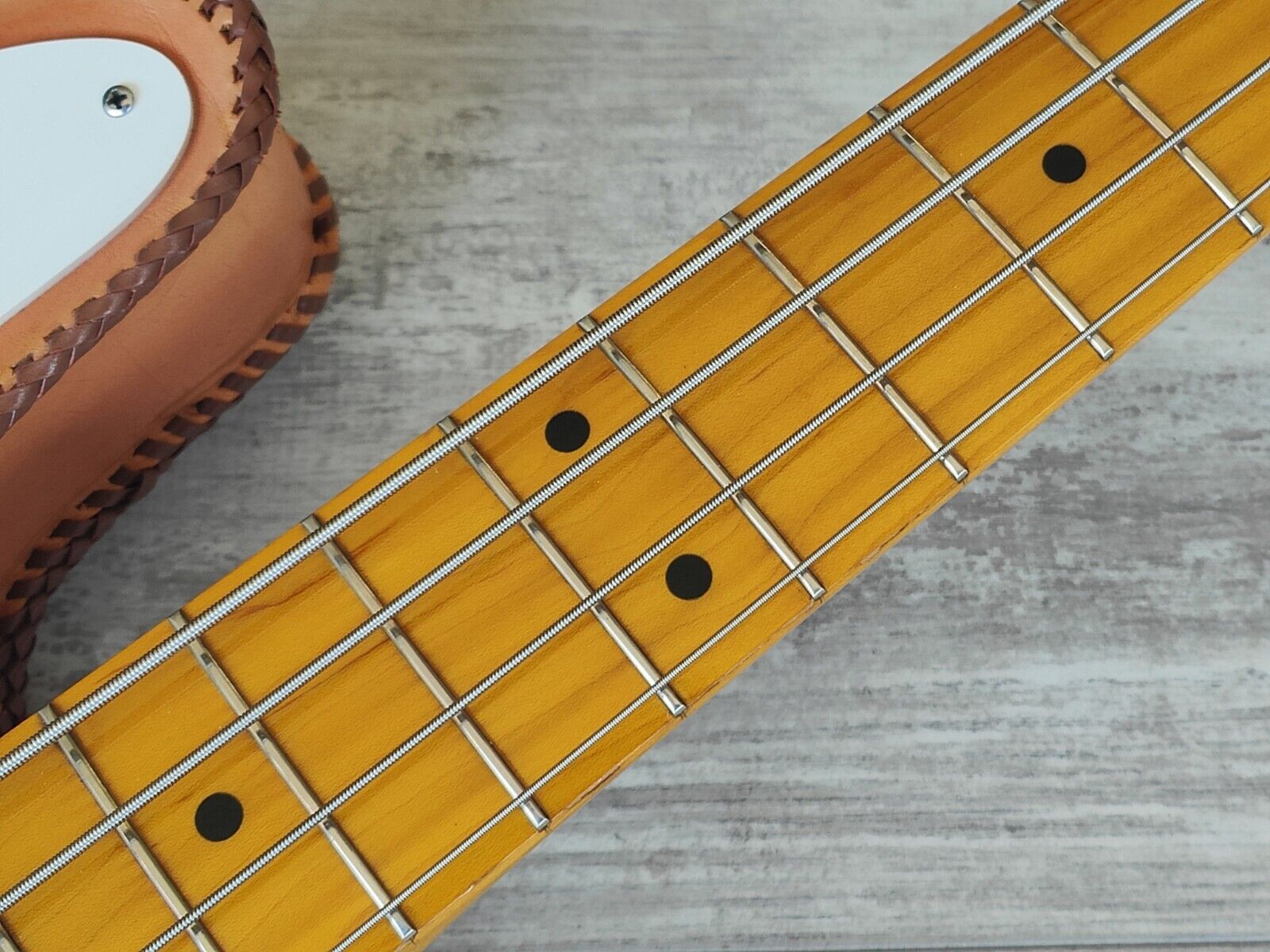 Made by the Tokai factory for Fender Japan in 2002, this OPB51 (often referred to as the Telecaster Bass) is truly one-of-a-kind. Built with an ash body bolted to a one-piece maple neck (34" scale length, 7.25" radius), it weighs 4.8kg's.