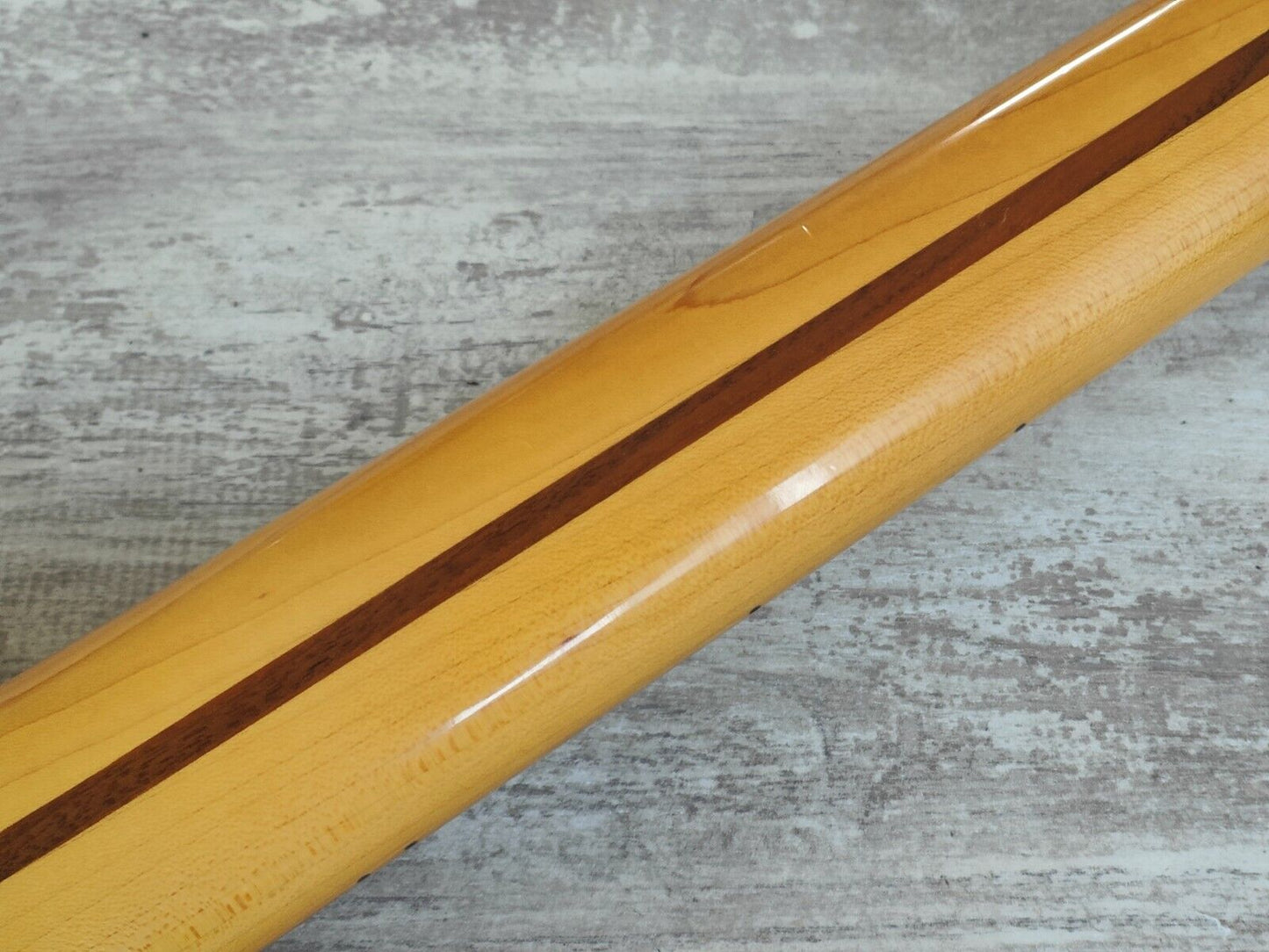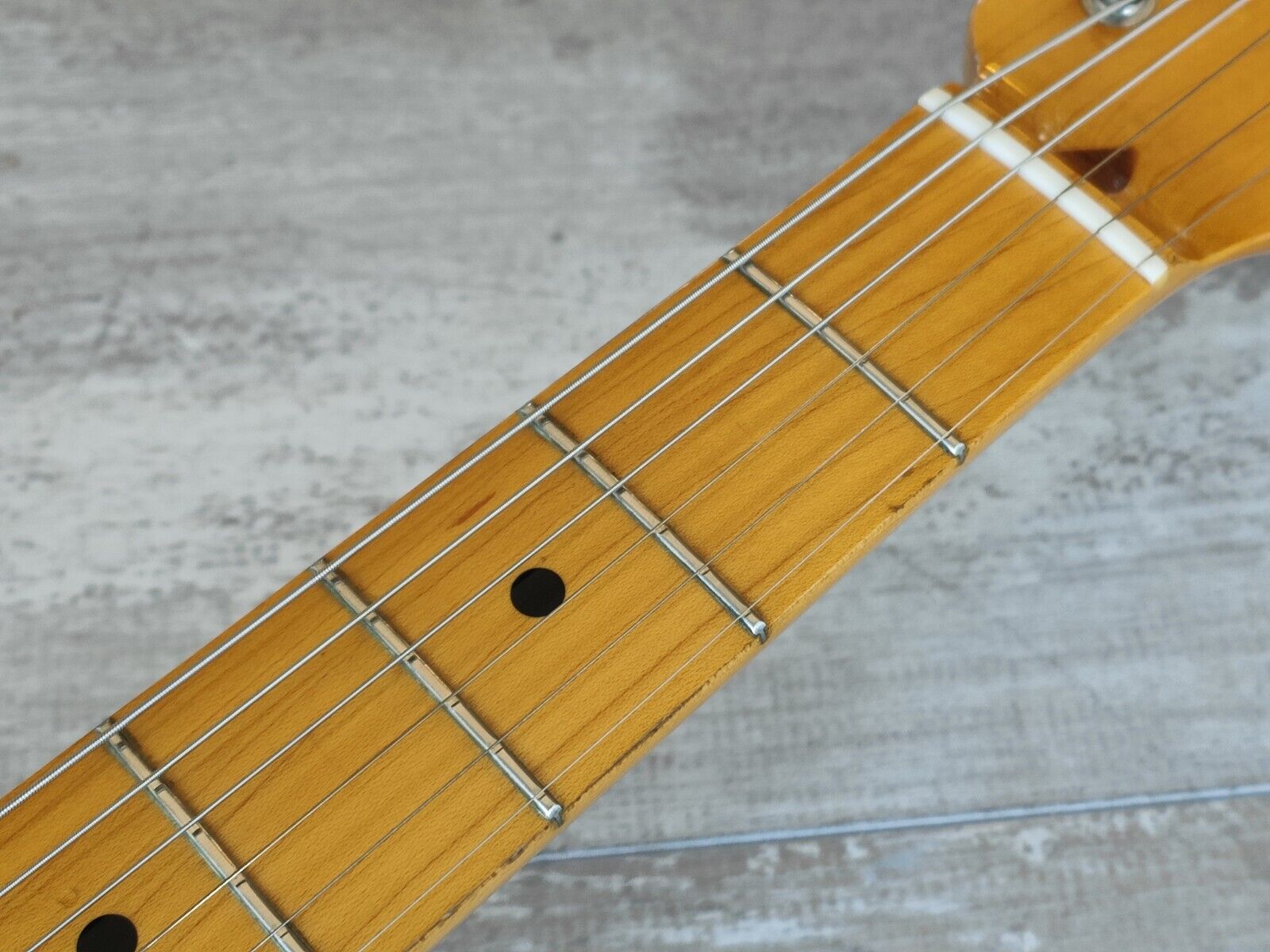 Basswood body with a maple neck shaped with the classic '57 slim C neck profile (7.25" radius, 43mm nut, 648mm scale length), it weighs 3.6kg's. The original pickups have been replaced with a Seymour Duncan Alnico II Pro in the neck position and a Duncan SSL-5 Custom Staggered single coil in the bridge position with what looks to be the original Fender USA Texas Special in the middle position. It's wired with a master volume and tone control with the second tone control converted to a blend knob that adds the neck pickup into whatever the 5-way toggle is to give you plenty of addition tones that wouldn't usually be available in standard Stratocaster wiring.