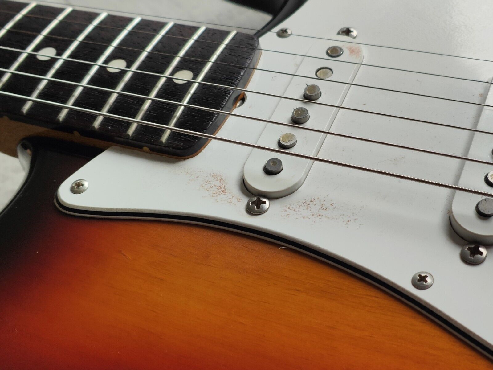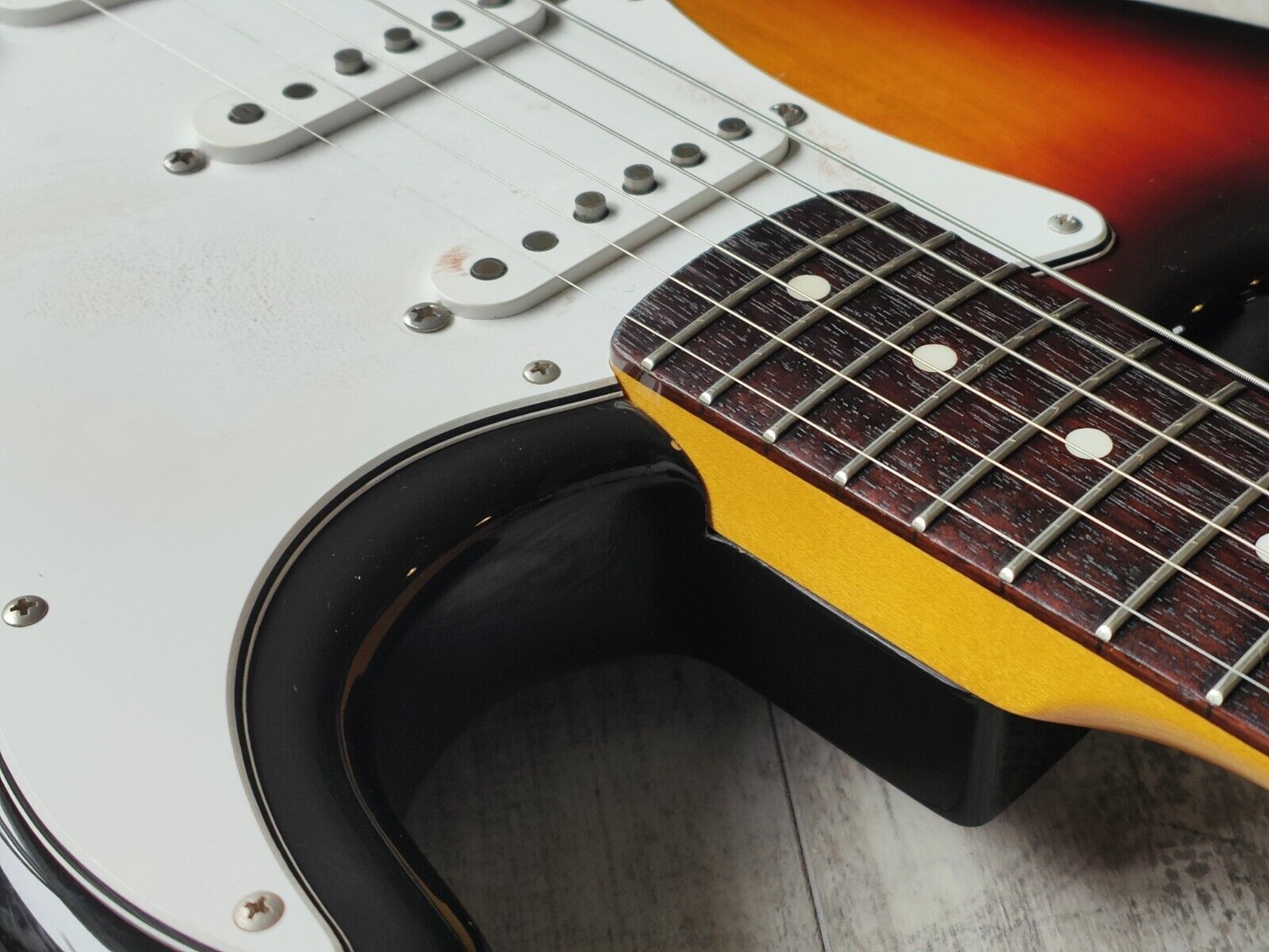 Reasonably good used condition with signs of wear as pictured, frets have some pitting and wear but were polished and play smoothly with no issues, the truss was adjusted prior to listing along with a restring and fretboard oil. Pickguard and the body has some markings/wear near the neck pickup as pictured from some hefty upstrokes.