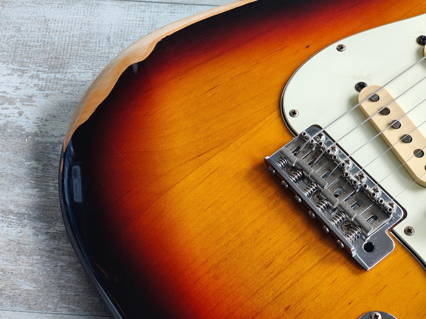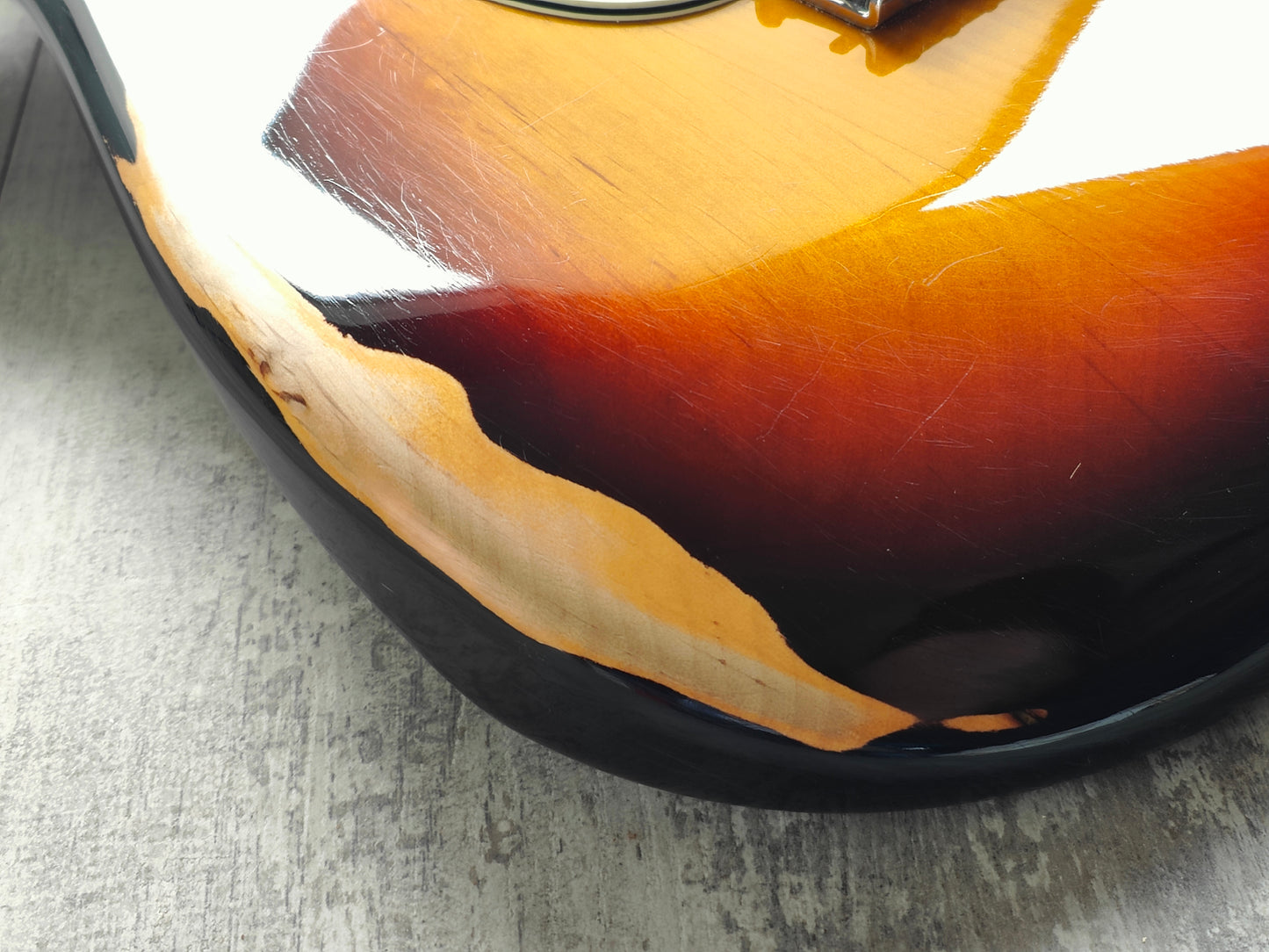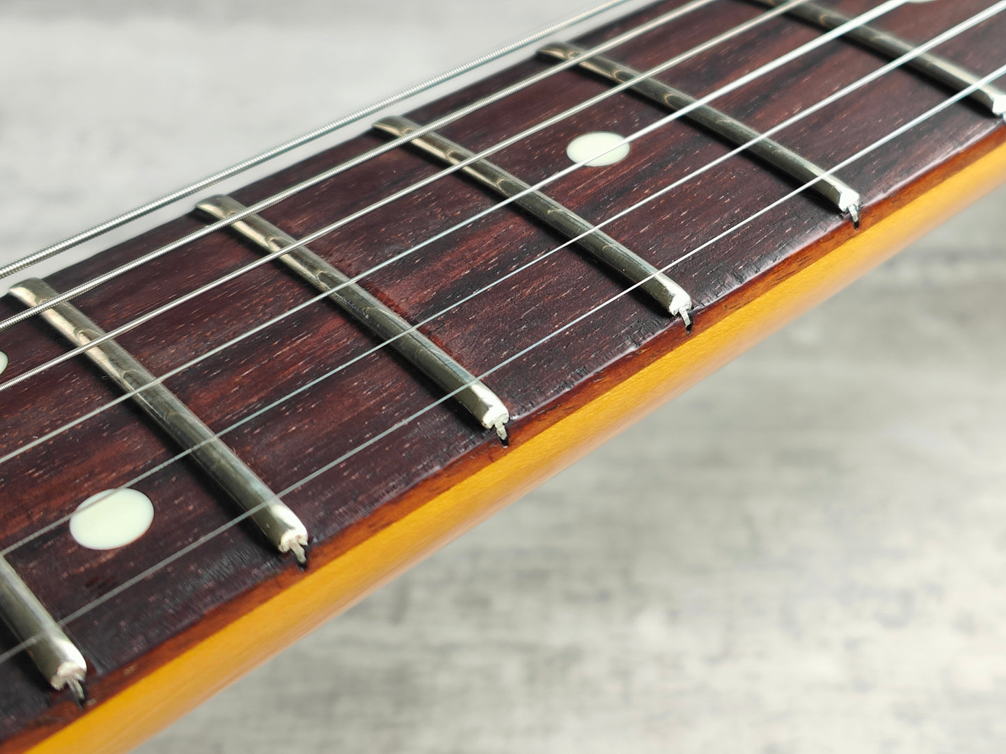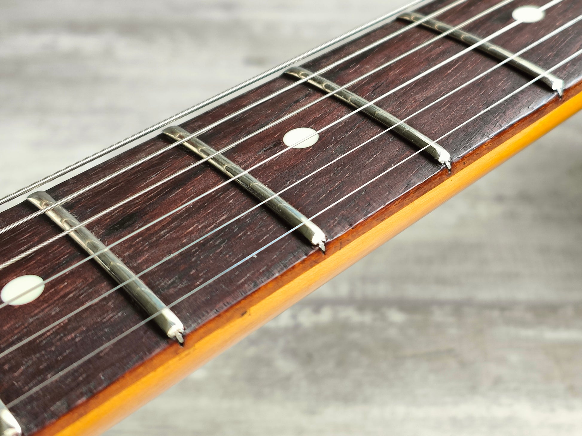 Well loved cosmetic condition as pictured with some relic on the body. This one was recently re-fretted with medium-jumbo style frets that have seen little to know use and are in perfect condition.