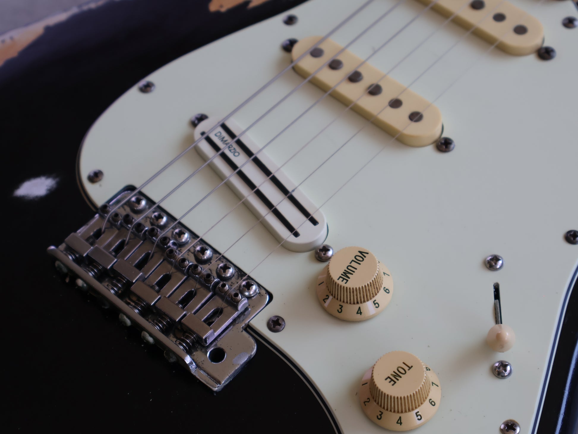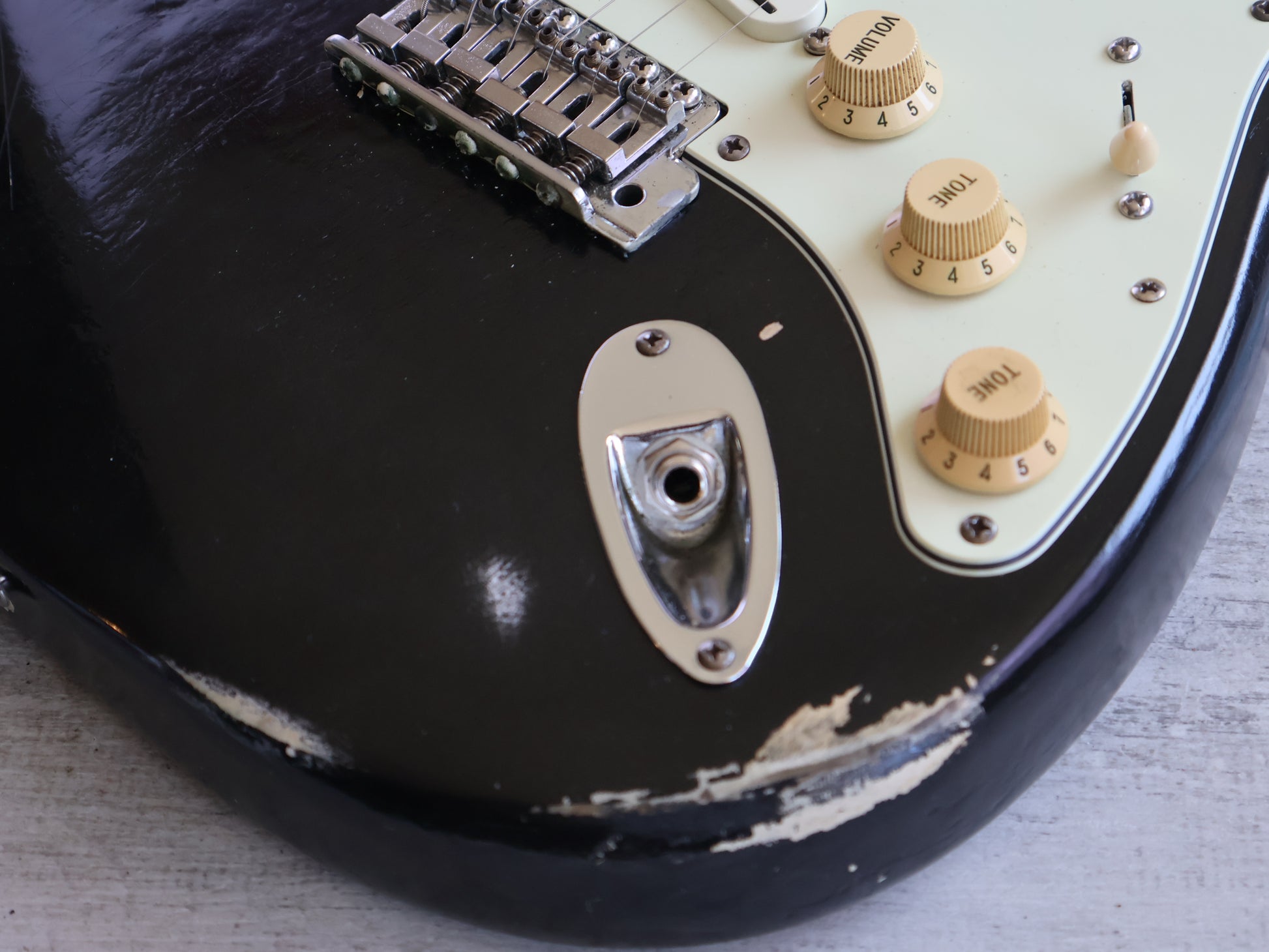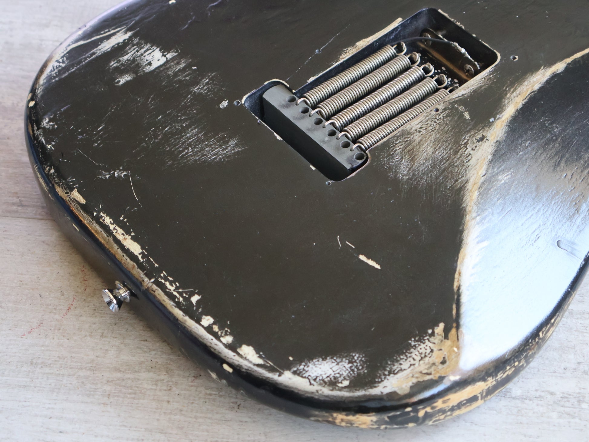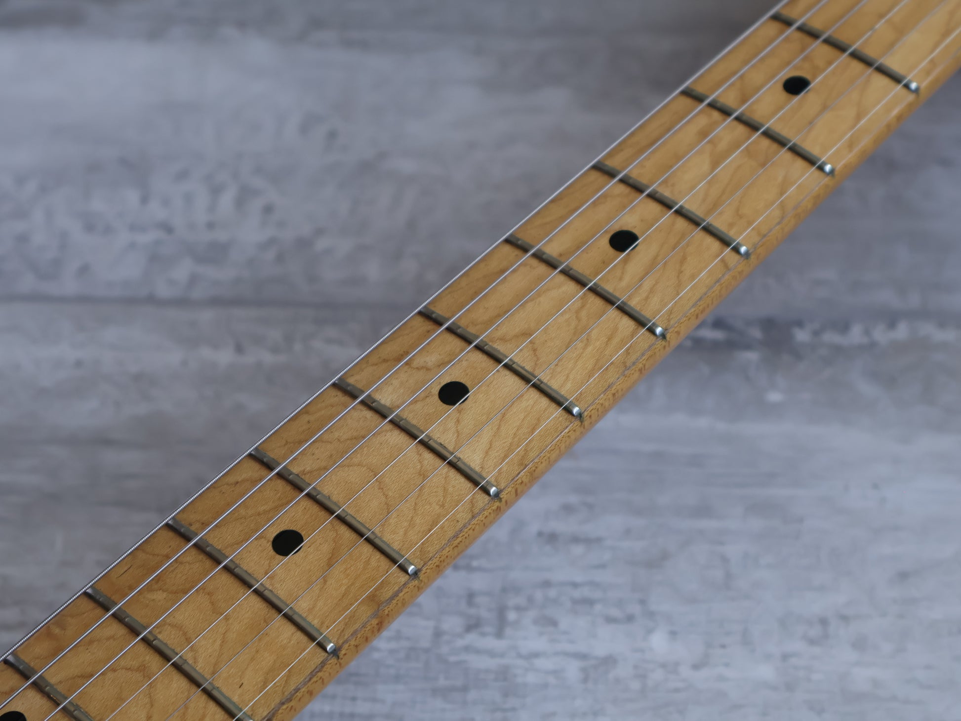 Heavy relic'd condition as pictured, done intentionally by a previous owner and there's no structural breaks or repairs. The neck is straight and the frets are shiny and smooth with plenty of life left.