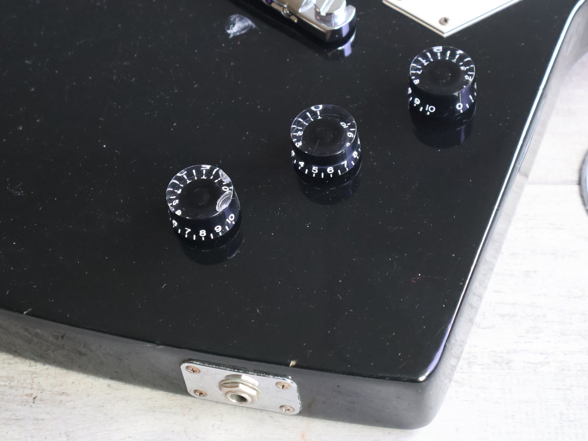 Good overall condition with some cosmetic bumps and bruises but no breaks or repairs. The neck is straight and the frets are shiny and smooth with plenty of life left.