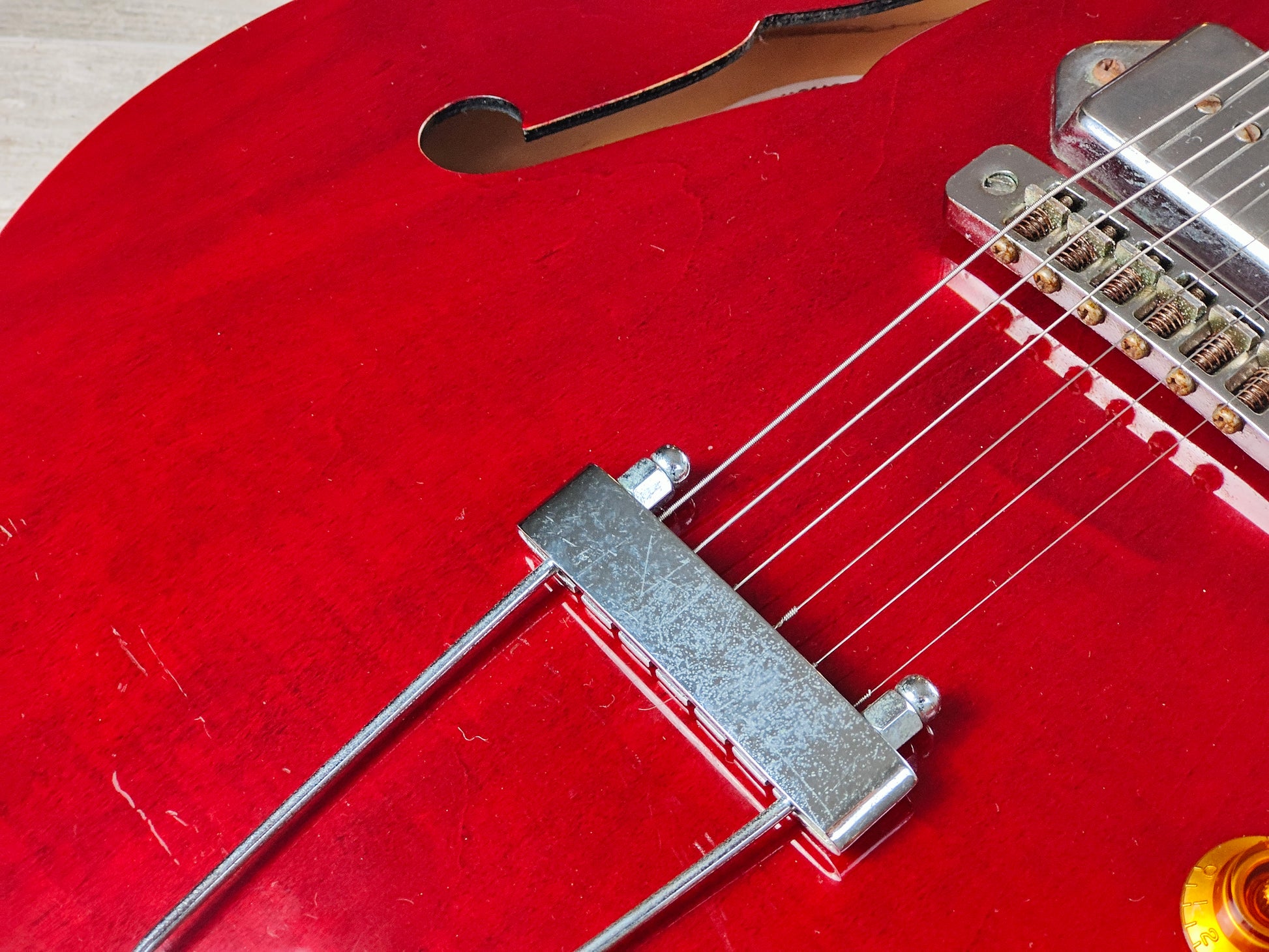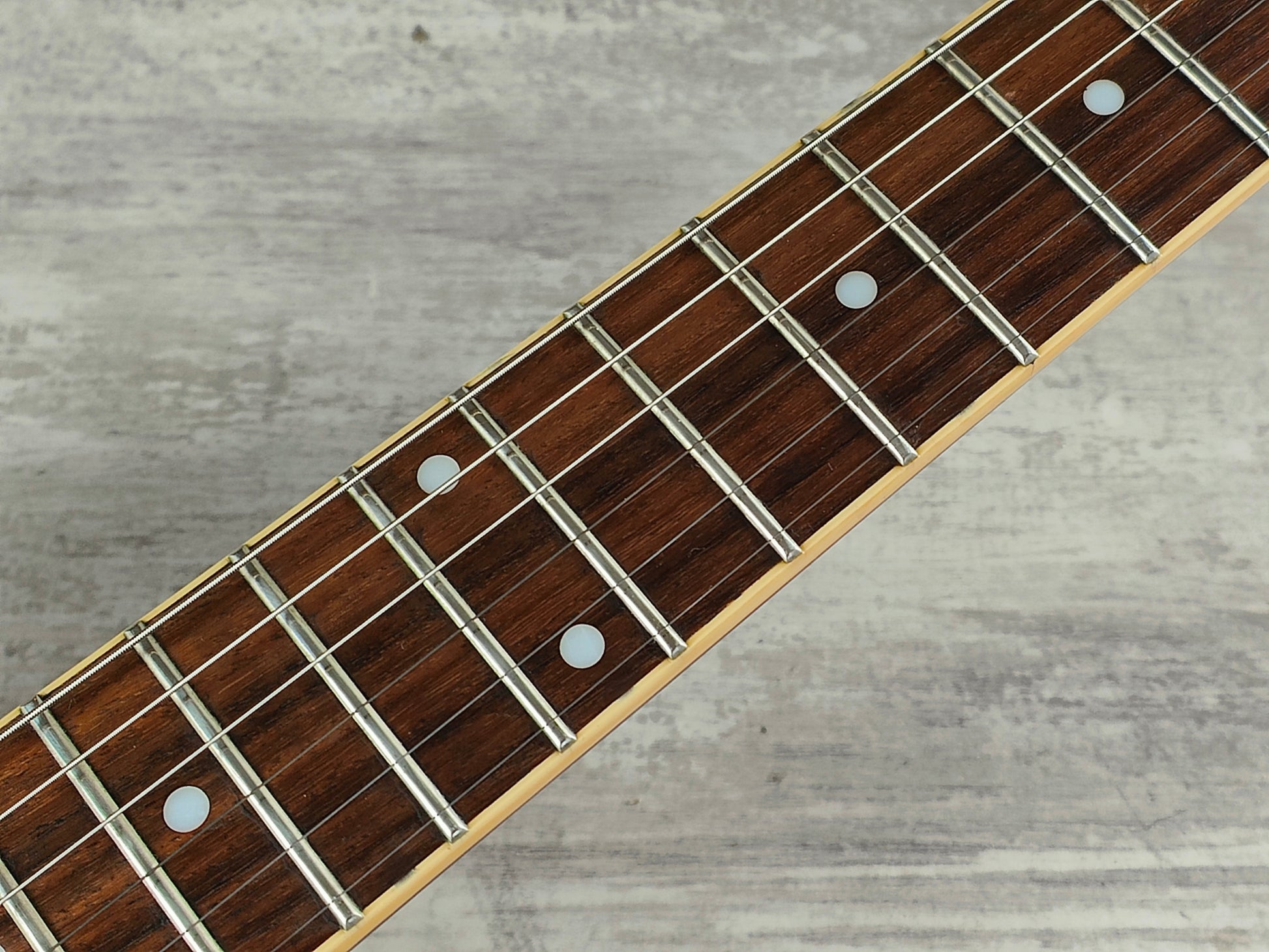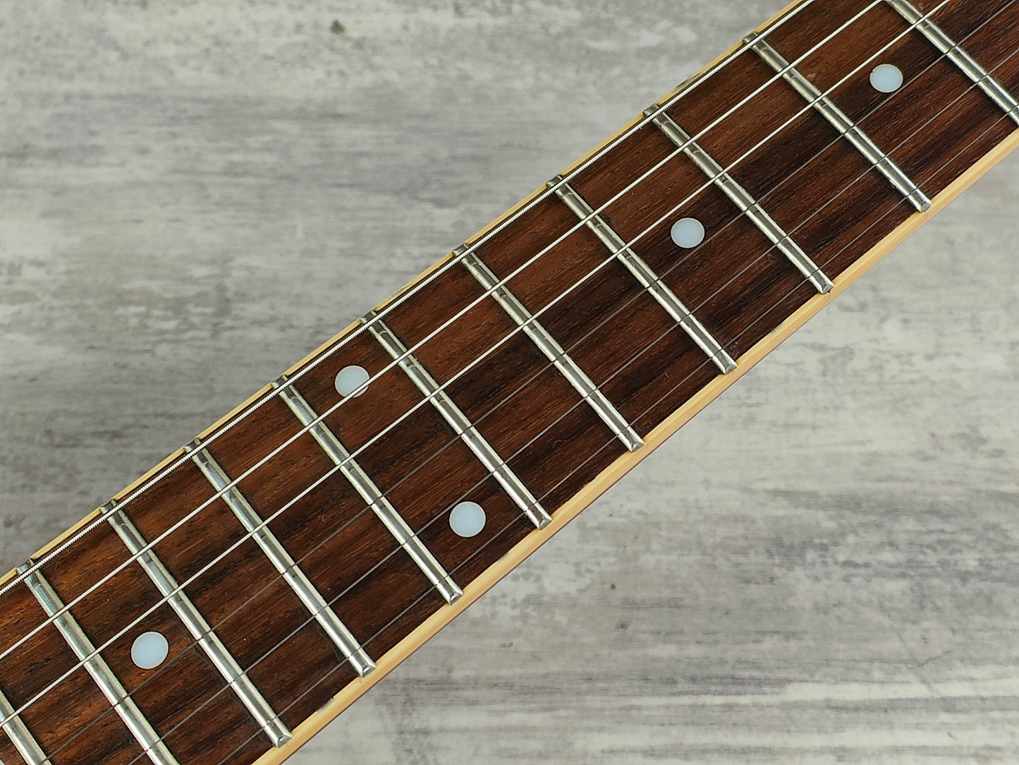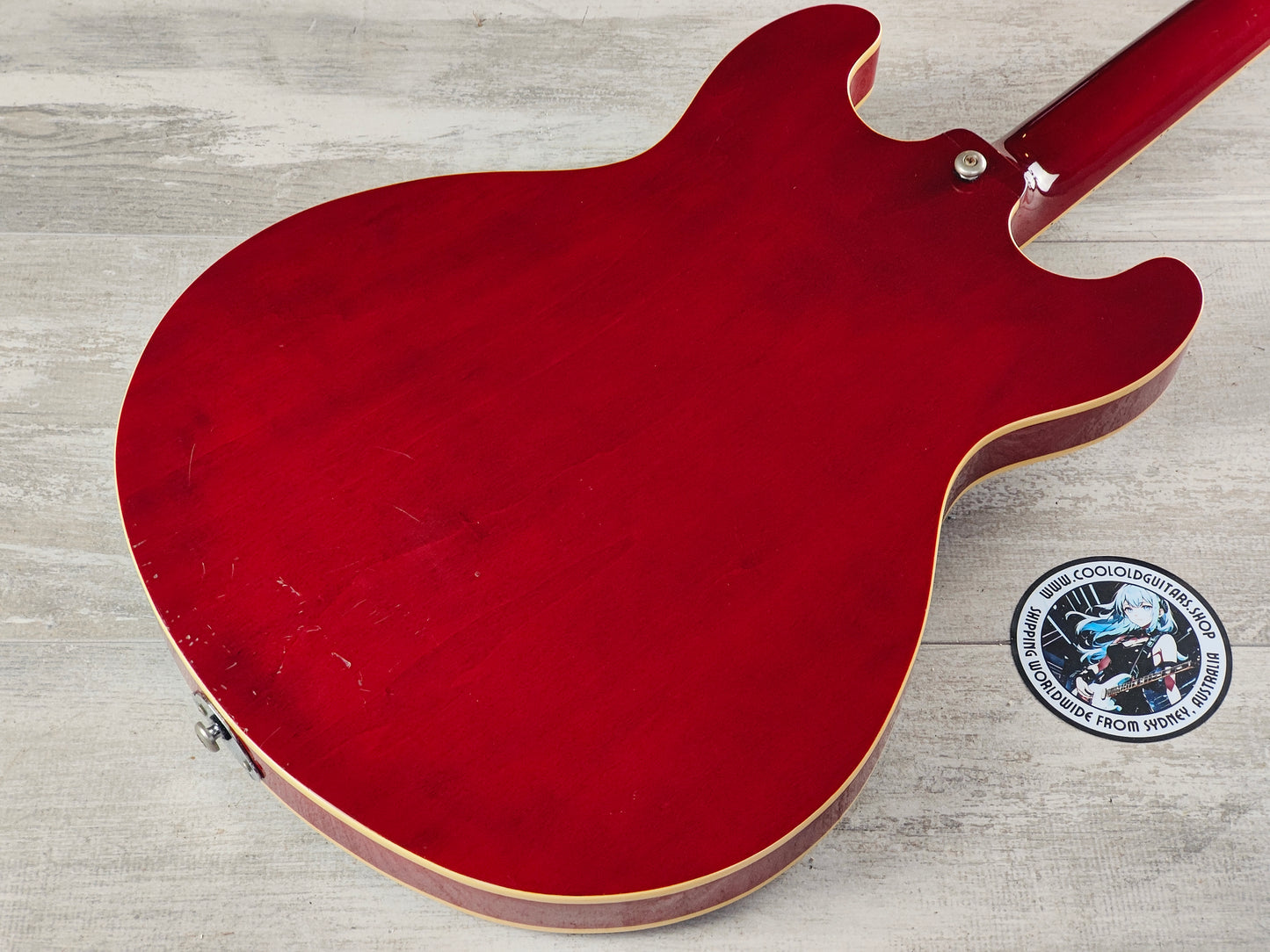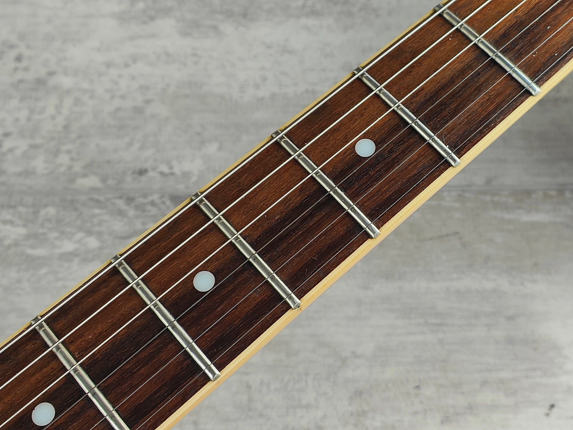 Mahogany body with a solid maple centre-block, set maple neck with a 22 fret rosewood fingerboard (43mm nut width), it weighs 3.6kg's. Seemingly all original as pictured with Grover tuners, a harmonica style bridge and a pair of chrome dog-ear P90's.