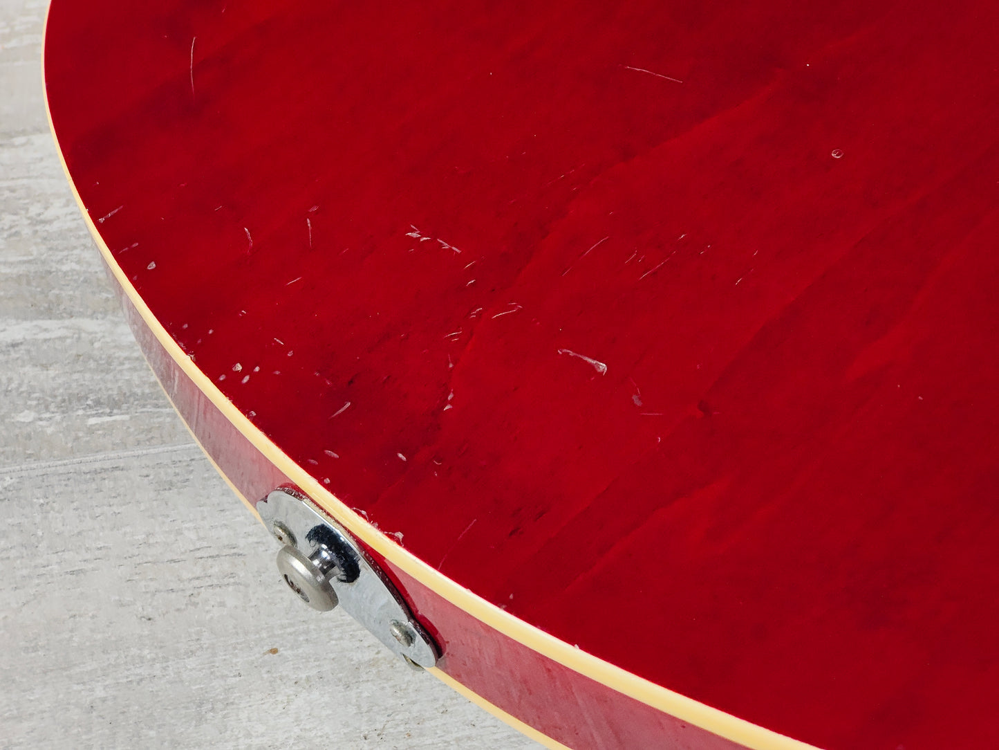 Good used condition as pictured and received a full professional setup and service prior to listing including a truss adjustment, fretboard oil, fret polish and restring. The frets have some light wear but still play smoothly and the neck is straight. There's a small repair on the top around the output jack that was done close to 10 years ago and still holds solid with no movement.
