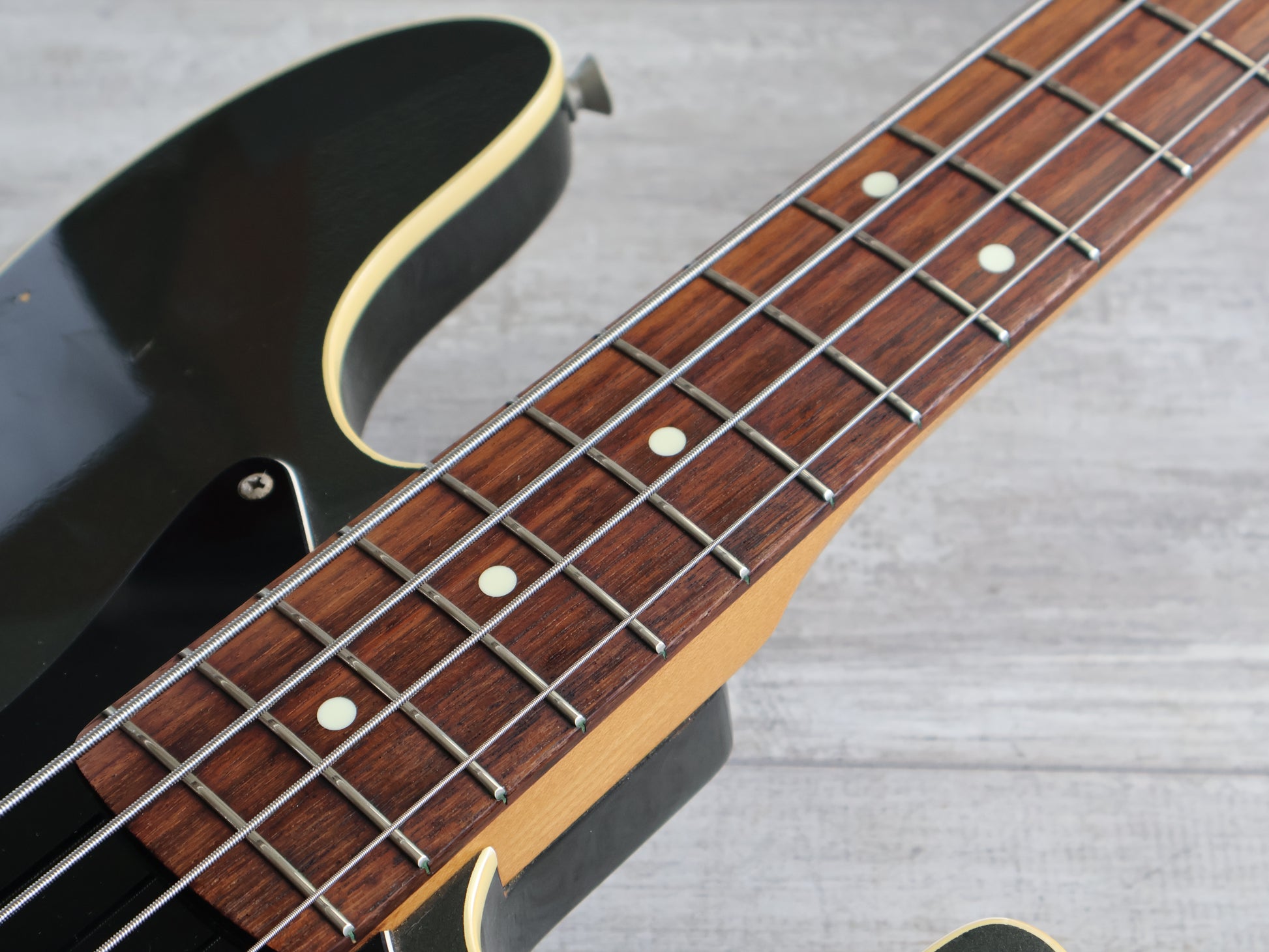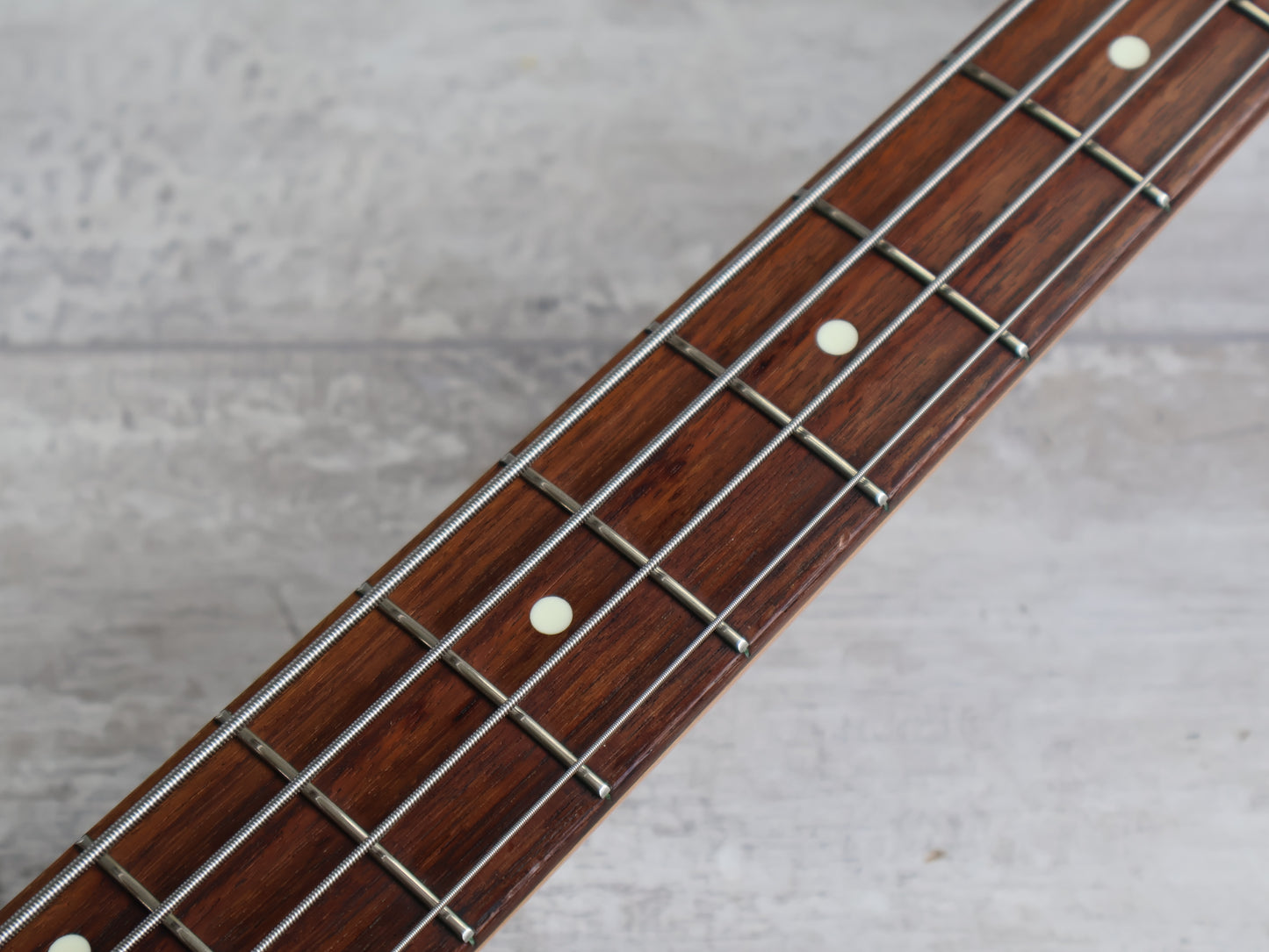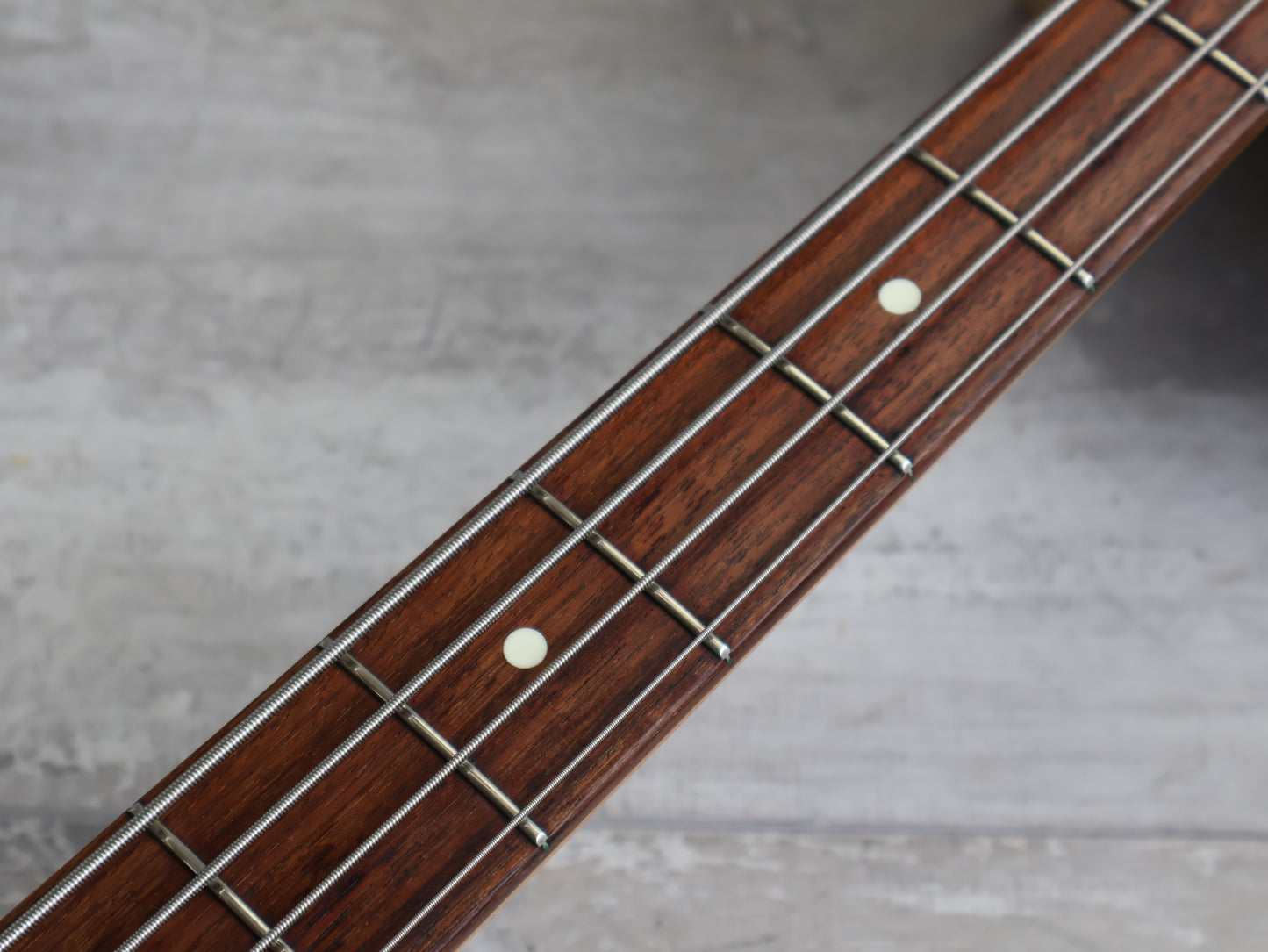 Made by Fender Japan in the early 2000's, the AJB-65 was an early iteration of the Aerodyne Jazz Bass. Carved, bound top with a basswood body, painted maple neck with a matching headstock, 20 fret rosewood fingerboard (7.25" radius, 38mm nut width), it weighs just over 4kg's.