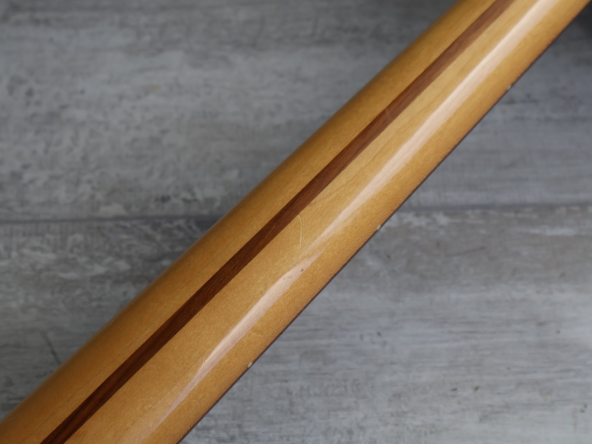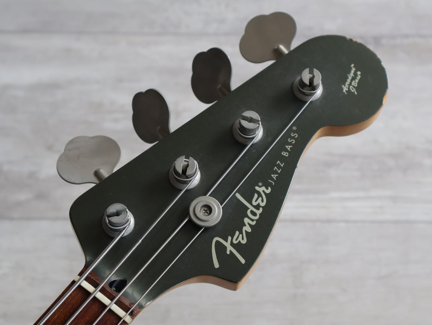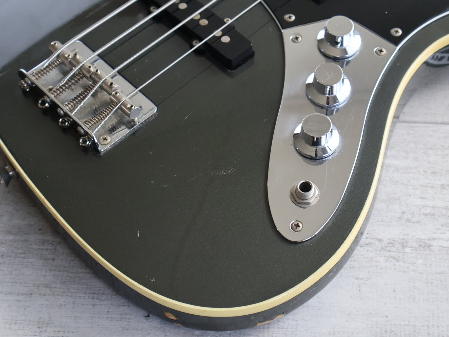 Made by Fender Japan in the early 2000's, the AJB-65 was an early iteration of the Aerodyne Jazz Bass. Carved, bound top with a basswood body, painted maple neck with a matching headstock, 20 fret rosewood fingerboard (7.25" radius, 38mm nut width), it weighs just over 4kg's.