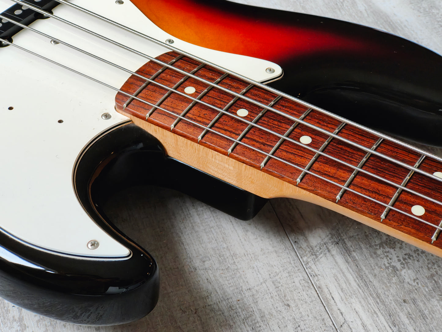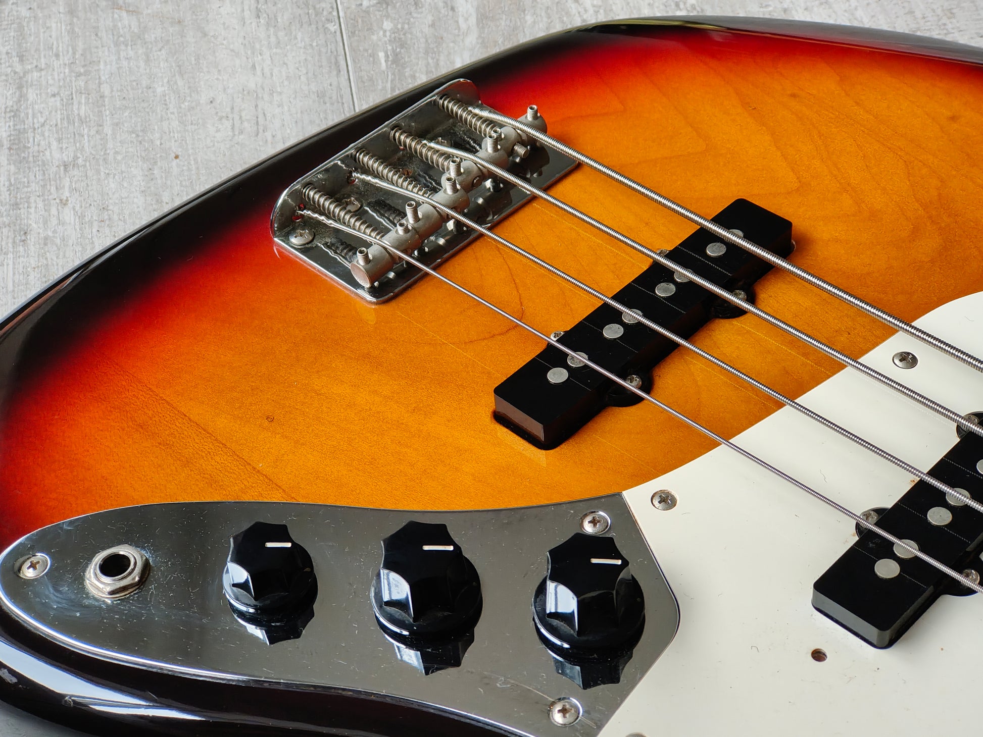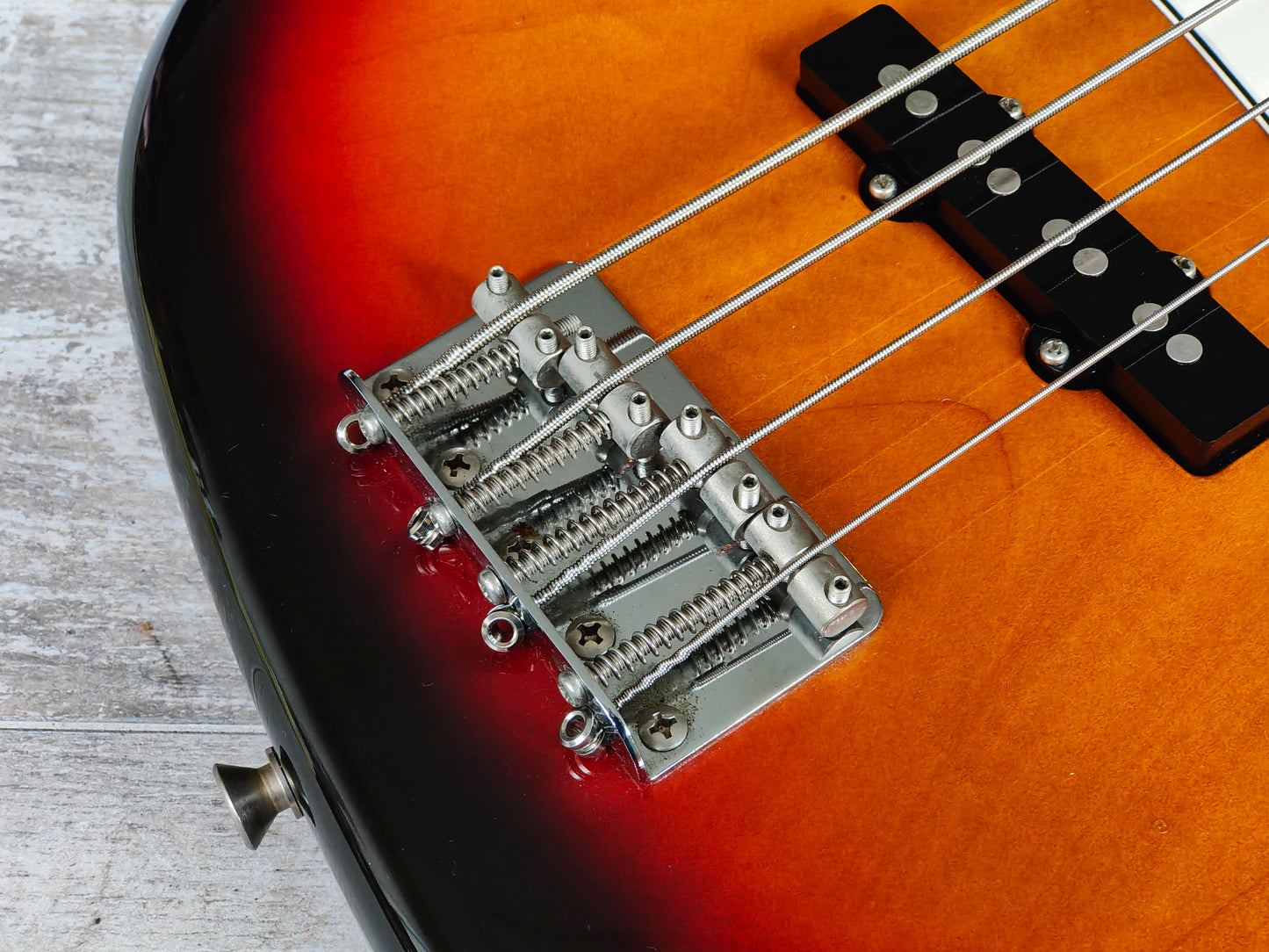 Made in Japan in 2004, this is the Japanese version of the American Standard Jazz Bass. Sunburst finish on a basswood body with a maple neck and rosewood fingerboard (39mm nut width), it weighs 4.3kg’s.