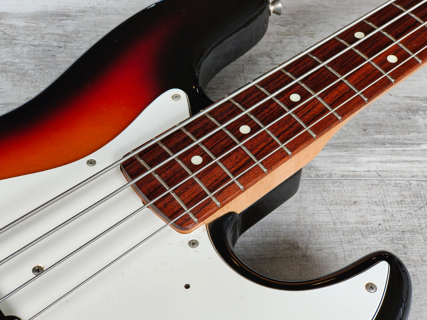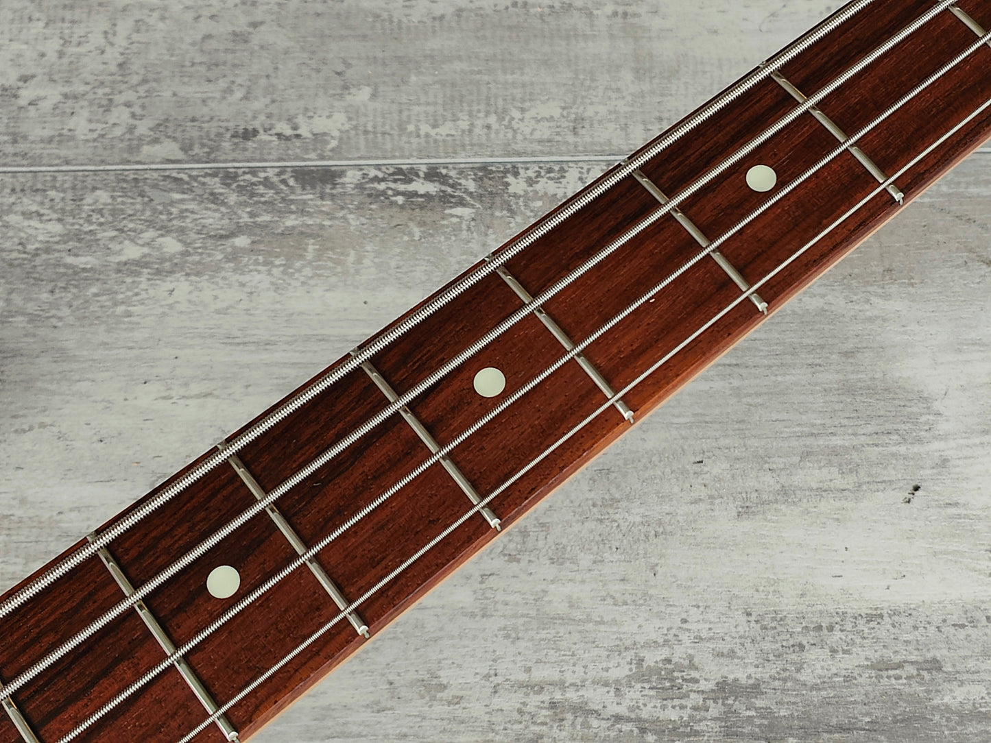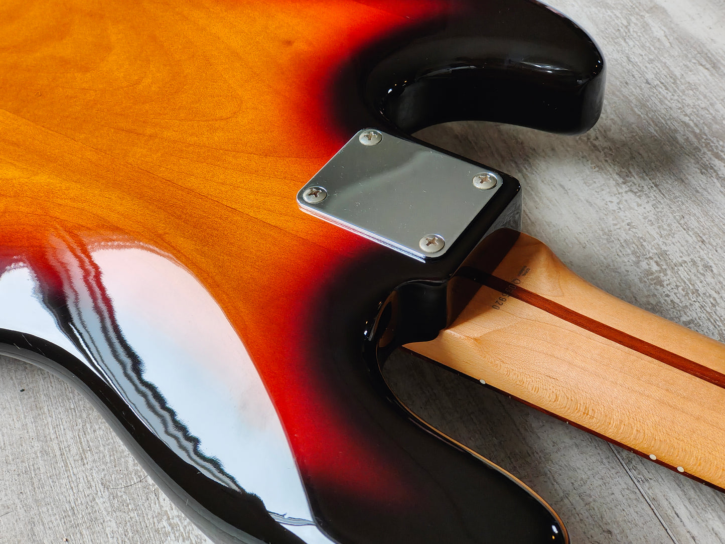Made in Japan in 2004, this is the Japanese version of the American Standard Jazz Bass. Sunburst finish on a basswood body with a maple neck and rosewood fingerboard (39mm nut width), it weighs 4.3kg’s.