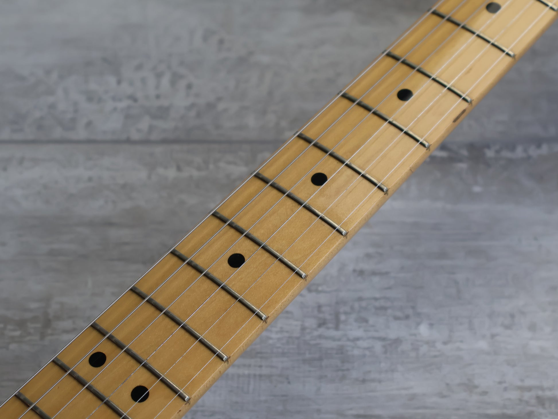Made by the Tokai factory for Fender Japan in 2004, these are a '72 CBS style reissue Stratocaster with factory upgrade US pickups. Basswood body with a maple neck (7.25" radius, 21 frets, oval profile), it weighs 3.3kg's. Factory ST-VINTAGE pickups from Fender USA along with the original Gotoh tuners and a diecast block tremolo system are all working as they should.