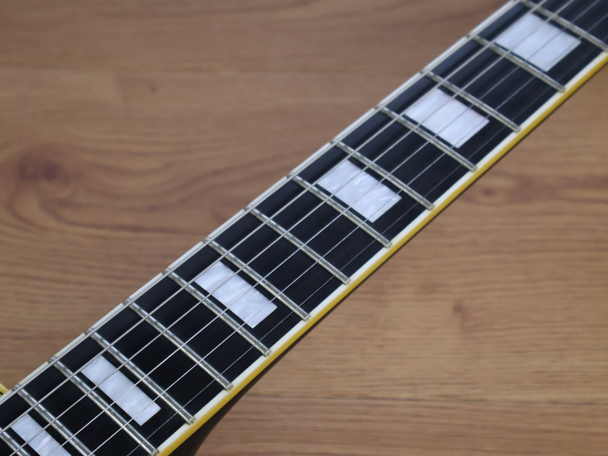 Made in Japan by Edwards in 2005, the E-LP-113LTC is a super classy Les Paul Custom from the modern era of Japanese guitars. The one features the famous "Lacquer Taste" finish that incorporates nitro overcoat on a poly base for a nice satin smooth look and feel. Mahogany body with a carved hard maple flame top, slim 60's mahogany neck with an ebony fingerboard (43mm nut, 12" radius), it weighs 3.6kg's. Factory loaded with a pair of Seymour Duncan SH-1n/4 pickups and Gotoh hardware.