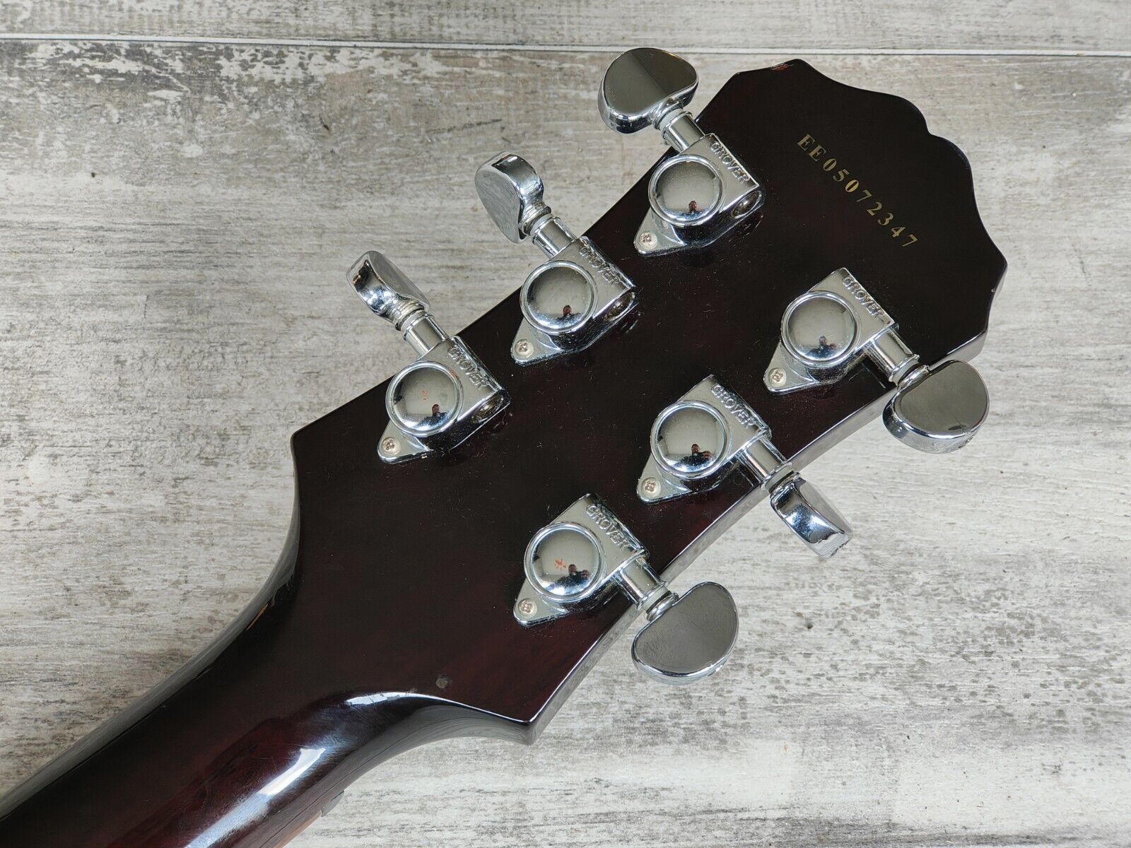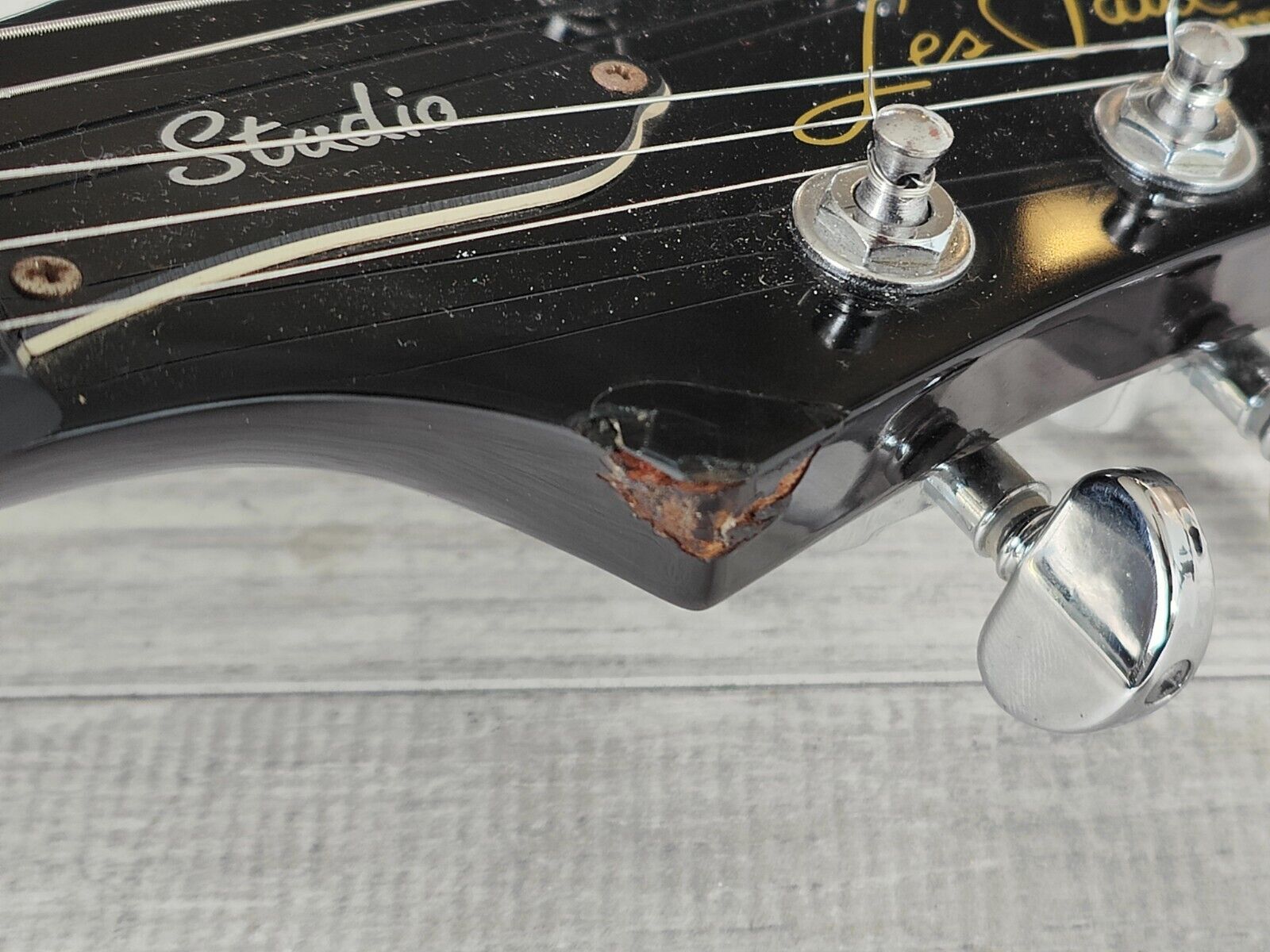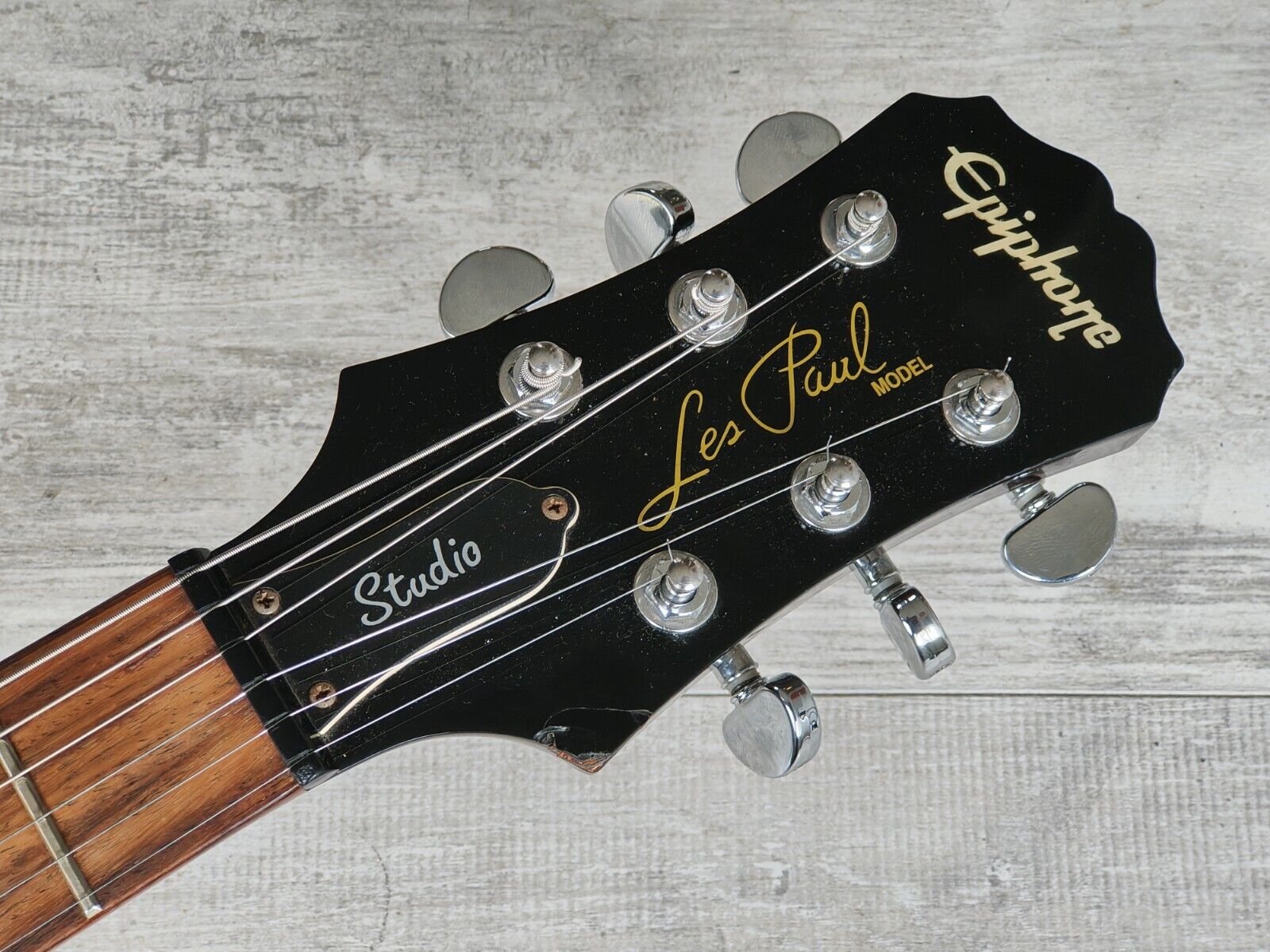 A 2005 Epiphone Les Paul Studio that's been cleaned up and restrung so it's good to go! Good overall condition with some basic signs of wear and one ding on the headstock (non-structural) and a Epiphone sticker on the back, frets are shiny and have plenty of life and the truss works as it should. Seems all original including Grover tuners as pictured, it weighs 3.7kg's.