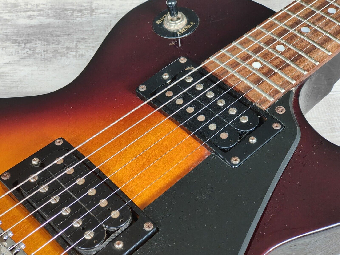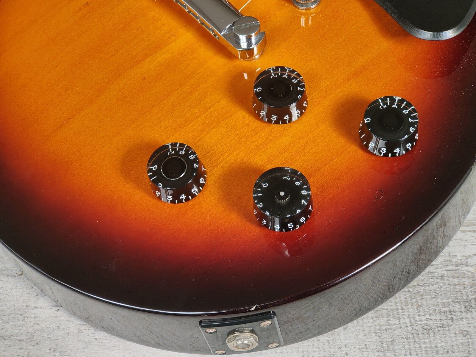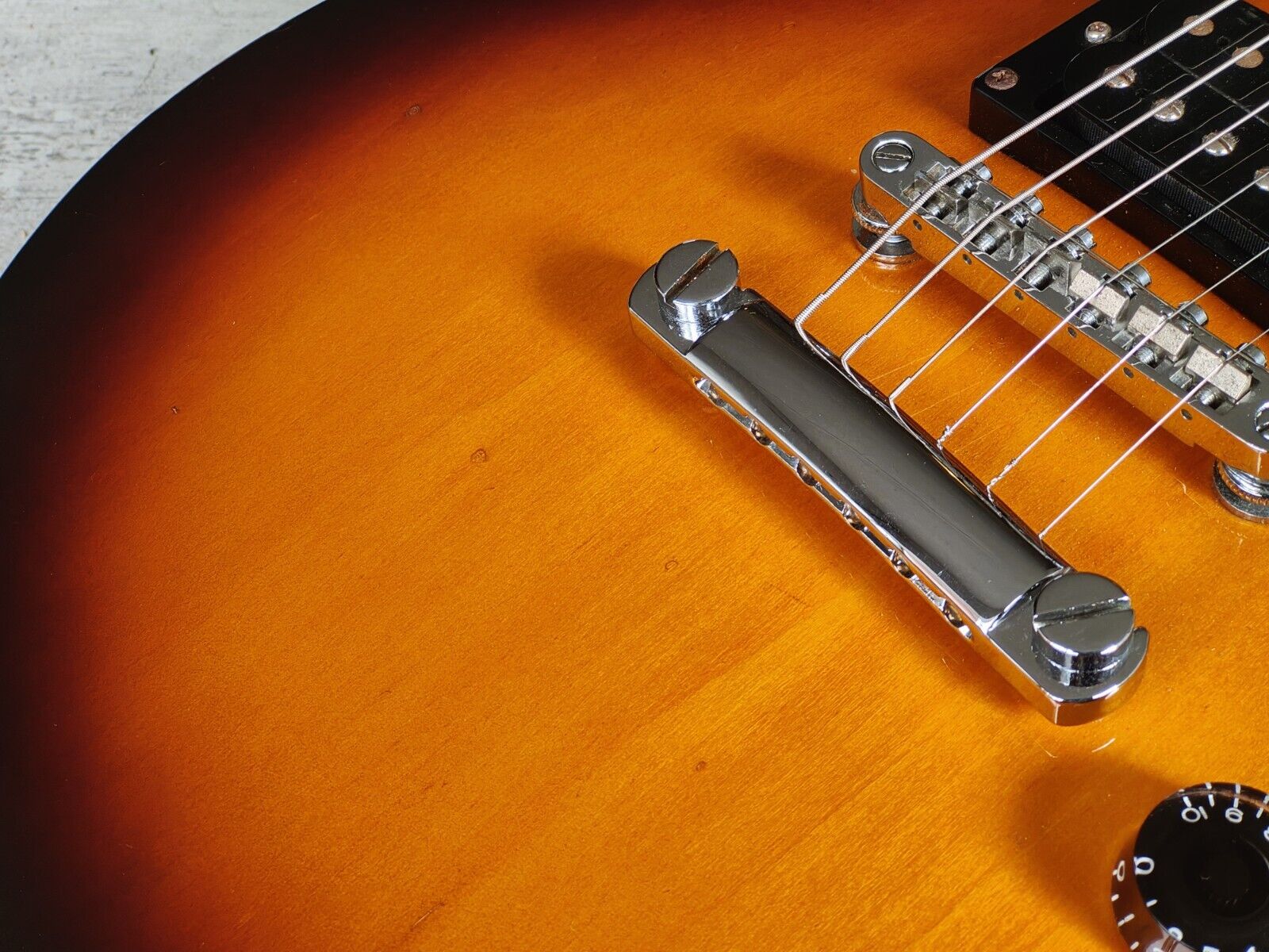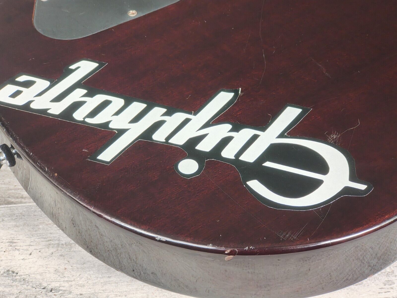 A 2005 Epiphone Les Paul Studio that's been cleaned up and restrung so it's good to go! Good overall condition with some basic signs of wear and one ding on the headstock (non-structural) and a Epiphone sticker on the back, frets are shiny and have plenty of life and the truss works as it should. Seems all original including Grover tuners as pictured, it weighs 3.7kg's.