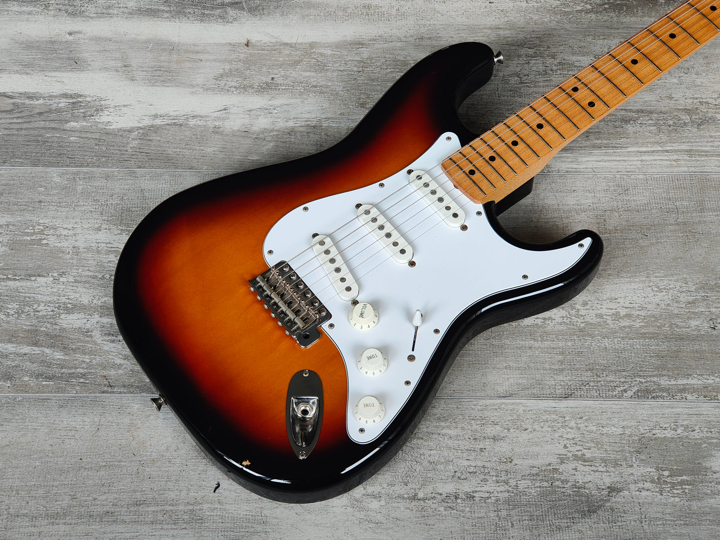 Made in Japan in 2005, the ST-STD model was the Japanese equivalent of the American Standard. Weighs 3.4kg’s, it’s made with what looks to be a sunburst basswood body and 21 fret maple neck. Seems to be all original as pictured.