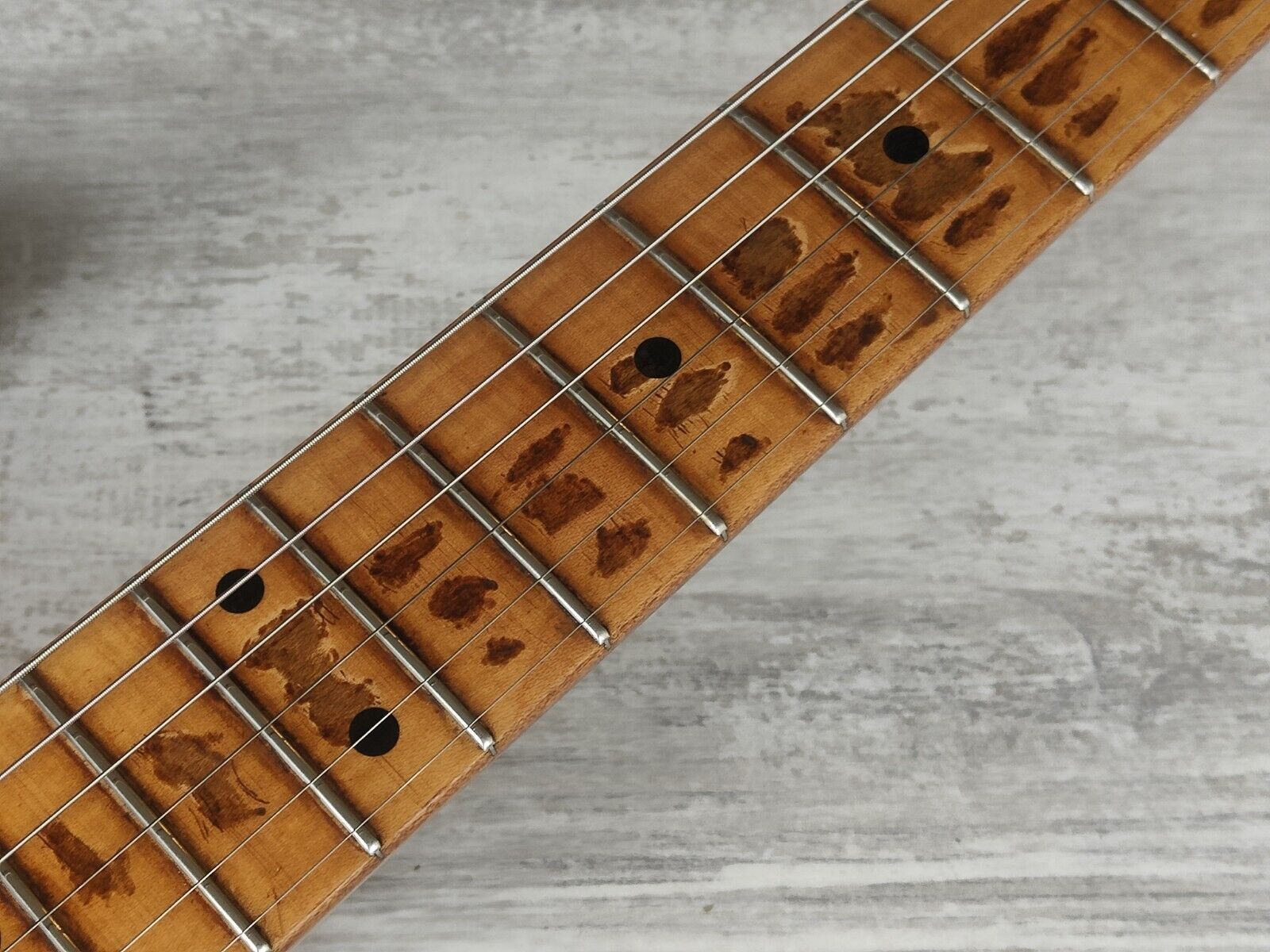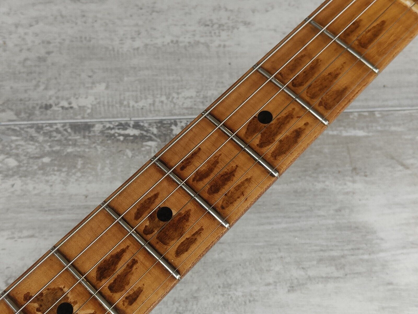Before arriving with us this one had undergone a relic job to the body along with a refinish and relic to the neck (serial number/"Made in Japan" insignia missing but the neck stamps on the body and neck match and are both labelled ST54-95LS). Restrung and given a basic service prior to listing, the neck is straight and the truss adjusts as it should. The frets show some signs of wear but were polished and play smoothly.