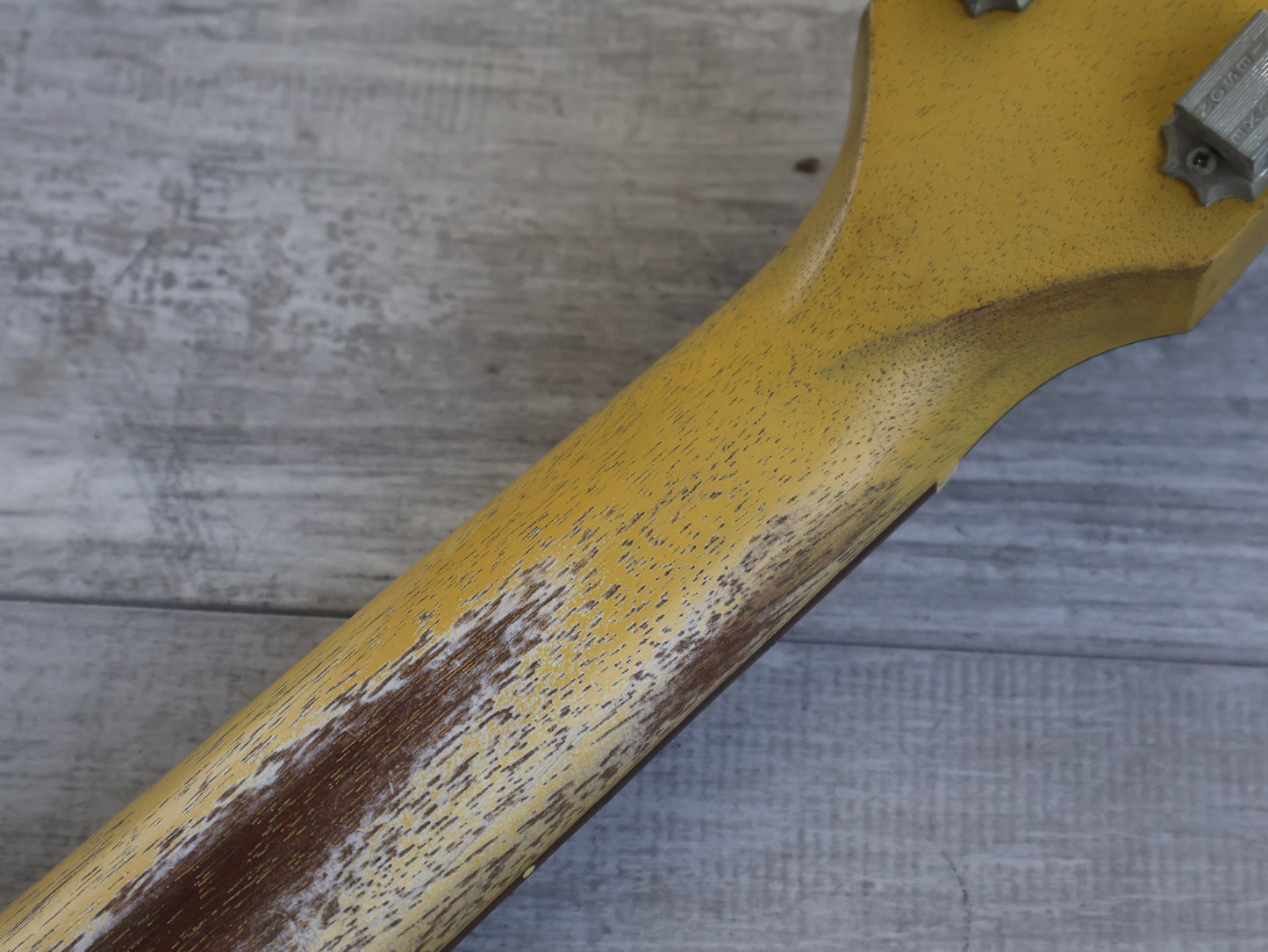 No breaks or repairs anywhere, the neck is straight and the truss works as it should. The frets are shiny and smooth with plenty of life left and it's ready for a new home that will love it as much as it's previous owner did!
