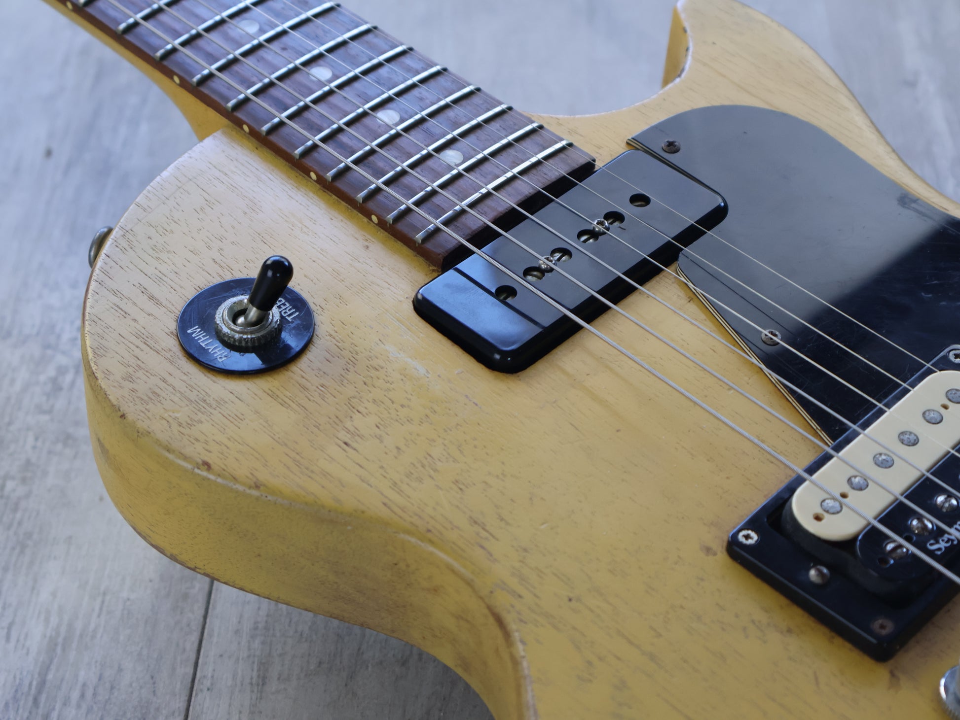Modified with a Seymour Duncan "Custom Alnico 2" in the bridge position for an extra layer of versatility, the original pots and wiring are all working well. A genuine example of a guitar that has the perfectly played in feeling.