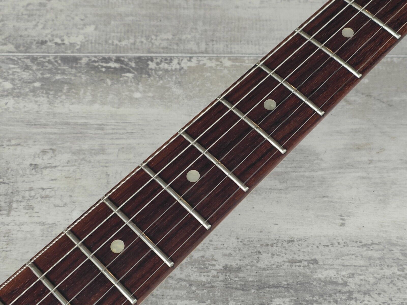 Looks to be all original other than the pickups/wiring and is overall in good cosmetic condition. Restrung and serviced prior to listing and plays and sounds great. Frets have some light play wear but were polished and play well, truss works as it should and the neck is straight.