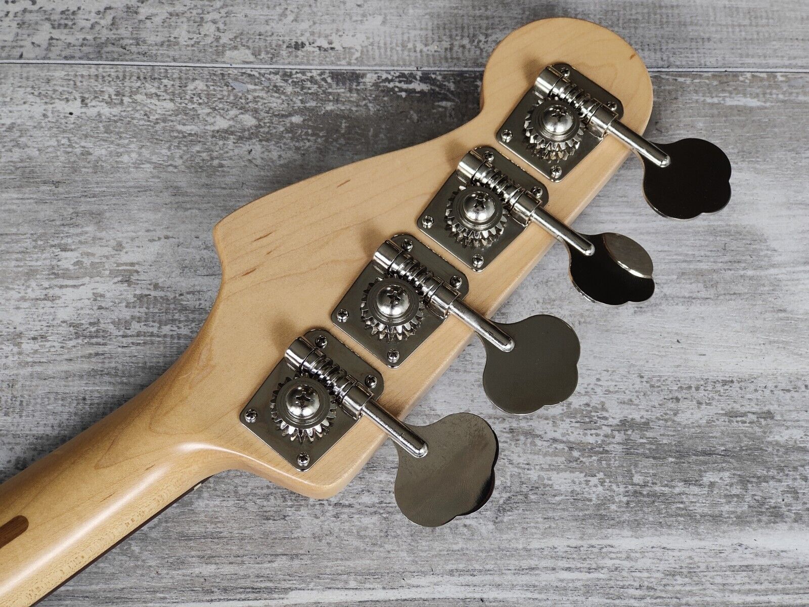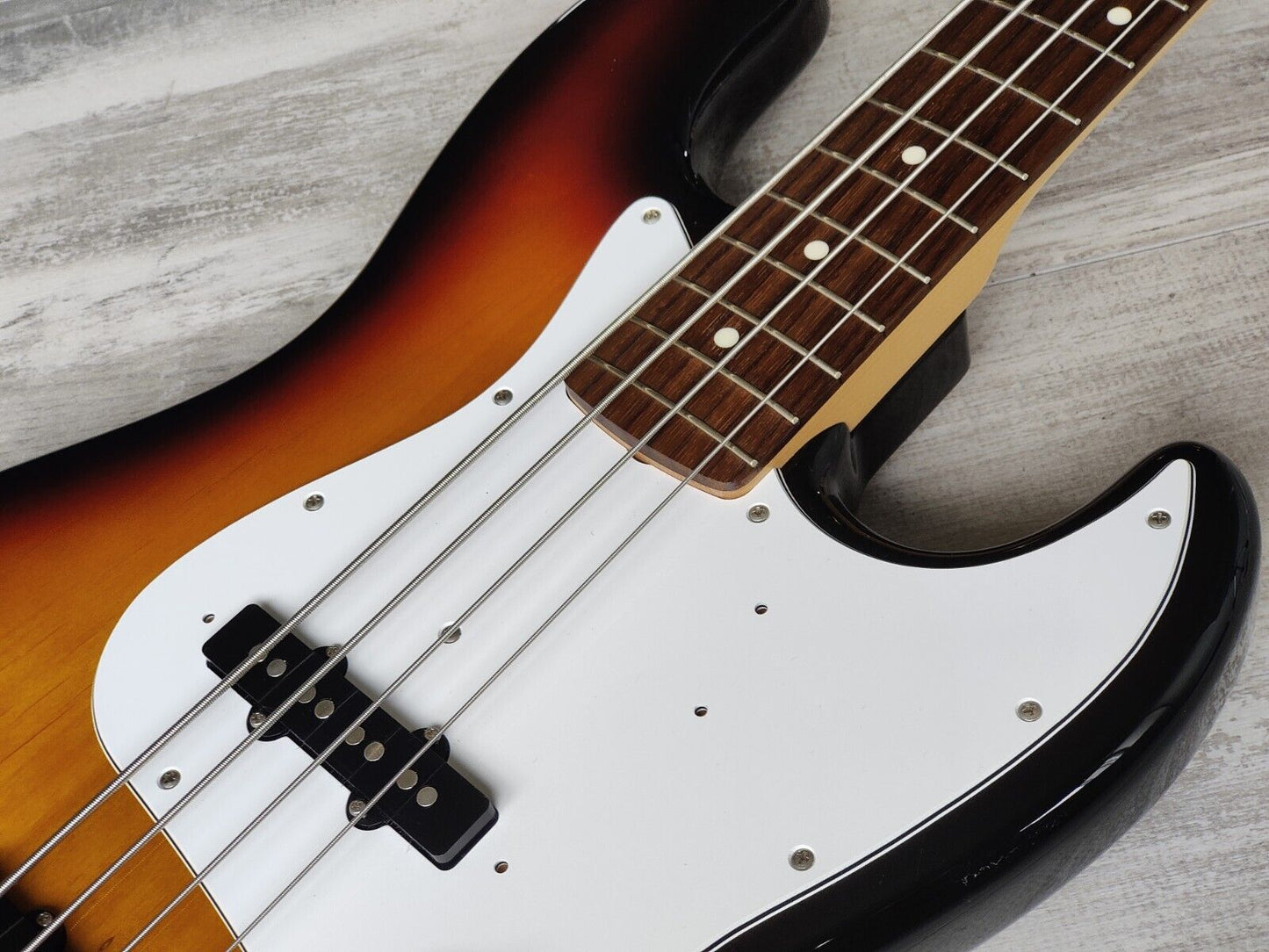 Made in Japan by the Fujigen factory in 2006, this is the Japanese version of the American Standard Jazz Bass. Sunburst finish on a basswood body with a maple neck and rosewood fingerboard (38m nut width), it weighs 4kg’s.